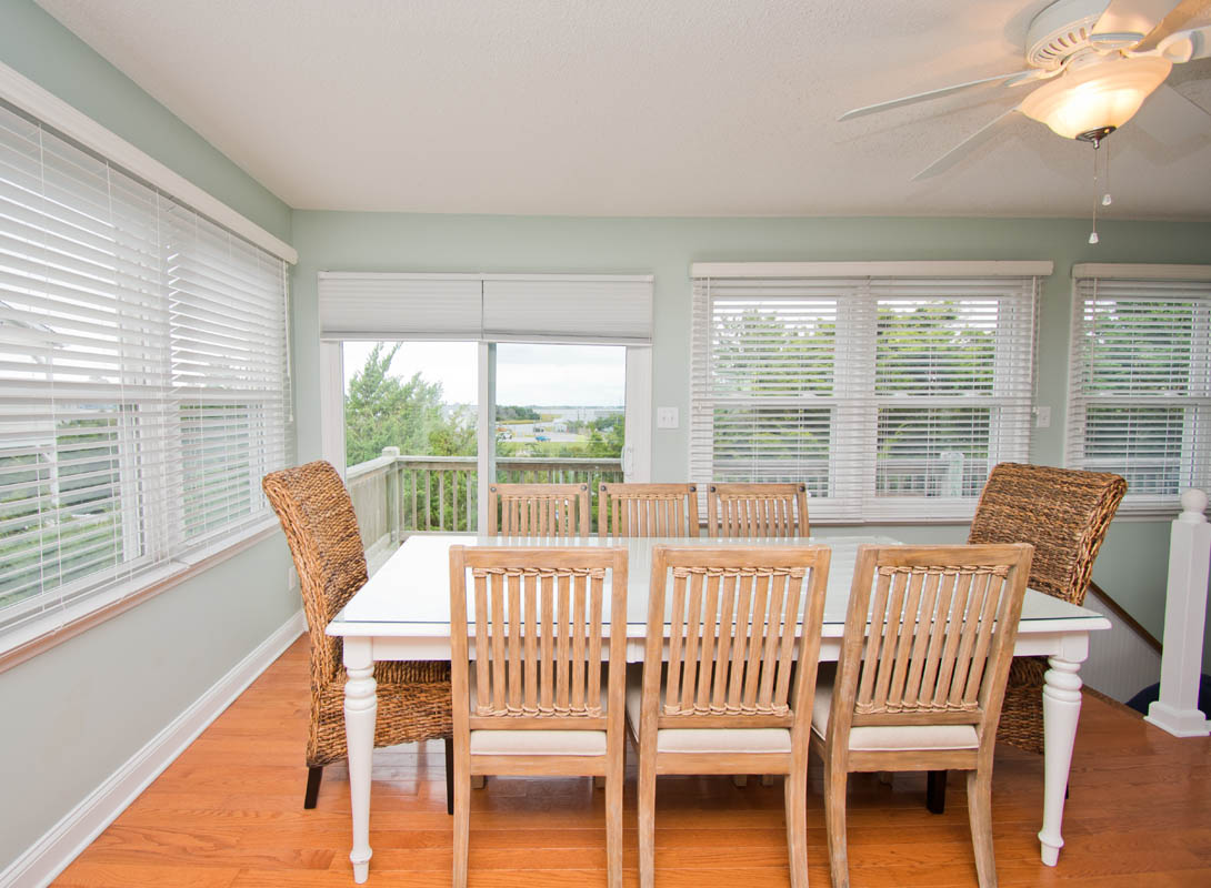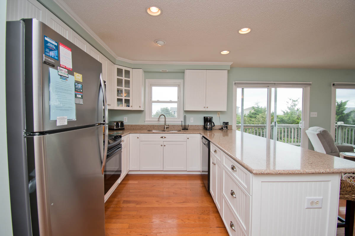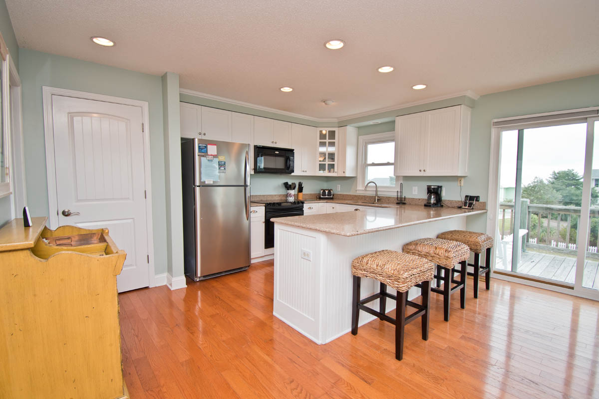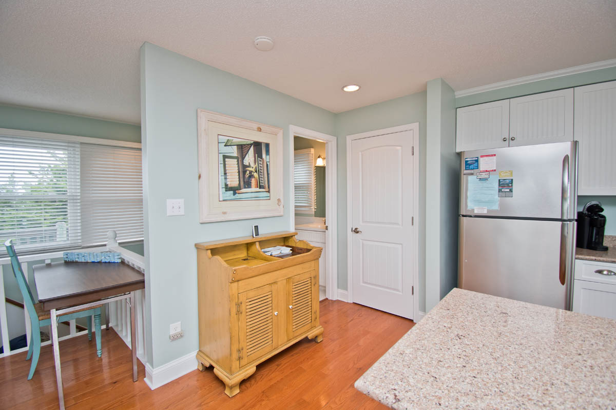 Level Two: Living Area. Beautifully-decorated Living Room, with a 42" High-Definition Flatscreen TV and Oceanview Bistro seating for two. Dining with seating for eight, and additional Bar seating for four. Kitchen has a Dishwasher, Microwave & Icemaker.