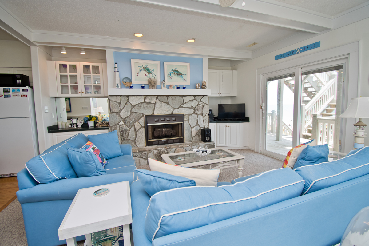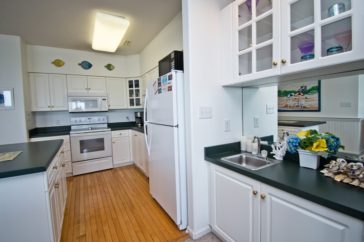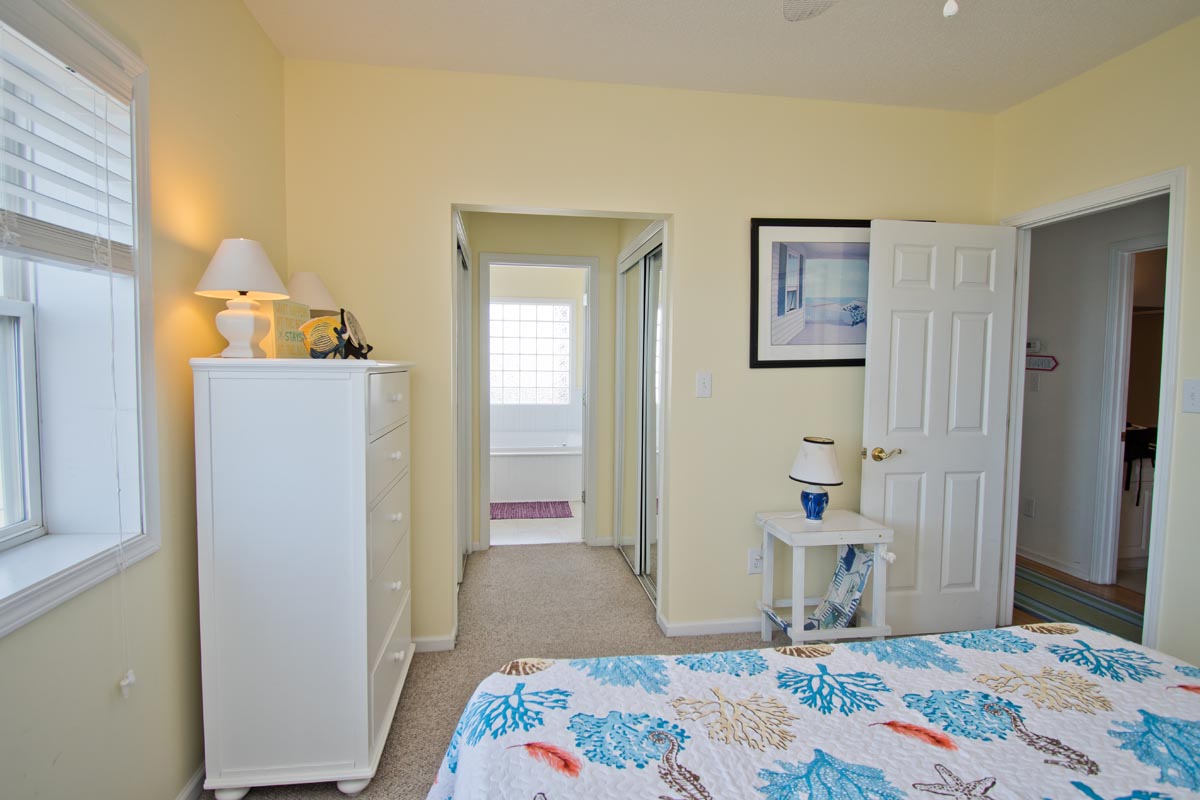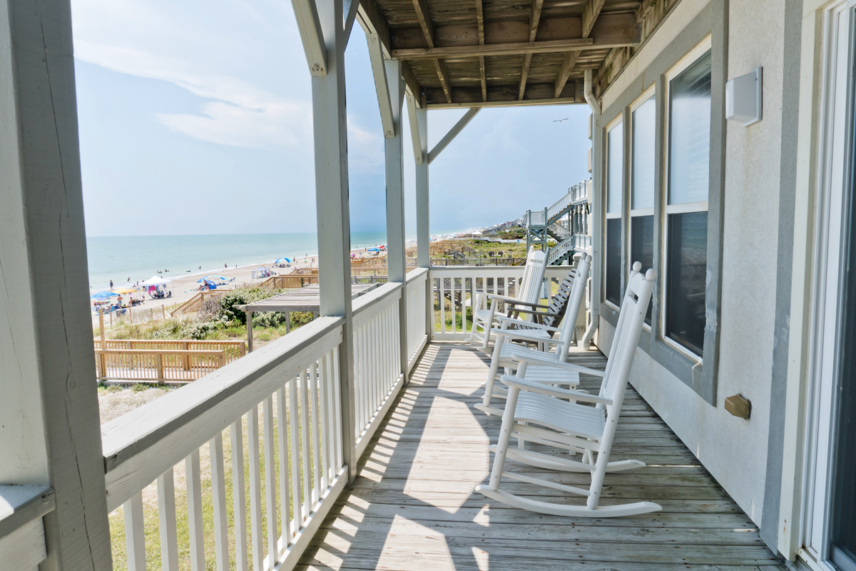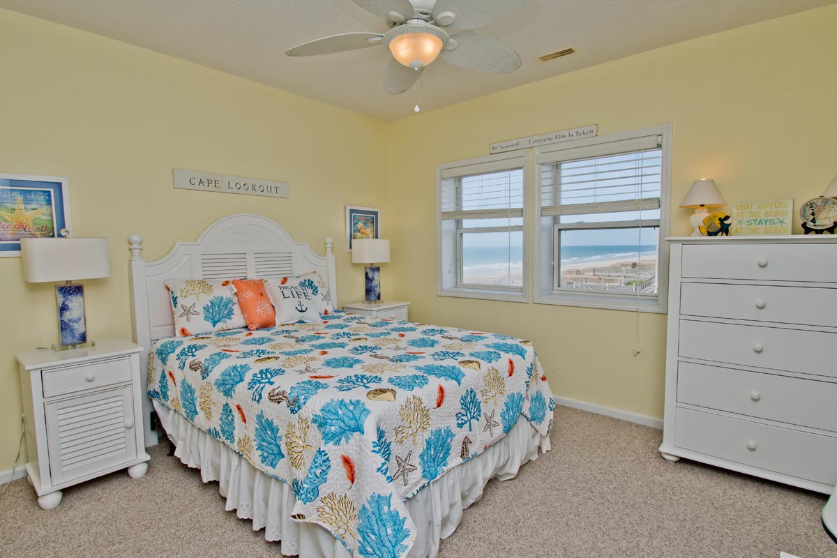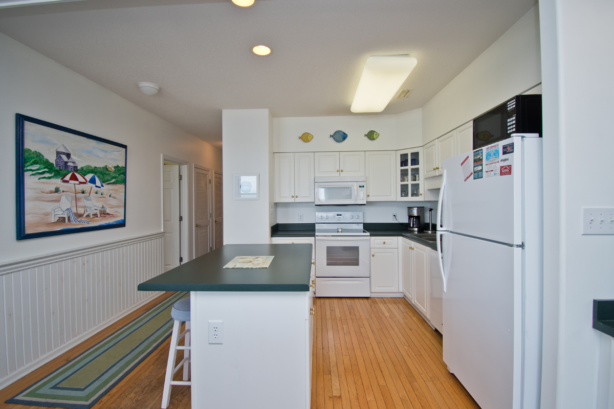 Living Area faces the ocean and has TV, DVD player, CD Player. Dining Area. Large Kitchen has bar seating, wet bar area, dishwasher & microwave. Master Bedroom #1 has a Queen bed and a Full Bath with a Jacuzzi Tub. Bedroom #2 has 2 Twin over Double Futon Bunks. Full Bath in Hall. Central Heat & Air. In unit Washer/Dryer. Rockers and Tables make on-deck views of vistas a vacationers paradise.