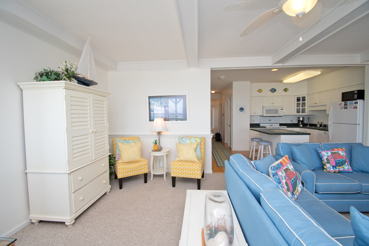 Pier Pointe 1B2 is a Second Floor Oceanfront 2 Bedroom, 2 Bath Condo. Perfect for families or seniors who need a limited amount of steps! Covered deck with furniture, beautiful views, and a community beach walkway. Condo has been decorated with a bright coastal flare.