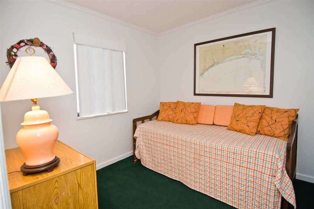Master Bedroom #1 has a Queen Bed, Private Full Bath and Covered Balcony. Bedroom #2 has 2 Twin Beds and access to the Shared Hall Full Bath. Bedroom #3 has a Twin Daybed with Twin Trundle and access to the Shared Hall Full Bath.