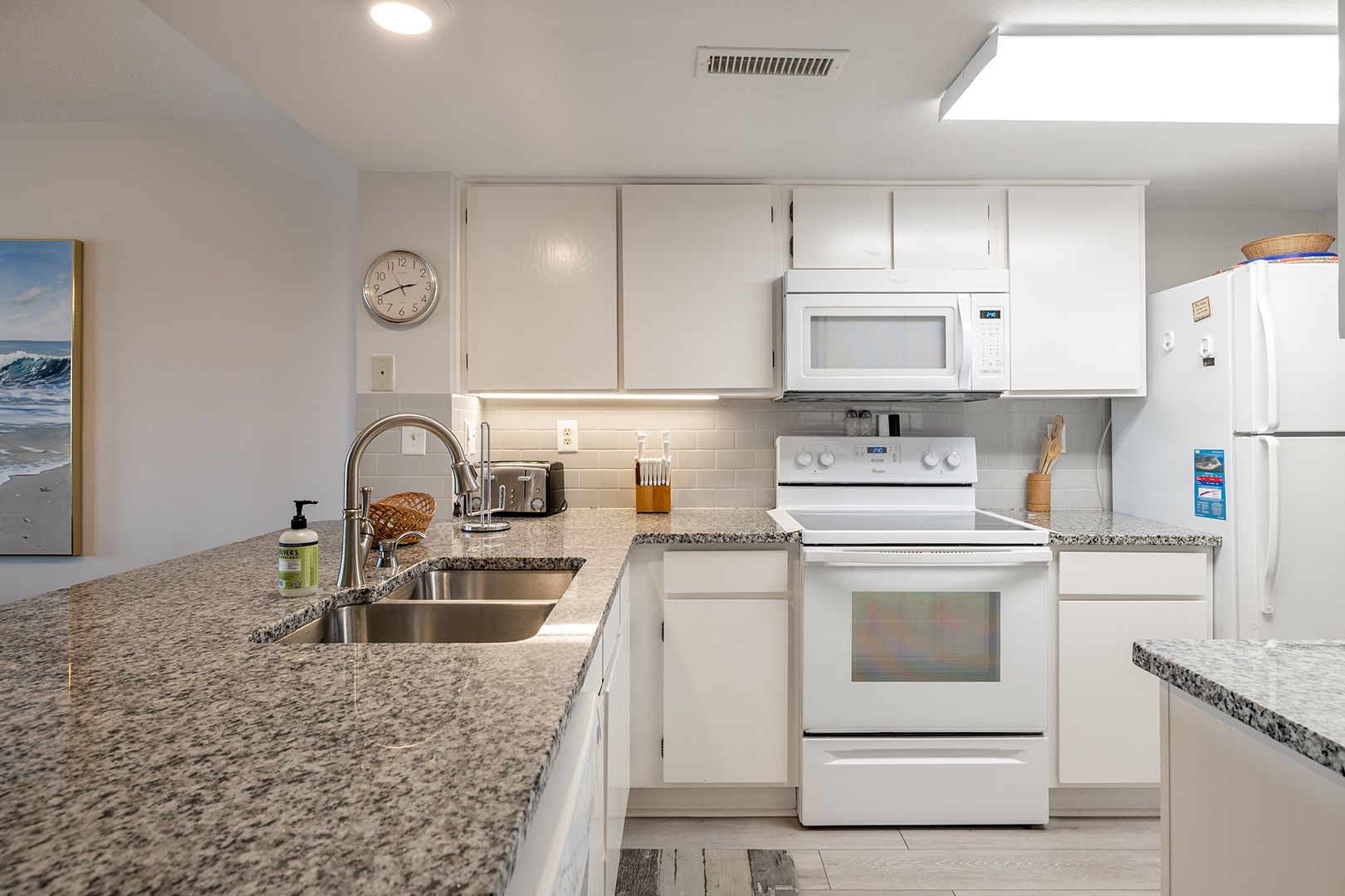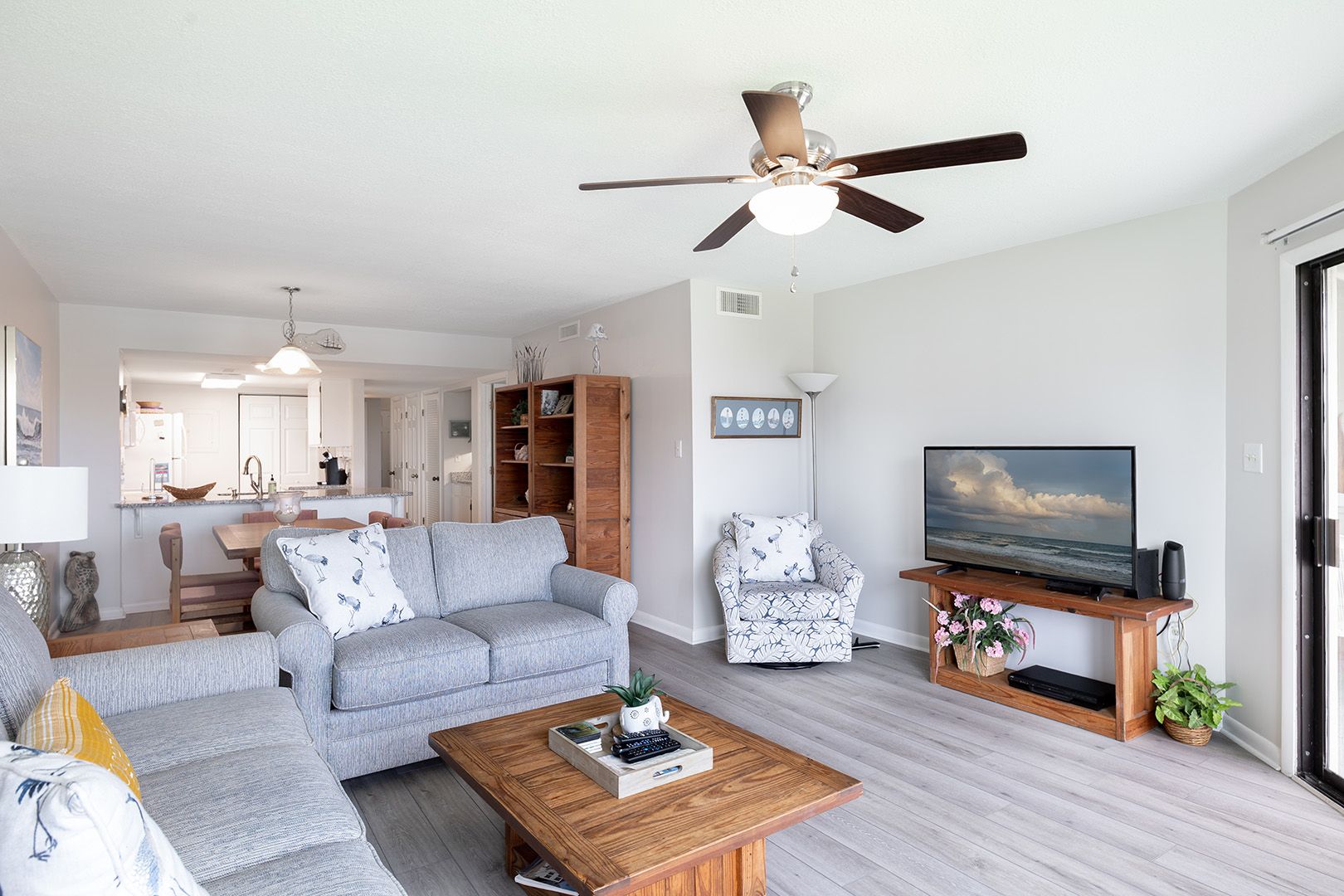 The condo's layout and features, such as the fully equipped kitchen and covered deck make it a great choice for a relaxing vacation.