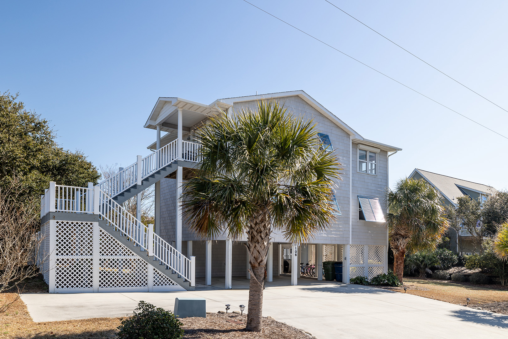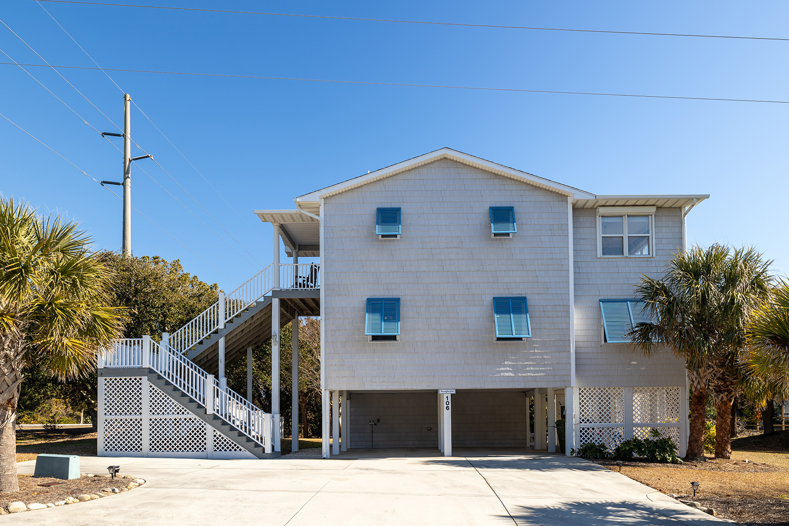 Additional Amenities: 5 Smart TVs with access to streaming apps and basic cable, WiFi; Central Heat and Air, Ceiling Fans; Utility Room Laundry with Washer/Dryer; Exterior Patio with Picnic Table, chairs, and rocking chairs; Tiki Bar; Charcoal Grill; Enclosed Outside Shower with Hot/Cold Water and Dressing Area, Outside Rinse Off Shower; Adult Bicycles; Covered under home parking with additional driveway parking with space for a boat trailer - only approximately 1/2 mile to the public boat ramp!