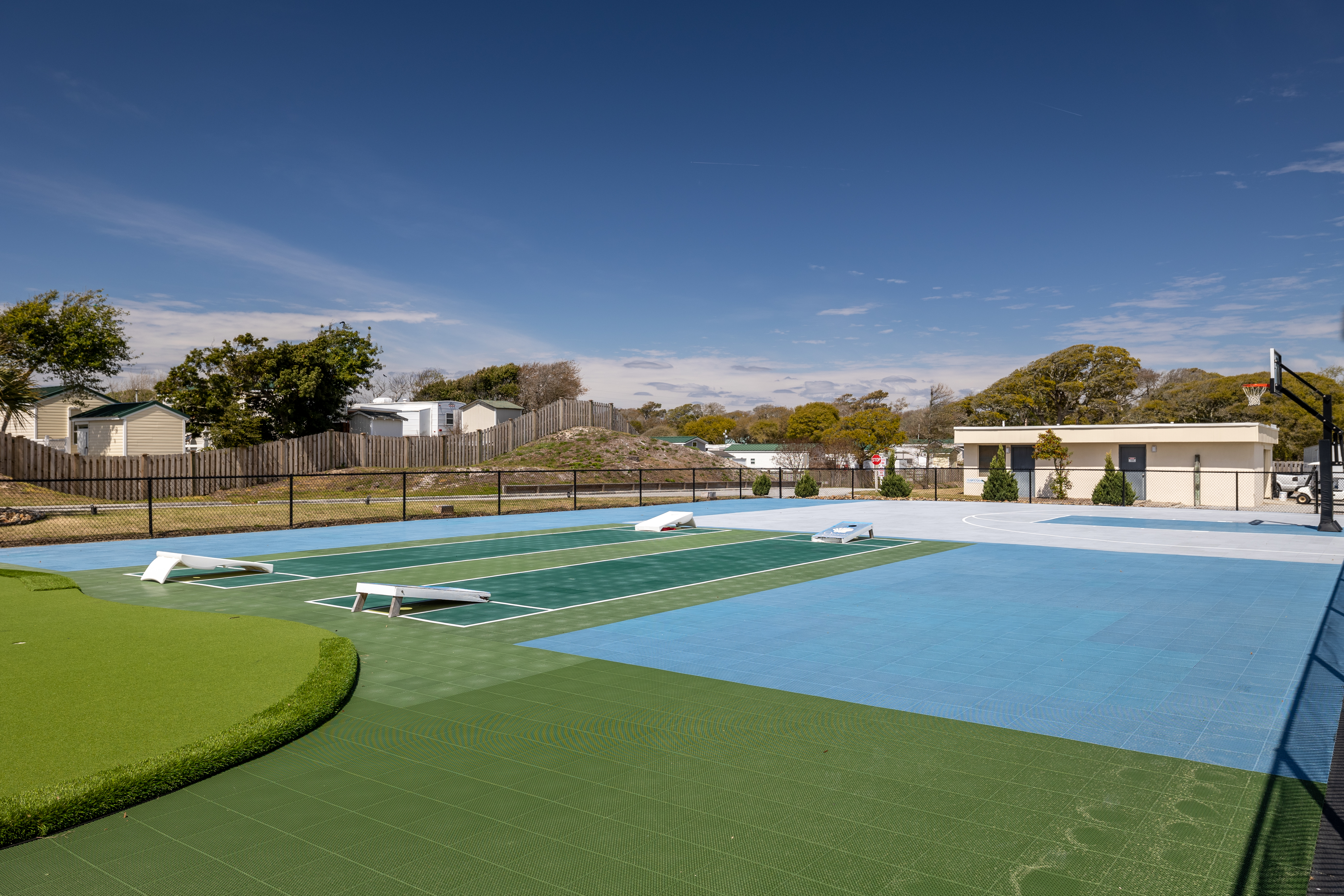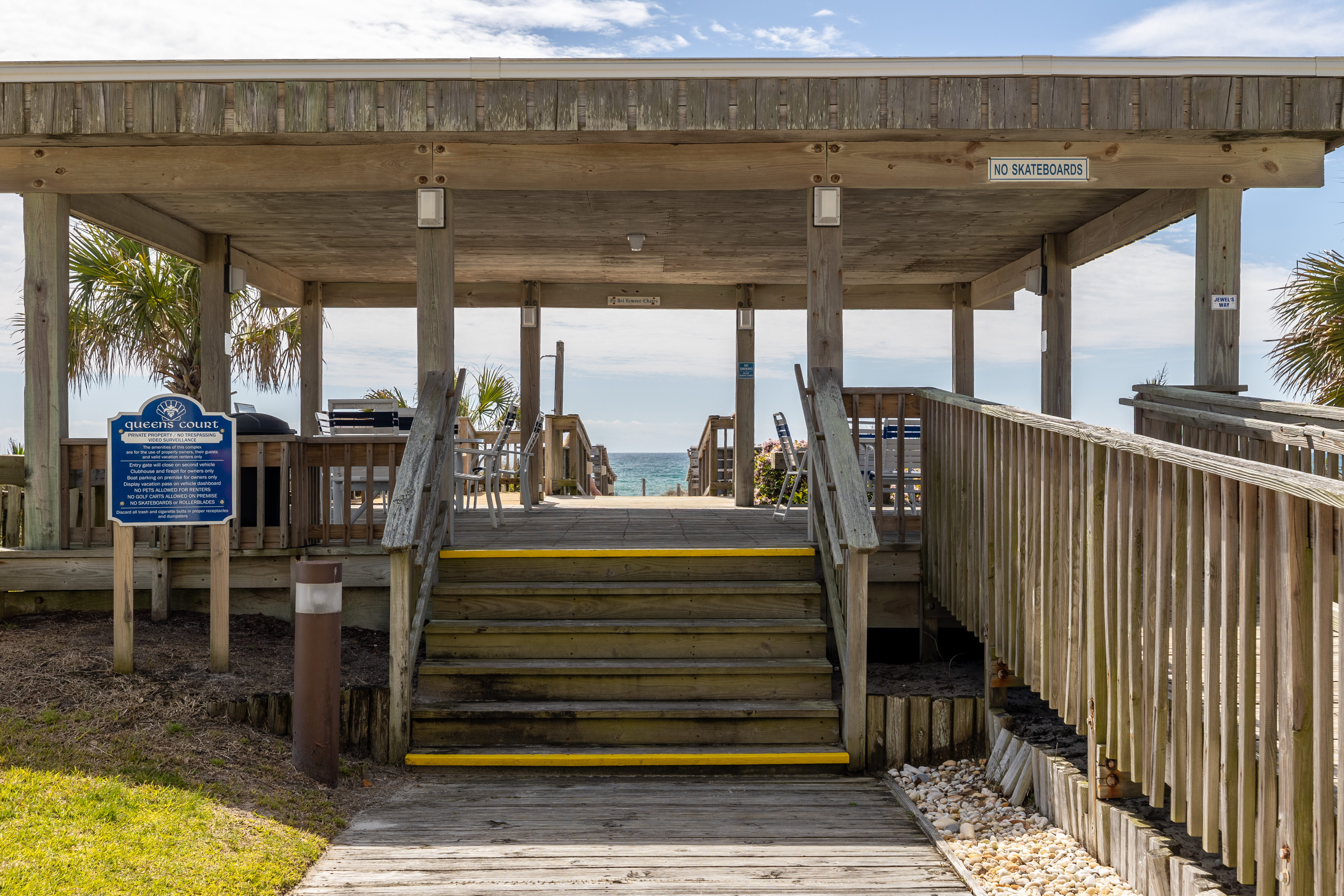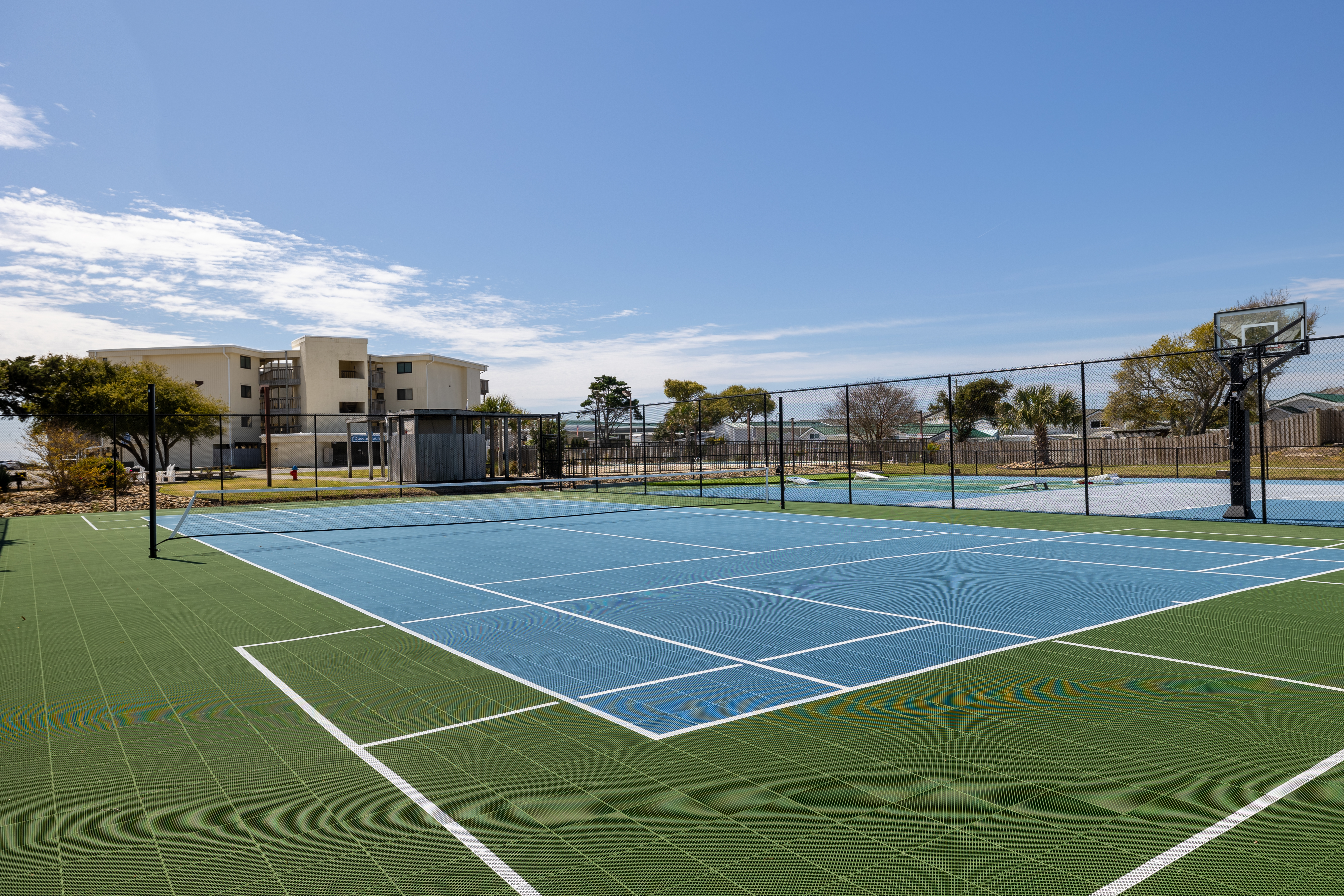 New Sport Court for tennis, badminton, pickleball, basketball, cornhole & putting green (facility only – equipment is not provided), outdoor swimming pool (pool typically open May 15 - October 15 9am - 9pm), Grilling Area, Oceanfront Gazebo with seating, Private Beach Access Walkway, and Outside Showers. Please Note: Fire pit and clubhouse are for owner use only.