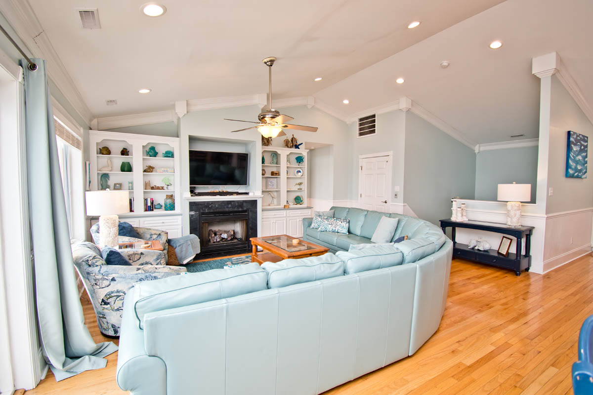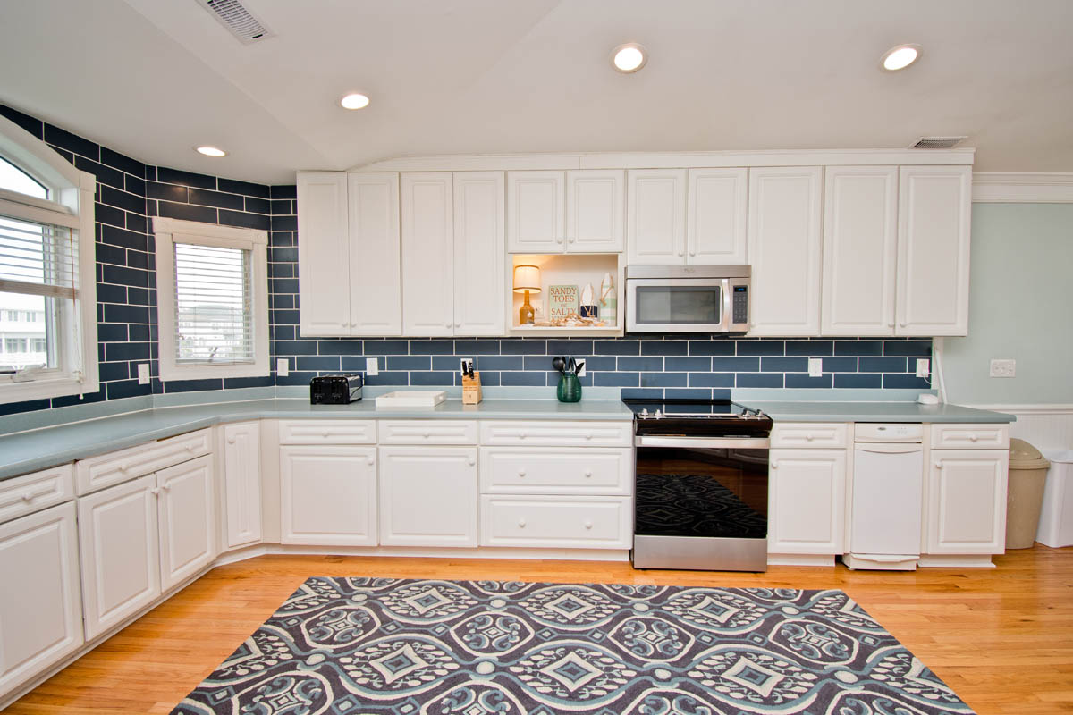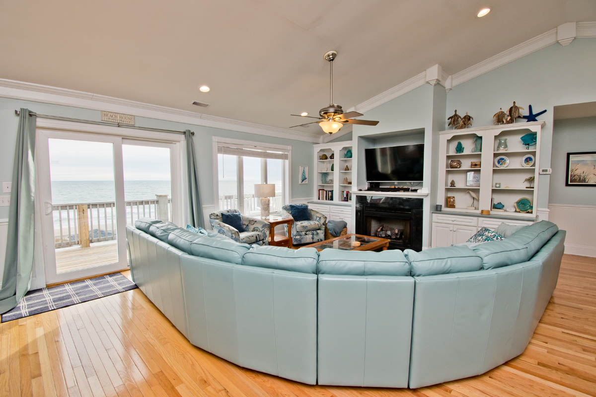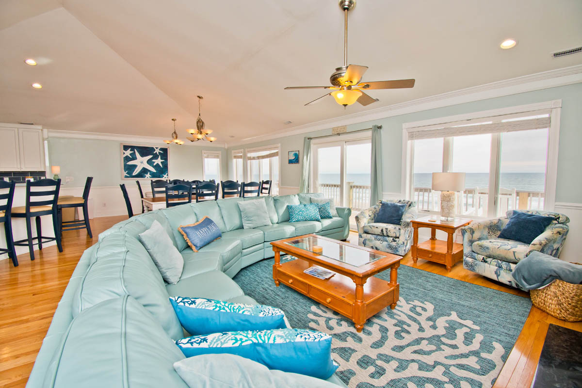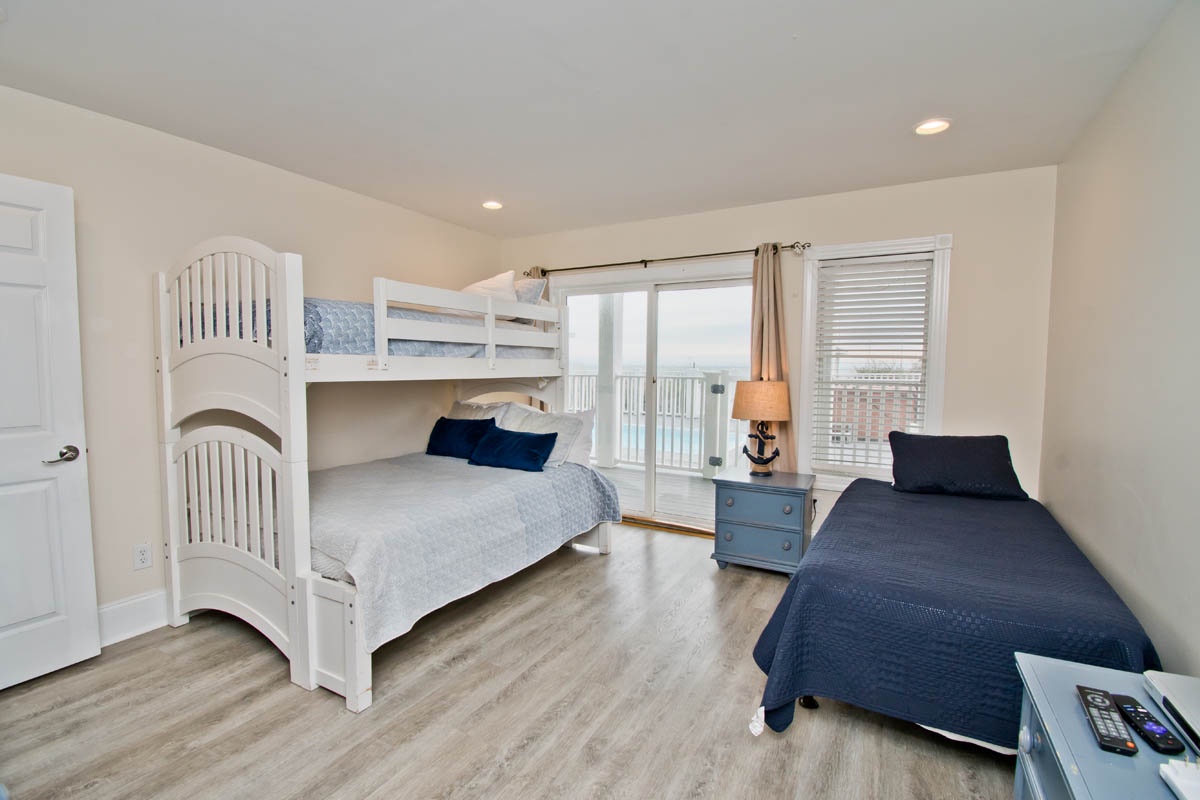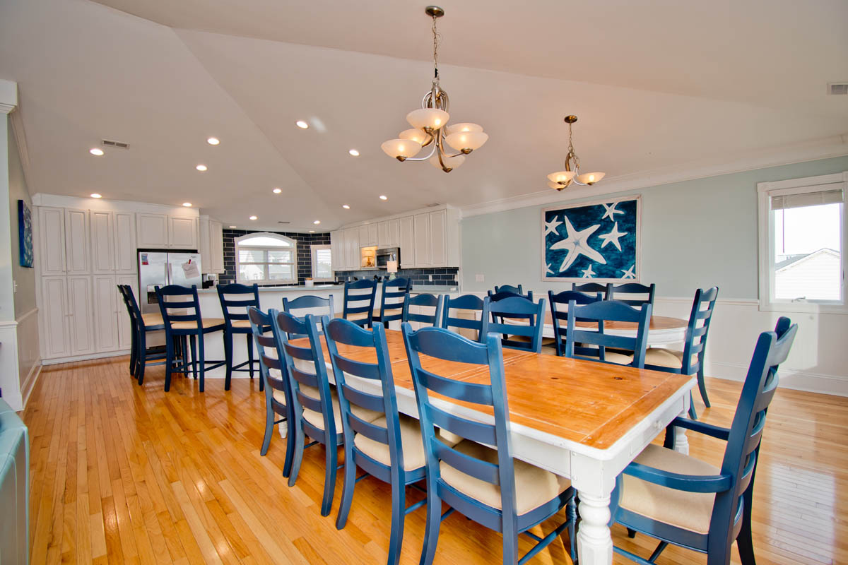 Level Three: The top level boasts the best views, so of course the main family gathering areas can be found here. A spacious open layout allows everyone to be together, while cooking, dining or watching the waves roll in from the open top deck. The kitchen has wide and ample counterspace to cook for a crowd with ease and the dining area has 2 tables plus bar seating so there's always room for the entire family to eat together.
