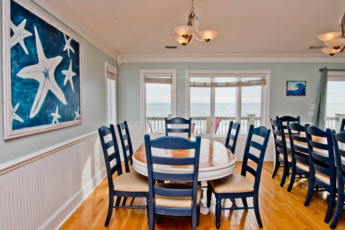 Rain Forest is an 8 bedroom, 7 full and 1 half bath oceanfront home nestled in the beautiful dunes of Emerald Isle. This spacious home offer your entire family space to relax and reconnect with a stunning ocean view backdrop.