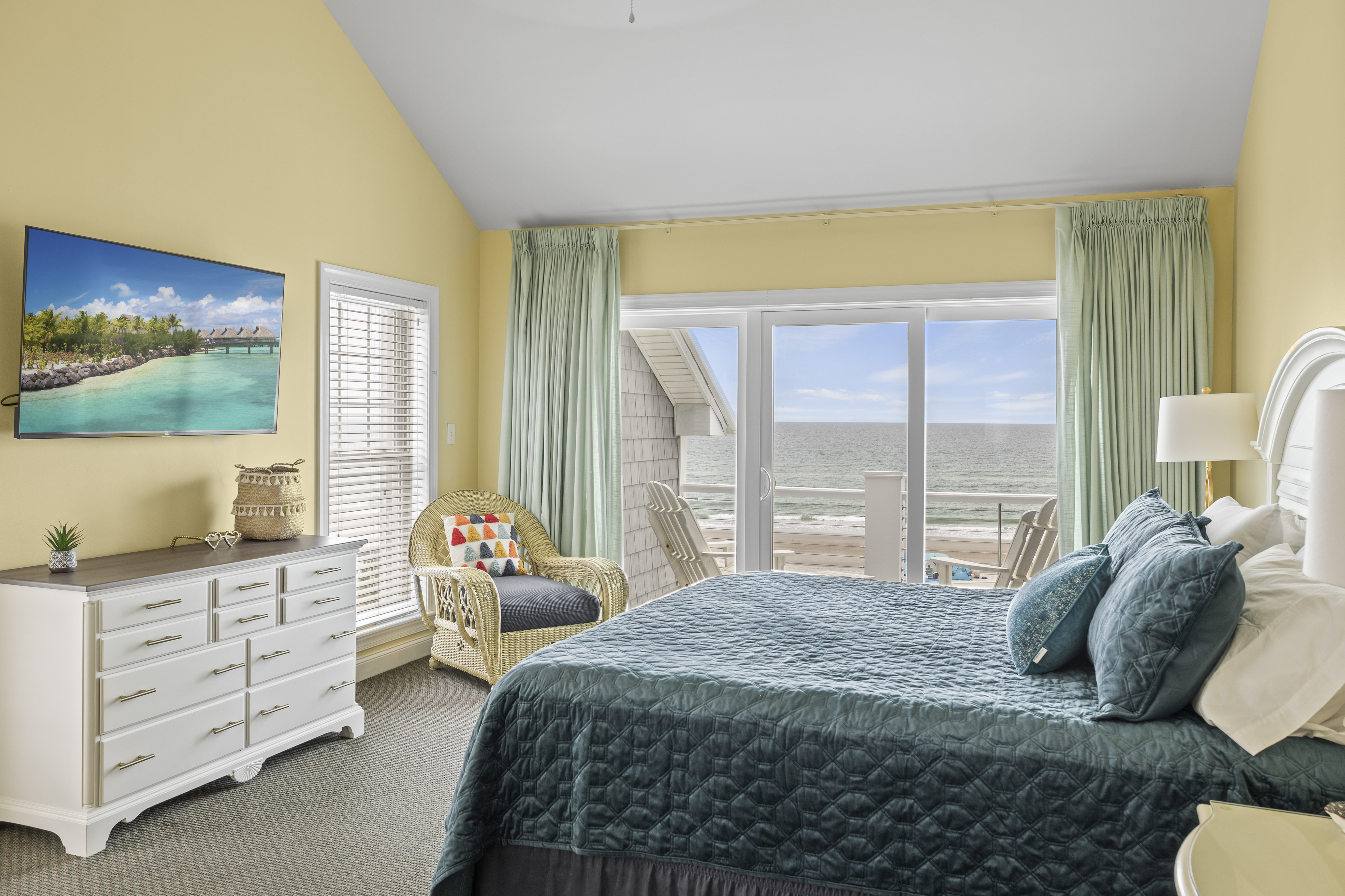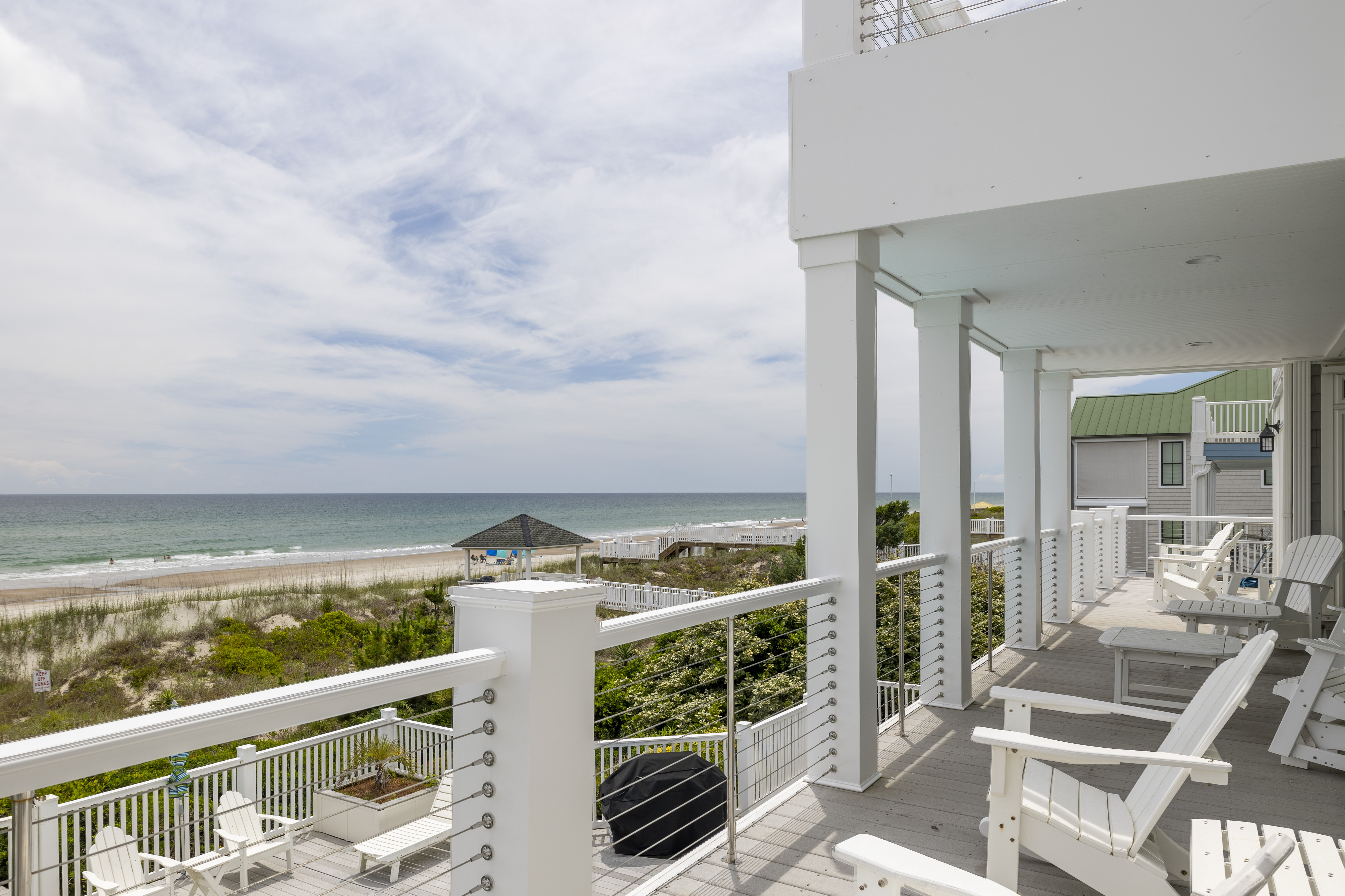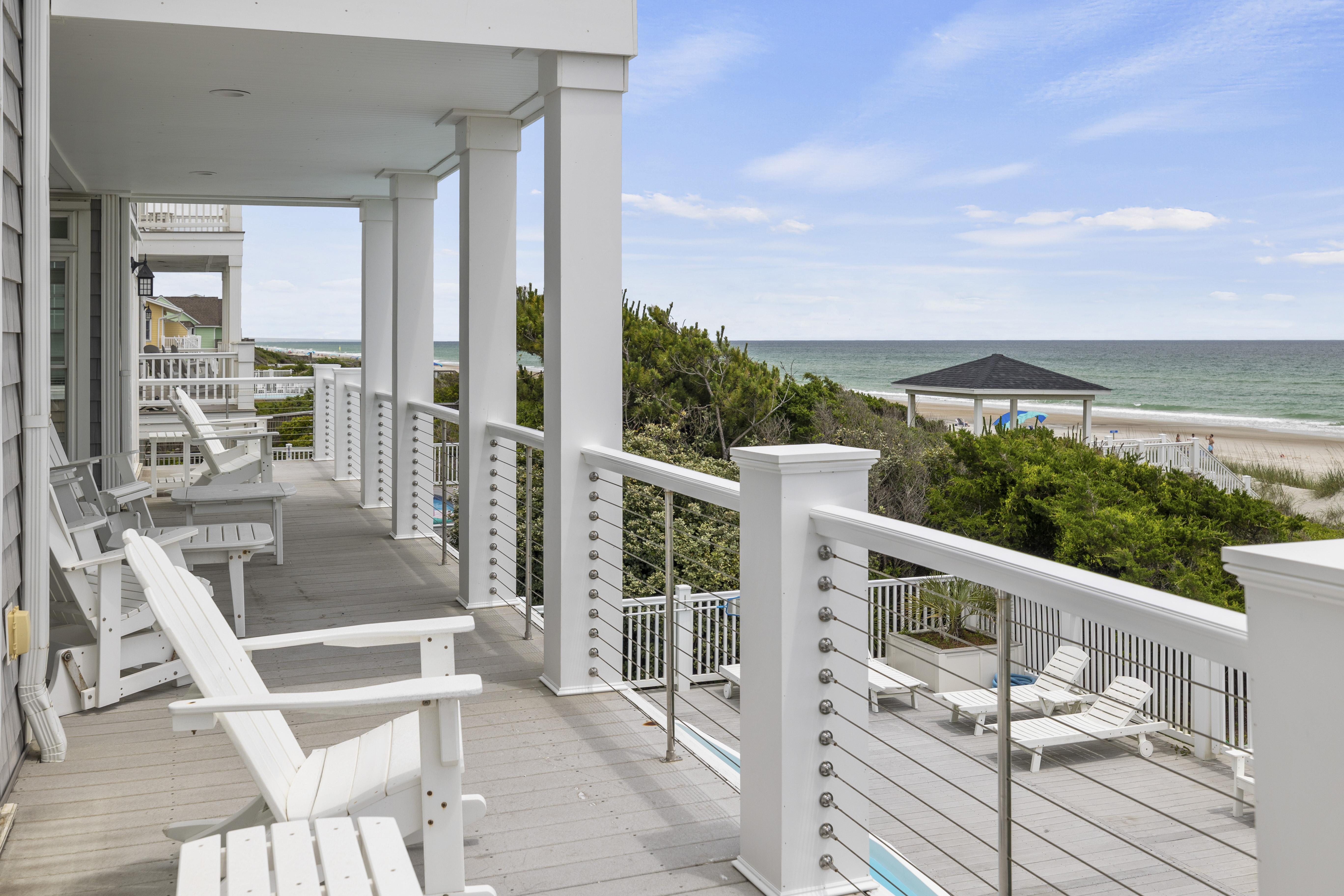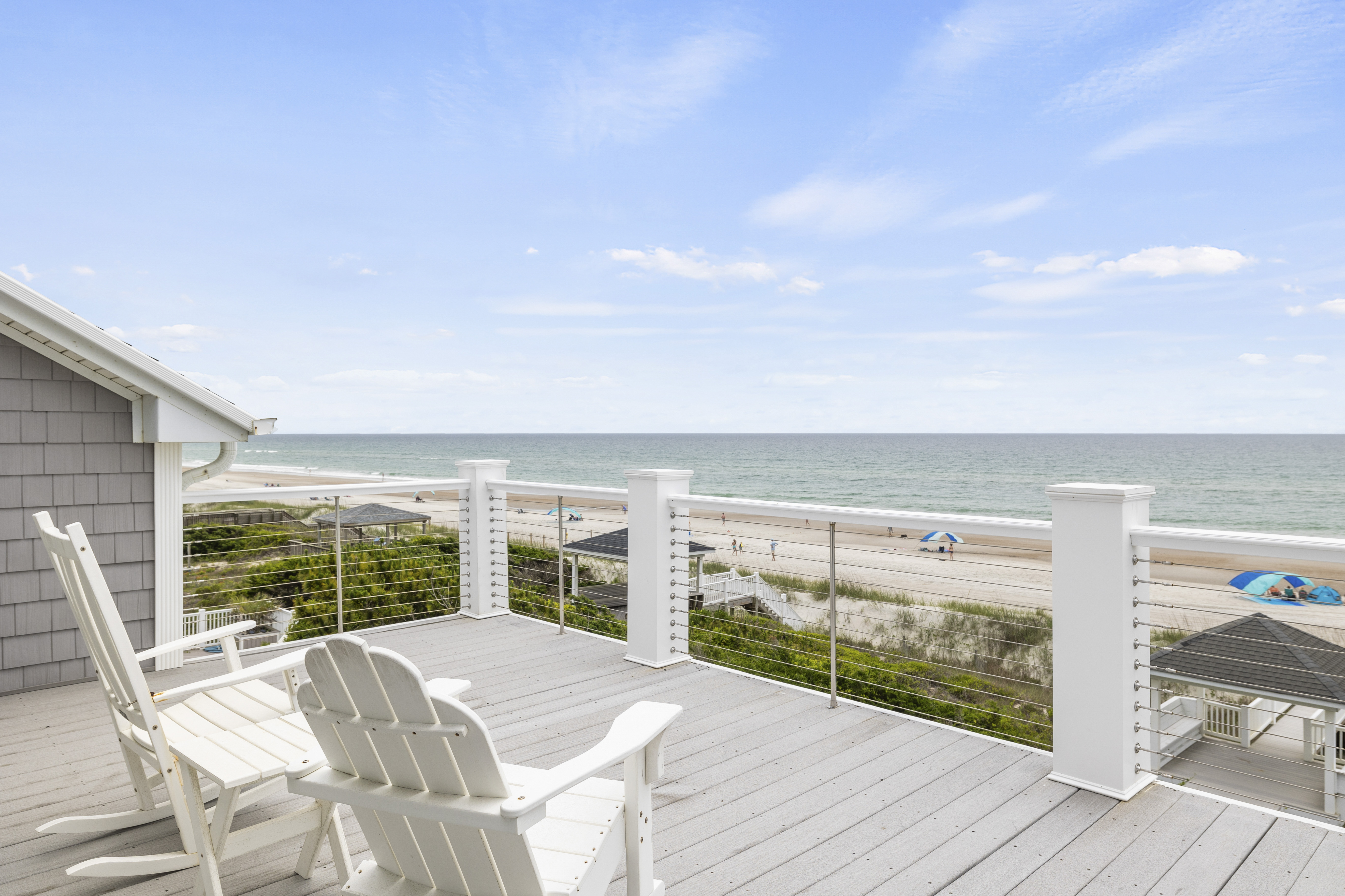 All three bedrooms on the 3rd/ top level have their own in-suite bathrooms, 55” Roku TV and own PRIVATE deck with breathtaking expansive views of the Crystal Coast Ocean. This top level has a beverage station in the hall, made complete with a Keurig and Mini-fridge. Imagine waking-up to a sunrise on your own deck, with a cup of coffee from the beverage station located just steps-away...or a night-cap from the mini-fridge while looking at the starts and planning your next day adventures!