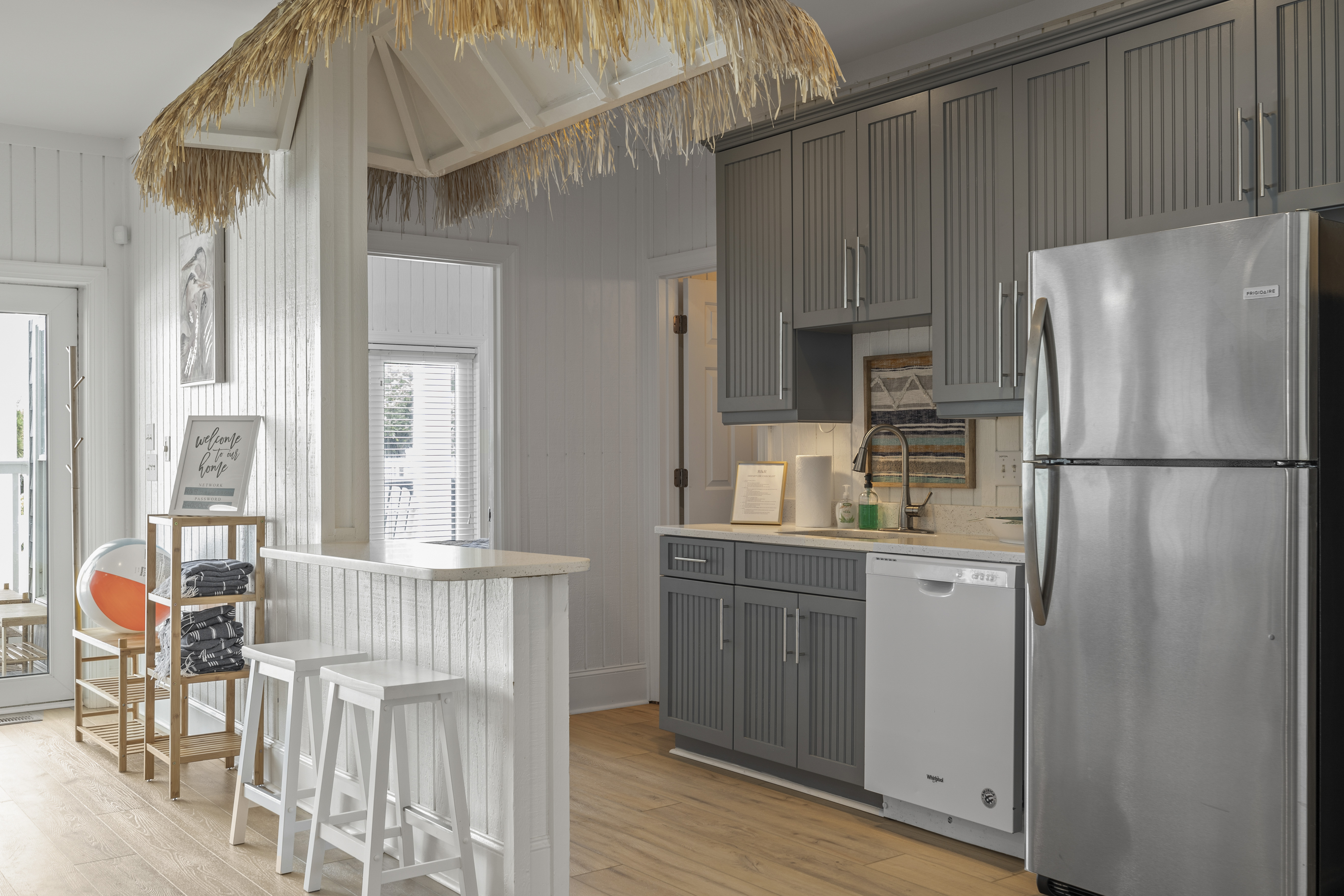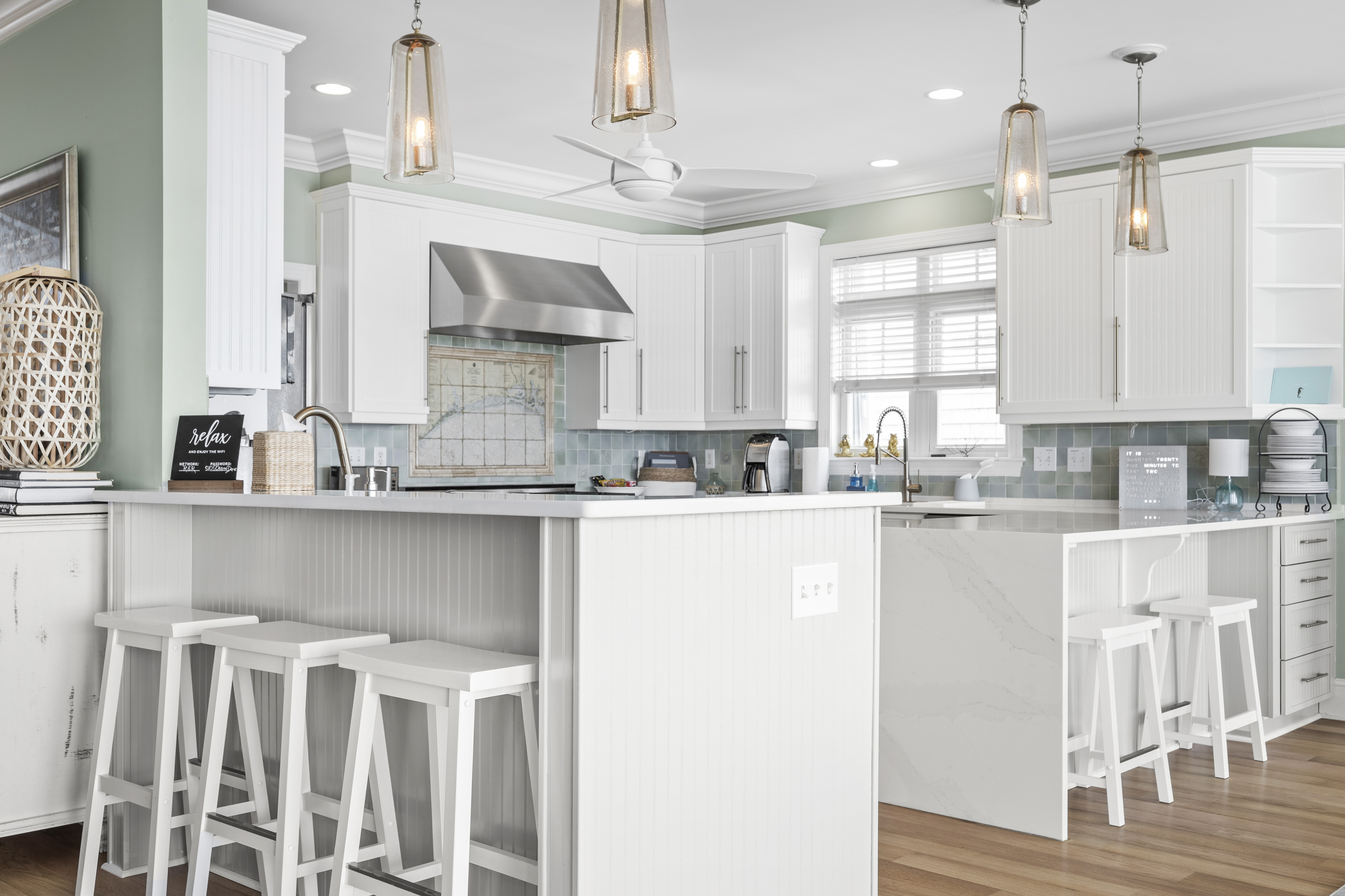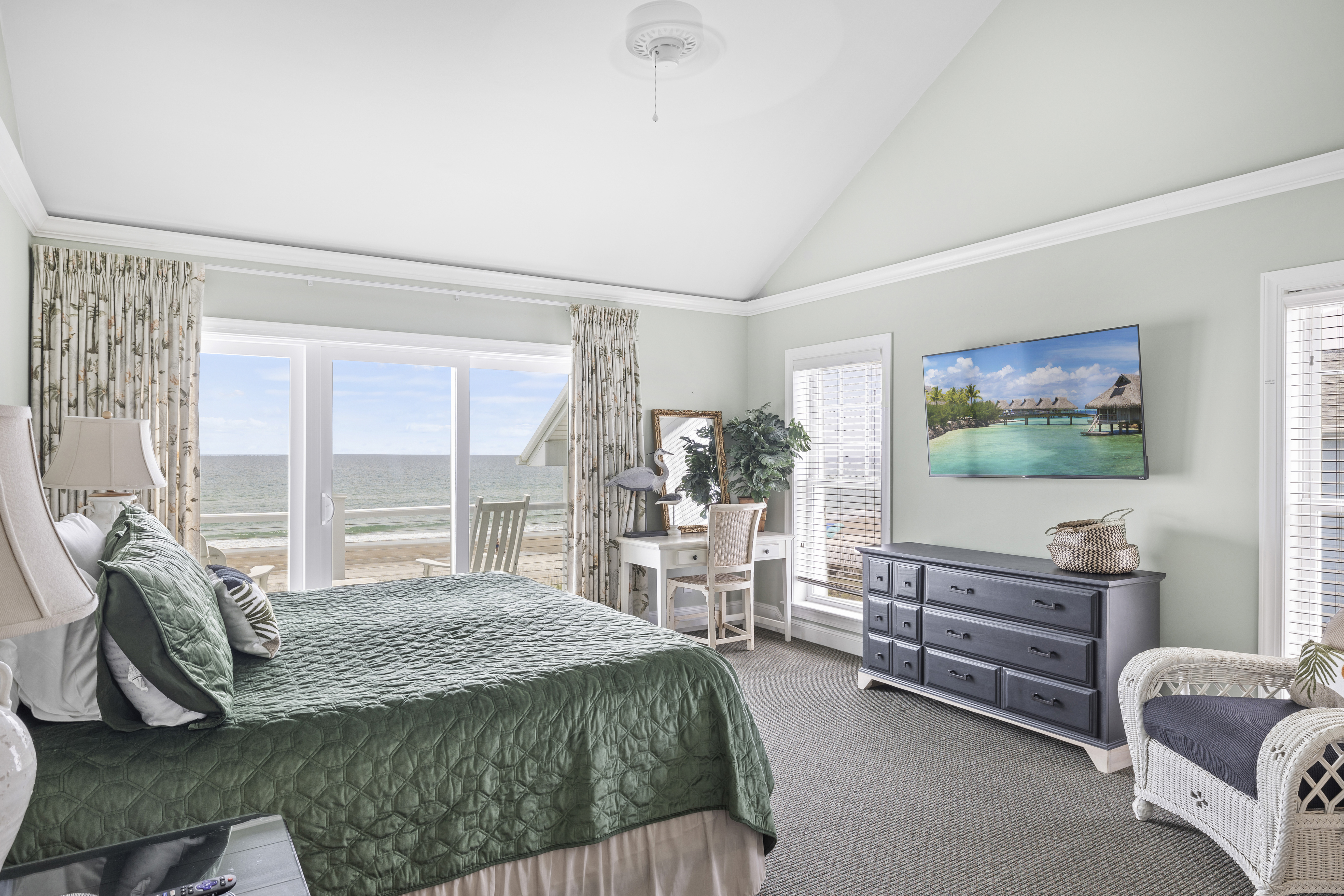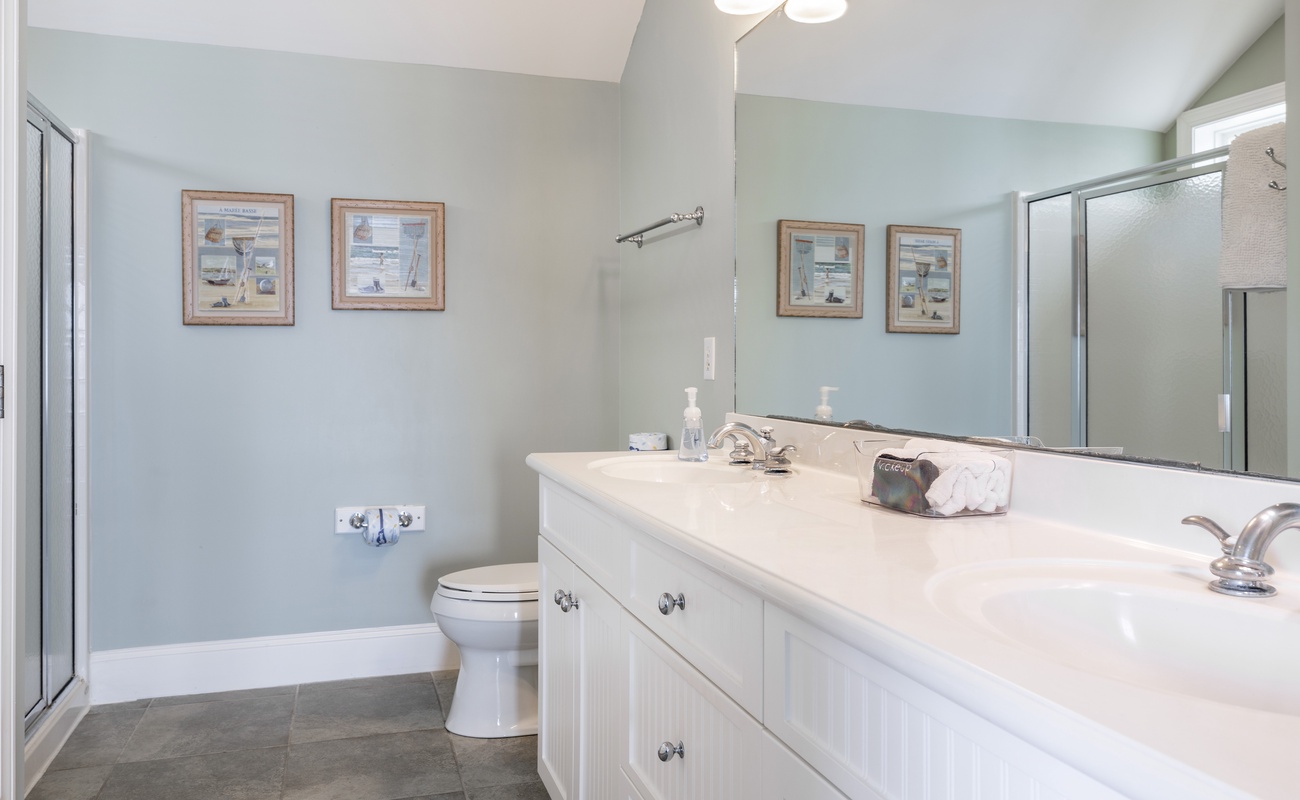 All three bedrooms on the 3rd/ top level have their own in-suite bathrooms, 55” Roku TV and own PRIVATE deck with breathtaking expansive views of the Crystal Coast Ocean. This top level has a beverage station in the hall, made complete with a Keurig and Mini-fridge. Imagine waking-up to a sunrise on your own deck, with a cup of coffee from the beverage station located just steps-away...or a night-cap from the mini-fridge while looking at the starts and planning your next day adventures!
