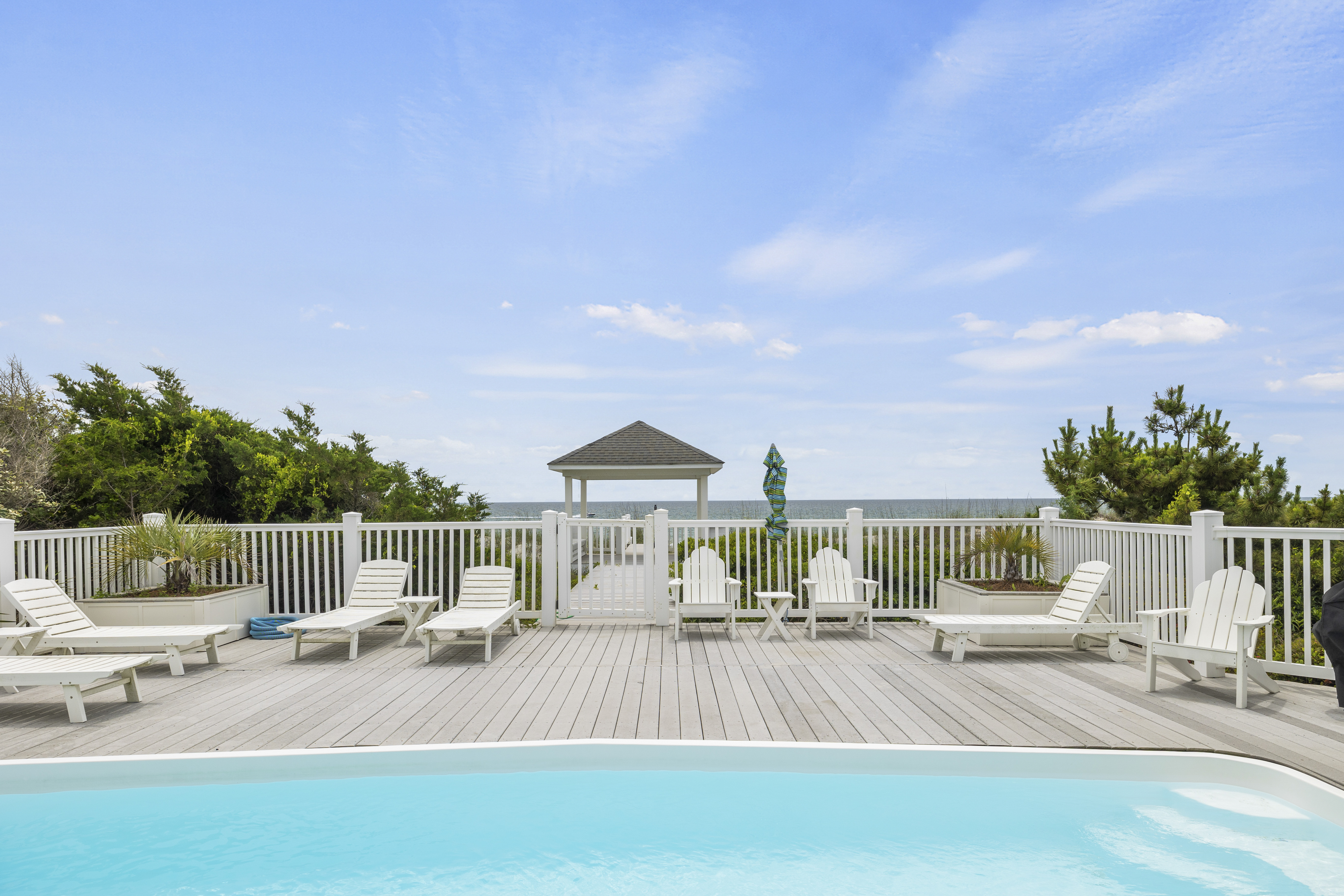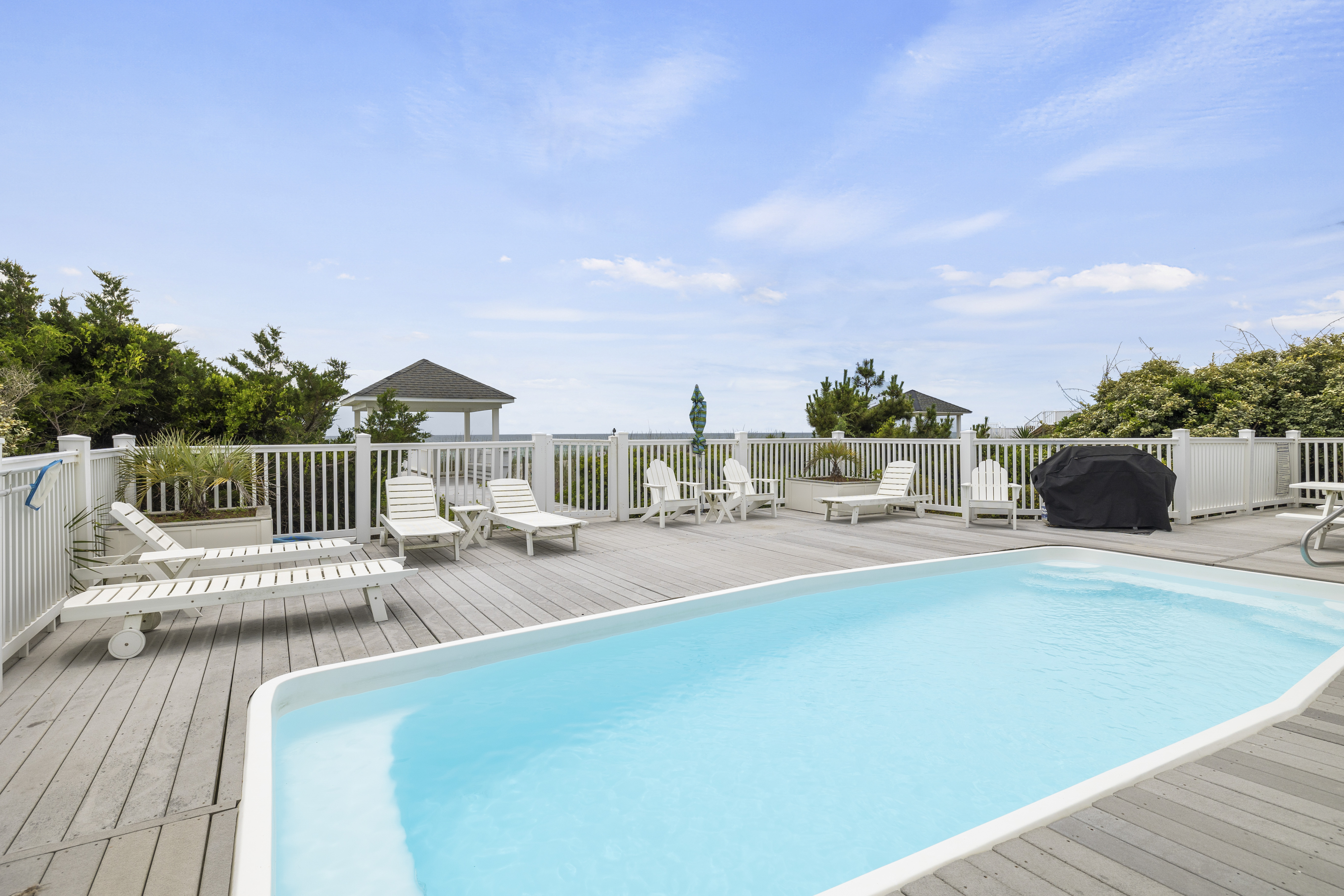 A brand-new outdoor shower awaits your return from the beach and ample outdoor loungers allow you to soak-up the sun poolside. The pool can be heated for $650/week + tax and is the perfect place to enjoy family time, float around or watch the children swim.