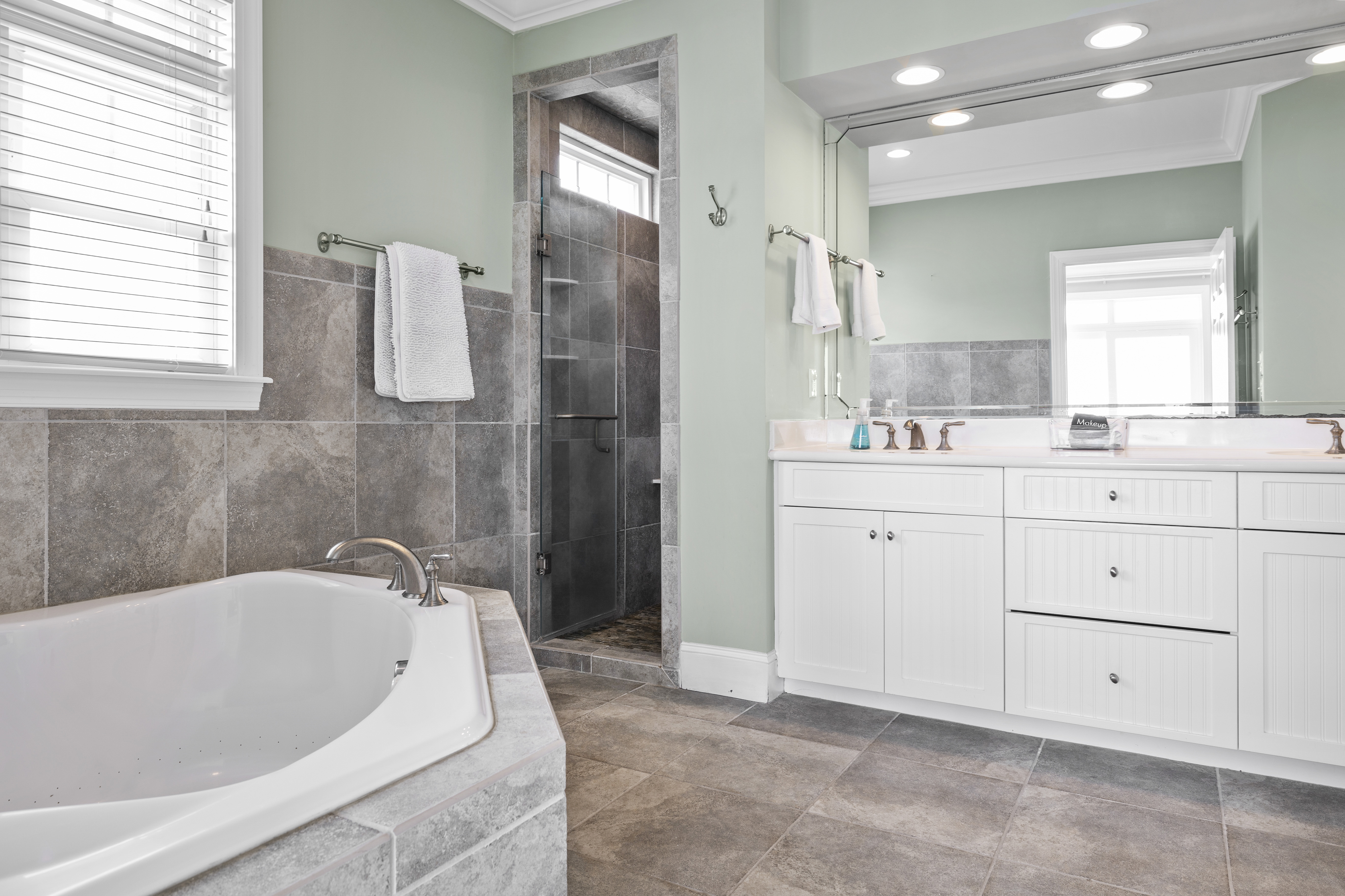 These are the most spacious king bedrooms you’ll find, and each has a lot of drawer storage and big closets for all of your belongings! These rooms are all big enough to escape the hustle of the activity of the house and enjoy that afternoon nap you never get while at home. We even offer (2) robes for before/after your hot tub use! In our king bedrooms, you really are a King (and Queen)!