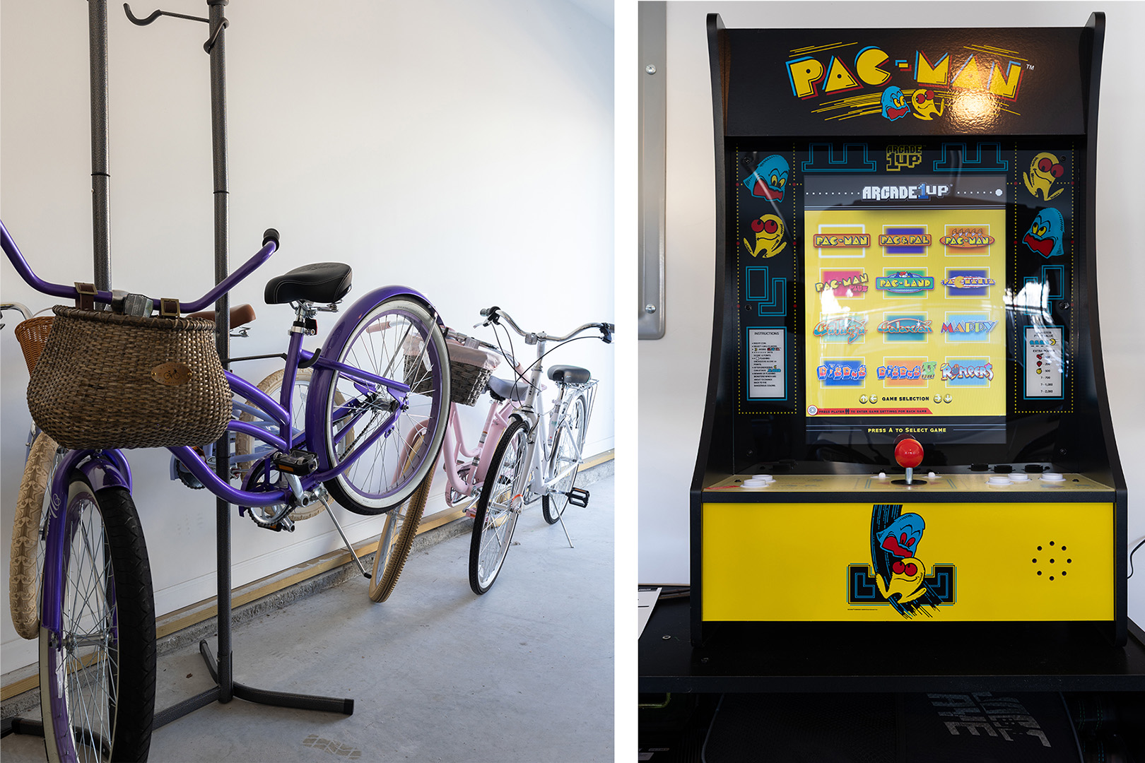 Enjoy family game time with the Pacman Game, Dart Board, and "Table" Foosball in the garage - the perfect setup for a hang out space.