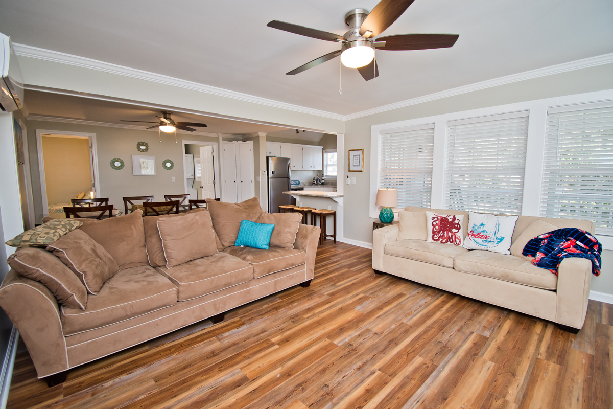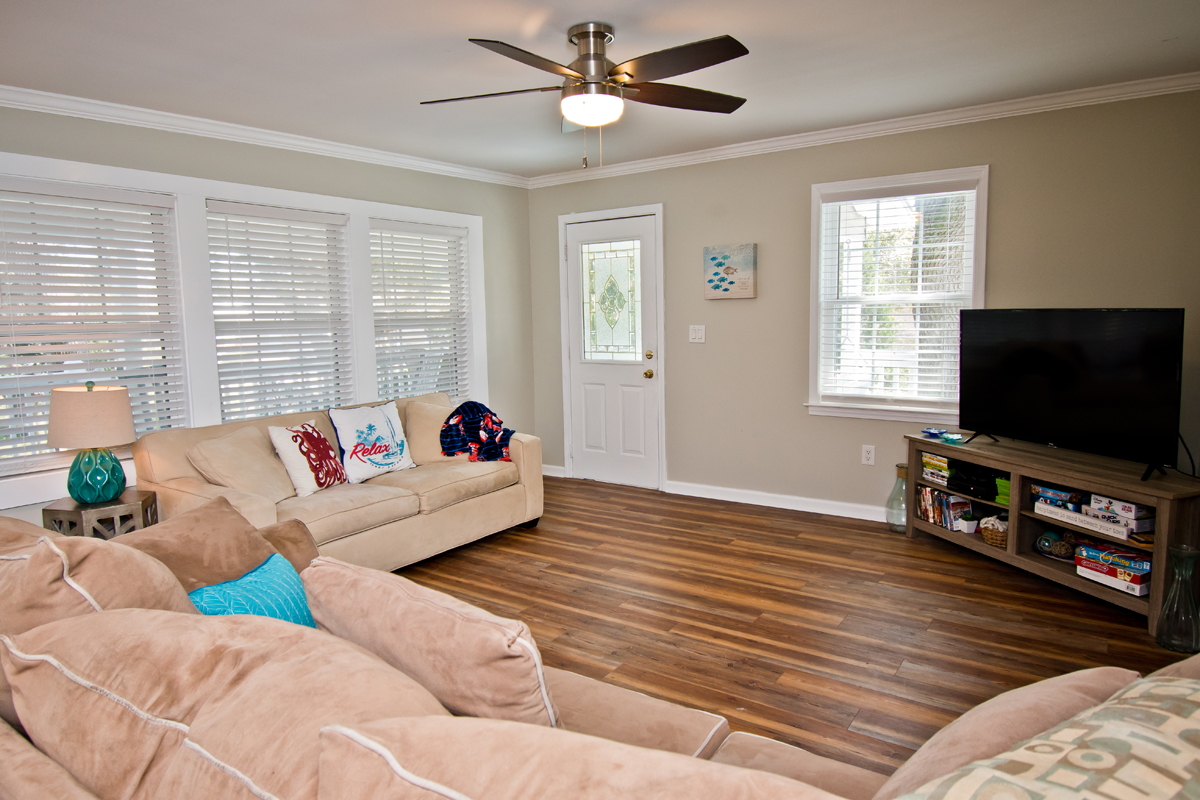 Additional amenities include: Mini-Splits with air and heat, 5 Flat Screen TVs, 2 DVD Players, Xbox 360, Roku, bonus room with twin bed, observation deck, outdoor deck with furniture, fully equipped kitchen, coffee maker, Keurig coffee maker, and more! Salty Oaks is connect to Salted Path Park which has a baseball field, playground/swingset, outdoor grills, and covered shelter with picnic tables - perfect for the whole family!