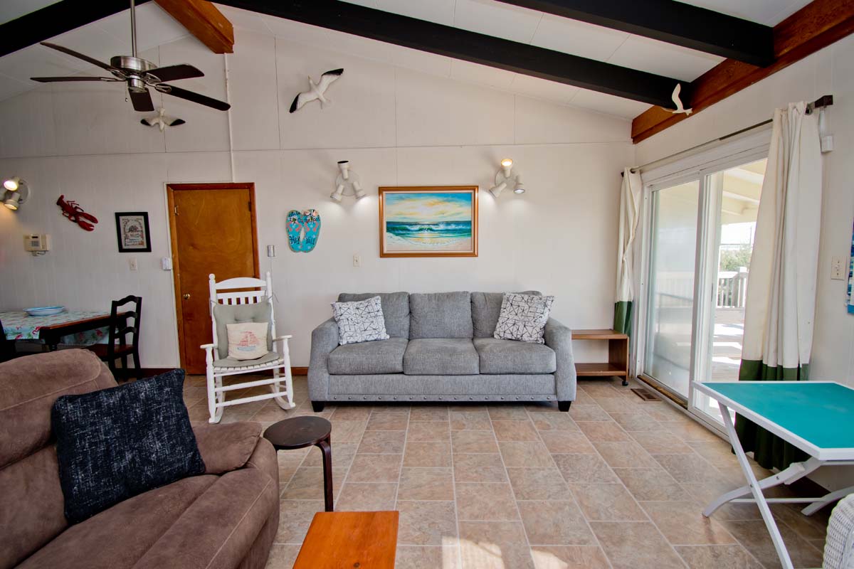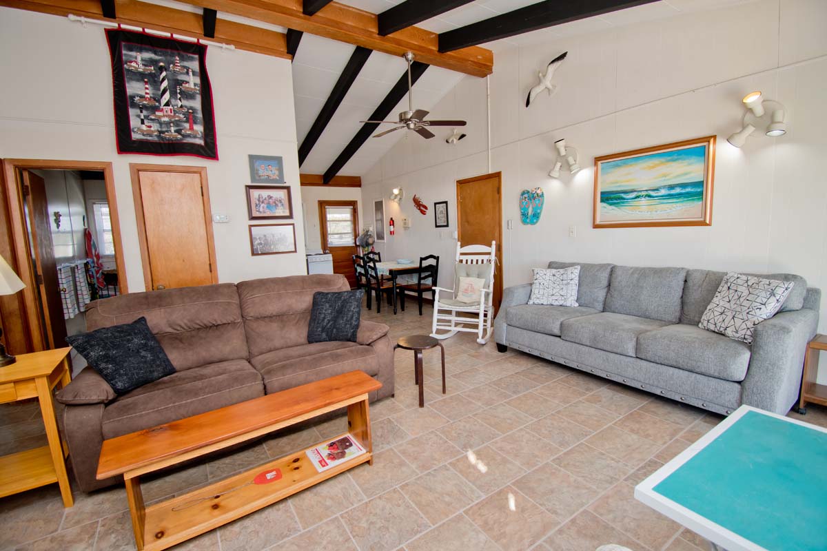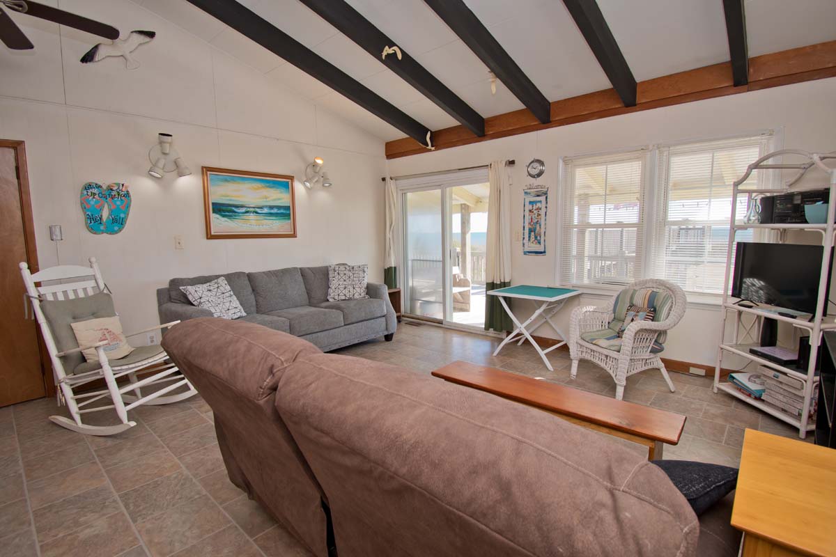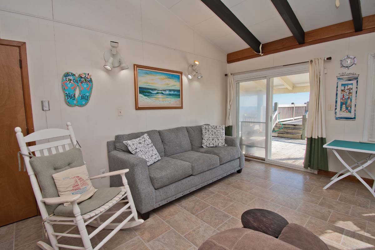 Sea Castle West is an affordable 2 Bedroom, 1 Bath Oceanfront duplex (west side) with amenities for comfort and convenience including an Interior Connecting Door if renting with Sea Castle East.