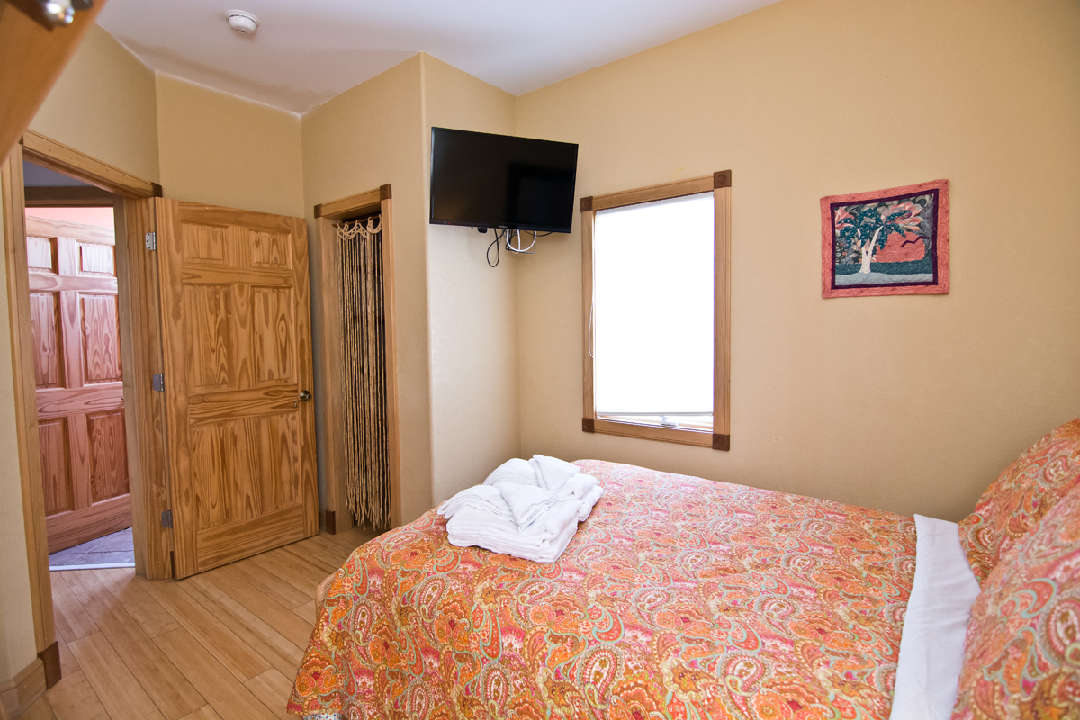 Floor #1 - Bedroom #1 Queen Bed, TV, Deck Access |