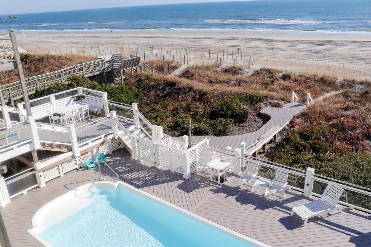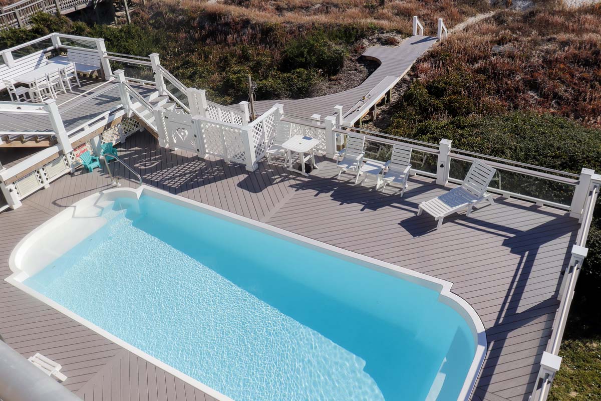 Amenities Include: High-speed Wireless Internet, 10 Color Cable TVs, 5 DVD Players, 2 CD Players, Media Room with 3¡ x 6¡ Big Screen TV, 2 Refrigerators, 2 Dishwashers, 2 Washer/Dryers, a Fireplace, a Game Room with Pool and Ping-Pong Tables, a Gas Grill, Extensive Open & Covered Decks with Furniture, 3 Enclosed Hot/Cold Outdoor Showers and Dressing Areas, a Steam Room, Beach Chairs, and Private Pool which can be heated for $650/week + tax. Less than 1/2 mile to Bogue Inlet fishing pier.