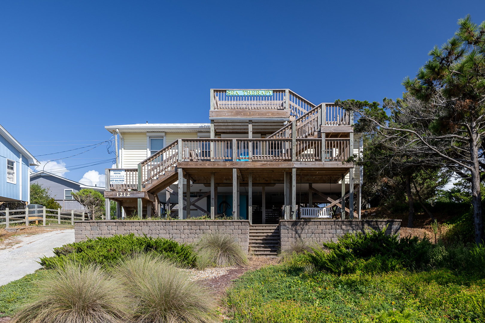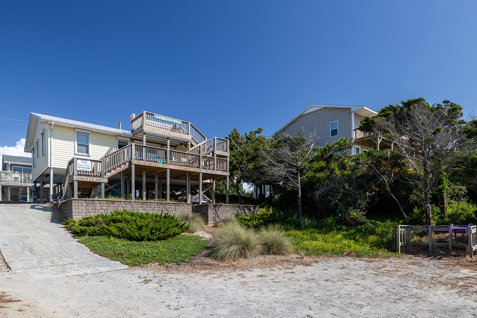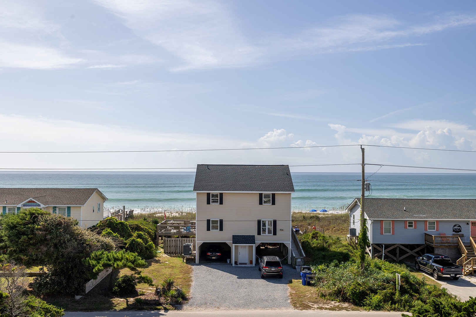 Come for your dose of Sea Therapy! This Almost Oceanfront 4 Bedroom, 2 Full-Bath home is just what the doctor ordered for your whole family - with the public beach access located right across the street! After a therapeutic day playing in the surf, rinse off in the outdoor shower. Spend a lazy afternoon snoozing in the hammock. Relax with wonderful ocean views from the covered deck and observation deck.