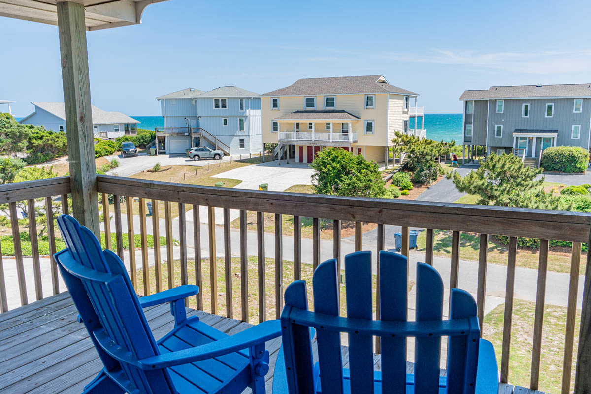 Seabatical East is an almost oceanfront treasure! This spacious family retreat with Atlantic Ocean views inside and out features 2 bathrooms and sleeps 8 in 3-bedrooms and 1 bonus room.