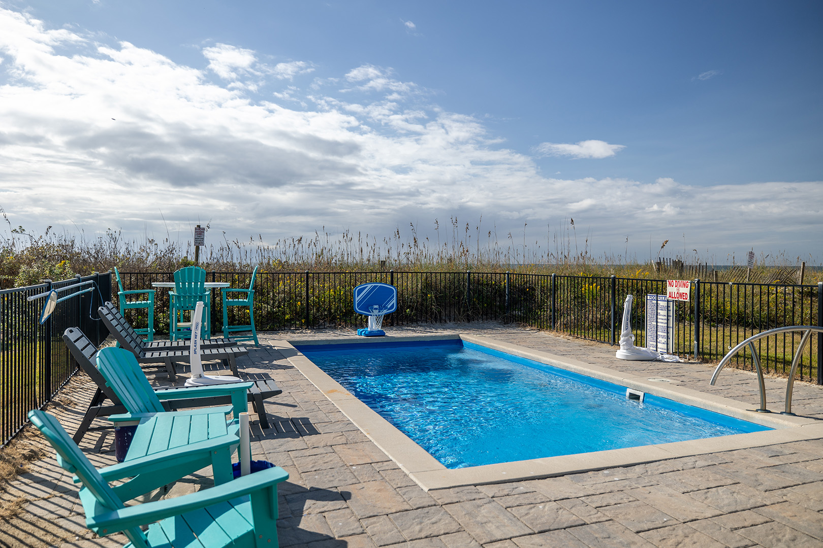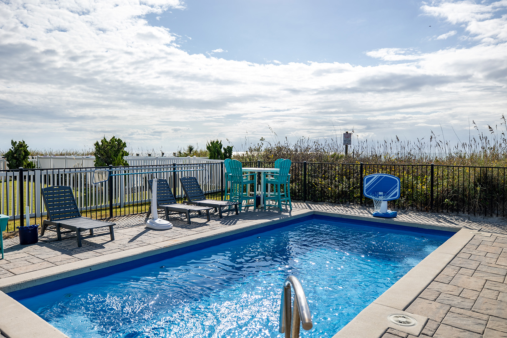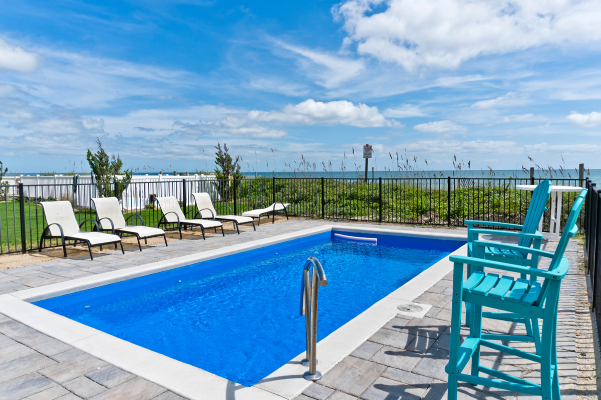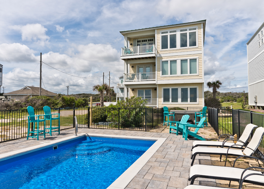 Level 1: Enjoy the additional living space during your vacation as you relax in the Den, which offers beautiful views of the expansive backyard and ocean, access the the covered Oceanfront deck, Flat Screen TV. Walk directly out to your Private Pool or Private 6 person Hot Tub that has a backdrop of the Atlantic Ocean. There is a Trex walkway from the pool deck to the hot tub. Evenings at Seas the Day will be such a treat with the oceanfront deck and hot tub, offering the perfect setting for a coastal evening. Unloading your bags and groceries will be a breeze! A shared walkway to beach is just a few steps away!