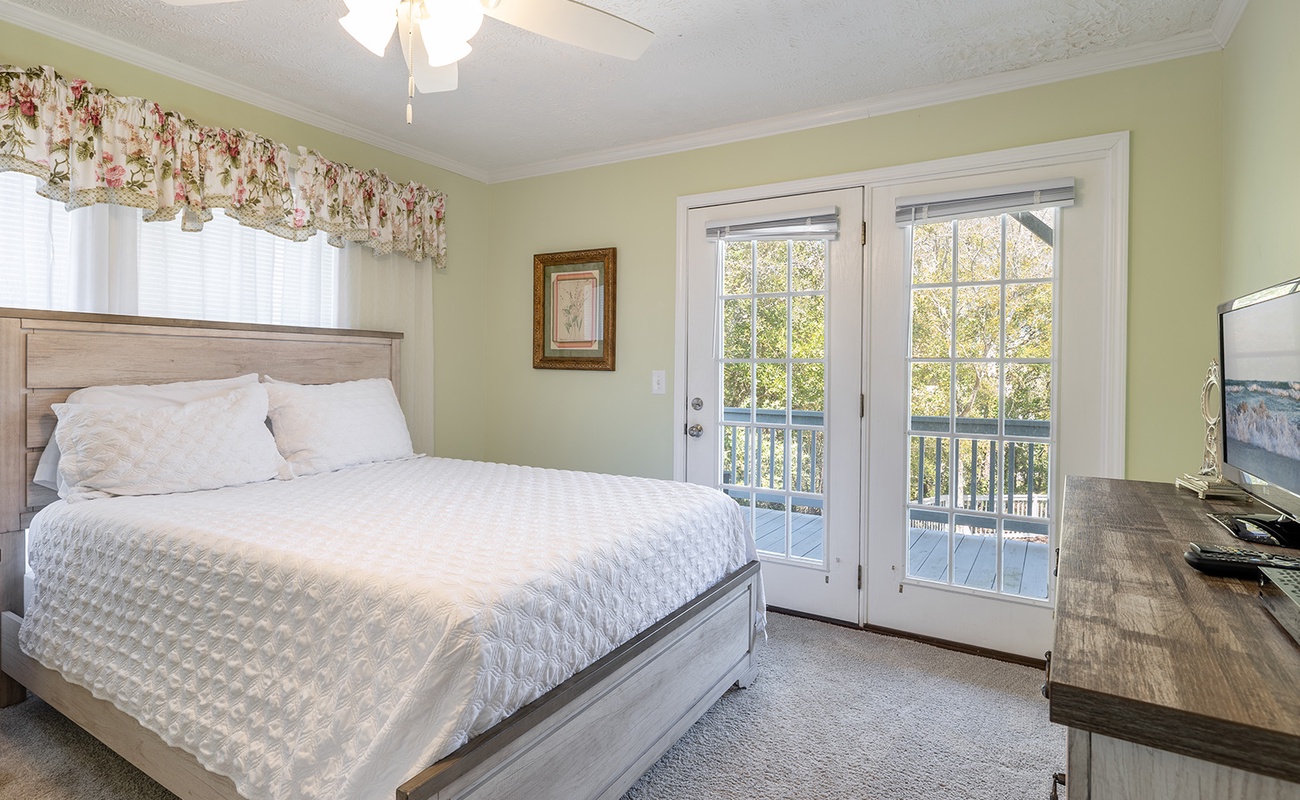 Slip into slumber in one of 4 bedrooms on this level including Bedroom #2 and Bedroom #3 each offering a Master Bedroom with King Bed with memory foam mattress and Private Full Bath; Bedroom #4 with a Queen Bed with memory foam mattress; and Bedroom #5 with a Twin over Double Bunk Bed and a Twin over Twin Bunk Bed. Bedrooms #4 and #5 have access to the Shared Full Bath this level. Deck Areas with Furniture on this level simply add to the appeal.