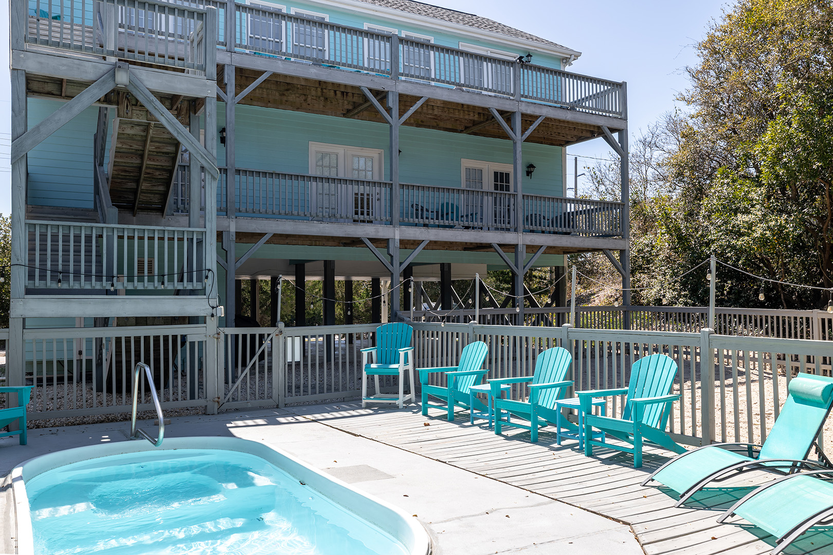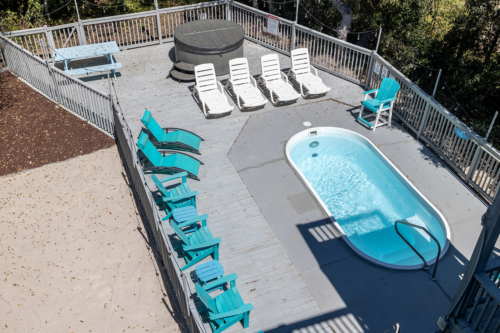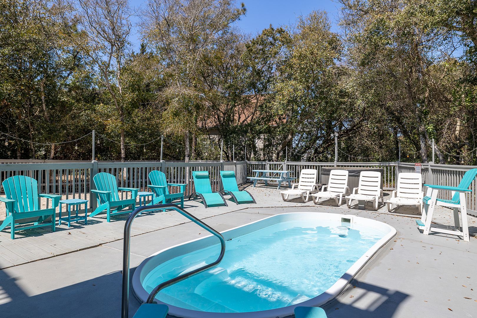 Enjoy the Private Dipping Pool (5 ft W x 15 ft L x 3 ft D) and Hot Tub complete with a deck lounge area with furniture. Cook your seaside fare and eat al fresco with the Gas Grill and Picnic Table. For your convenience, the Enclosed Outside Shower with Hot and Cold Water is perfect for freshening up when coming in from the beach, pool, or hot tub while parking is provided in the Carport and Driveway. Enclosed sandy yard area is perfect for activities and games for the family and a play area for canine companions!