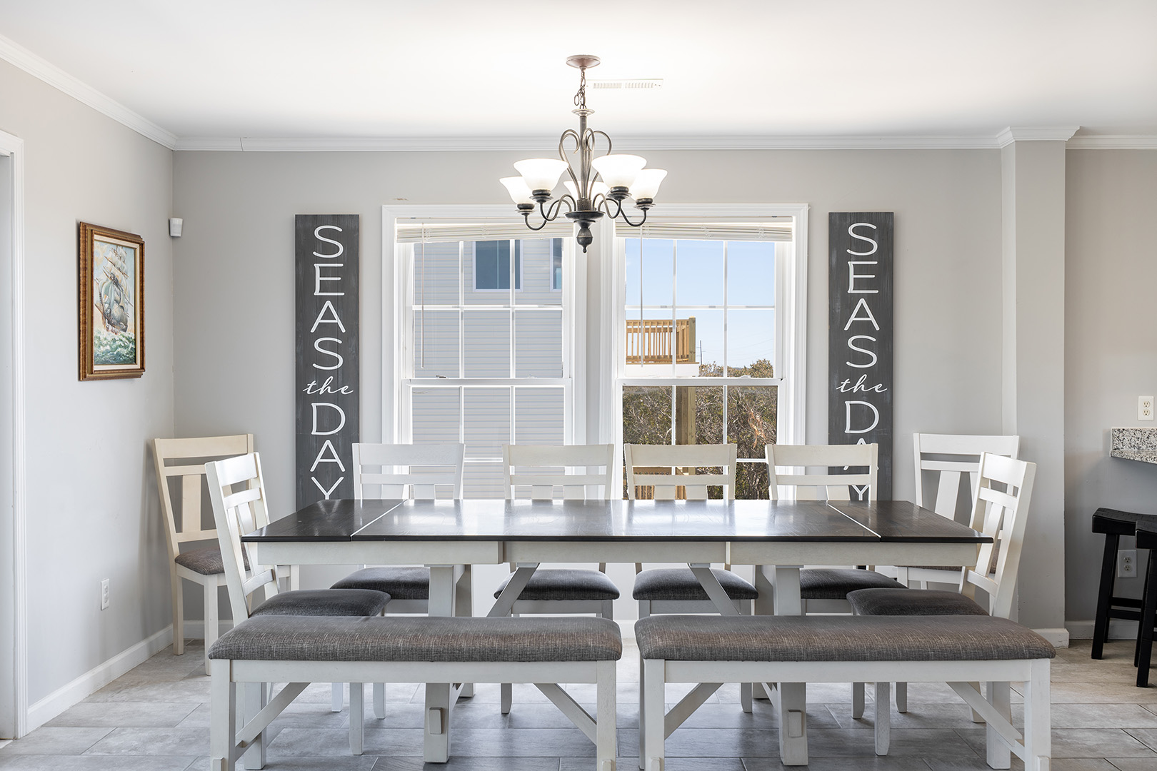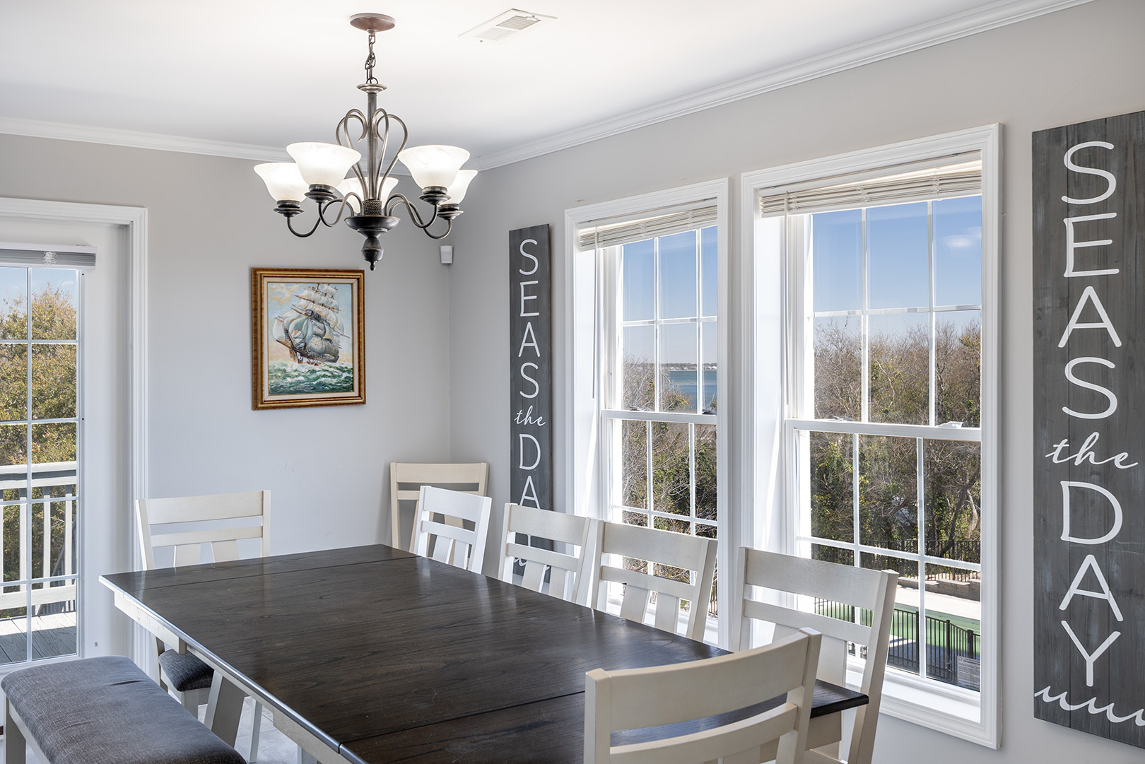 Get ready to Seas the Moment at this welcoming Oceanview and Soundside Emerald Isle home! With 5 bedrooms and 4.5 baths, this home comfortably accommodates your family featuring 3 King suites each with their own private bathrooms as well as a Queen bedroom and a bunk room with a Twin over Double Bunk and Twin Bunk Sets.