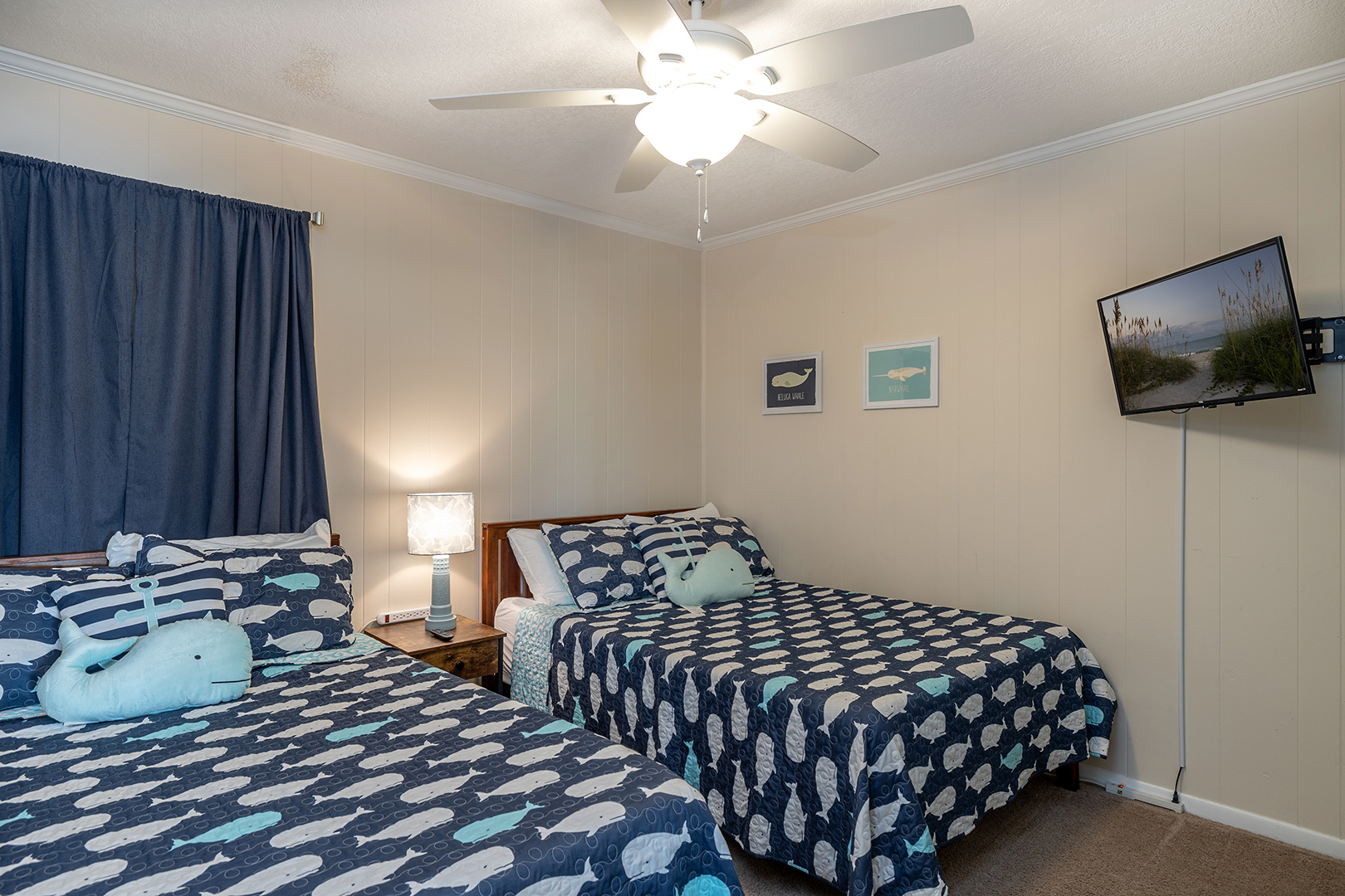 Bedroom #2 has 2 double beds, a TV, and shares a full bath.