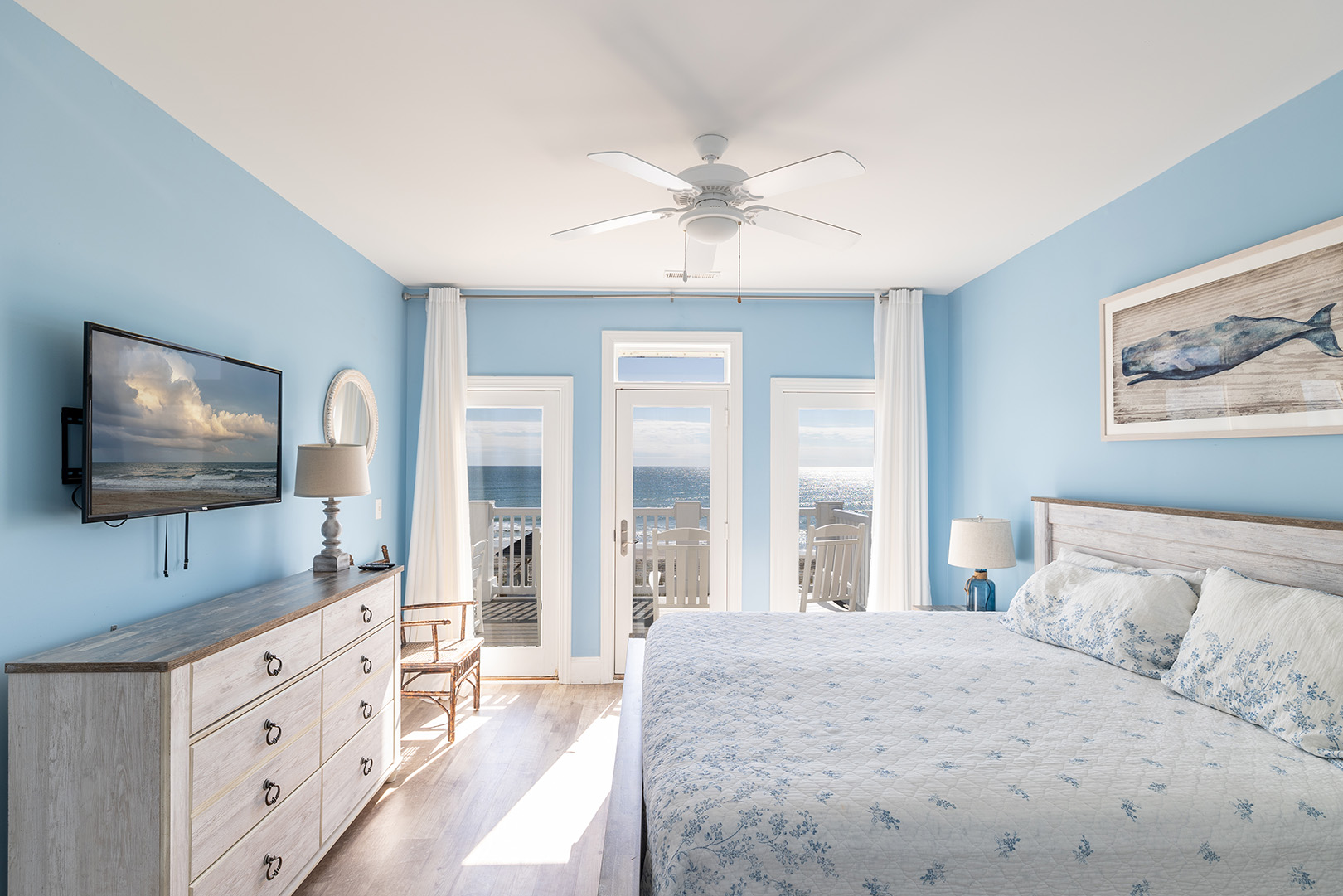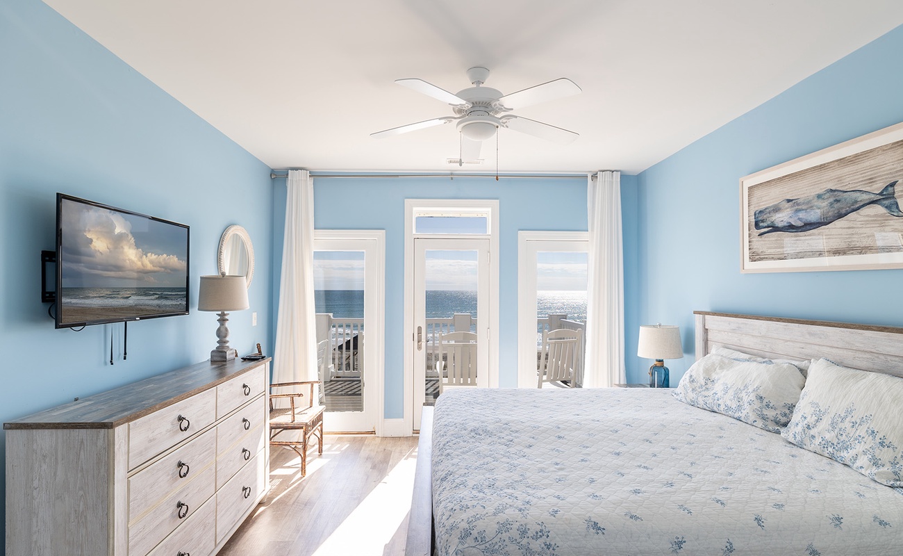 Floor 2: Bedrooms #3, #4, and #5 are all on the Oceanfront and have King Beds. Bedroom #6 is Streetside and has a Queen Bed.