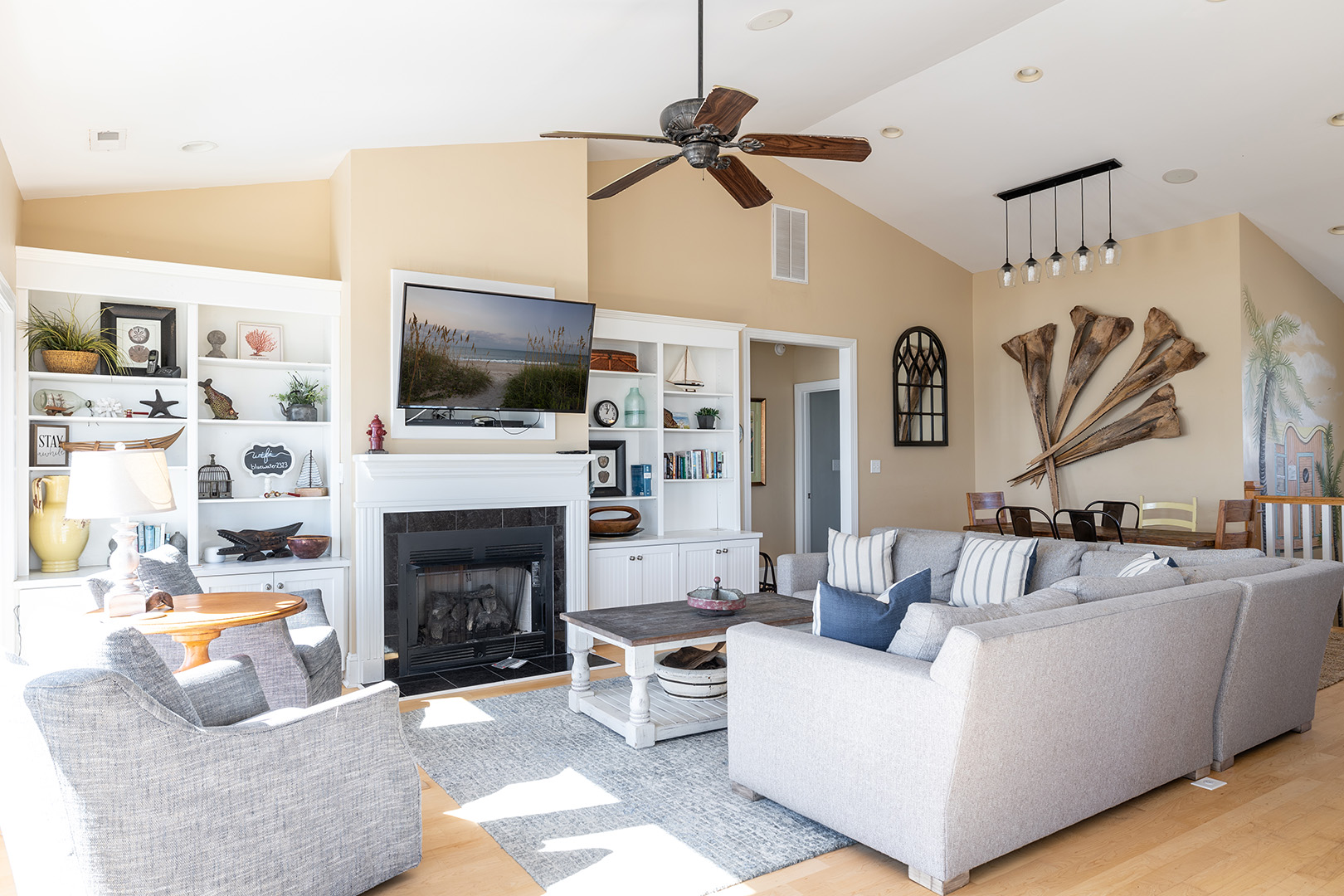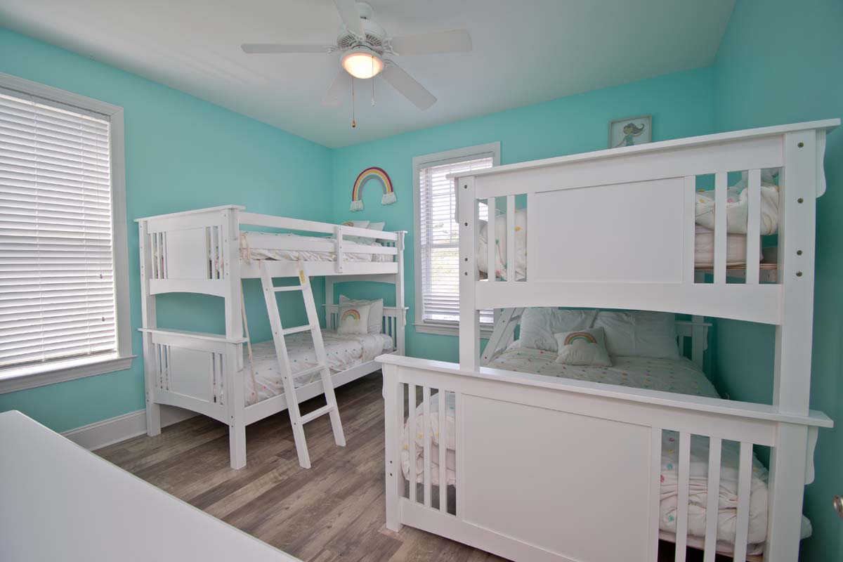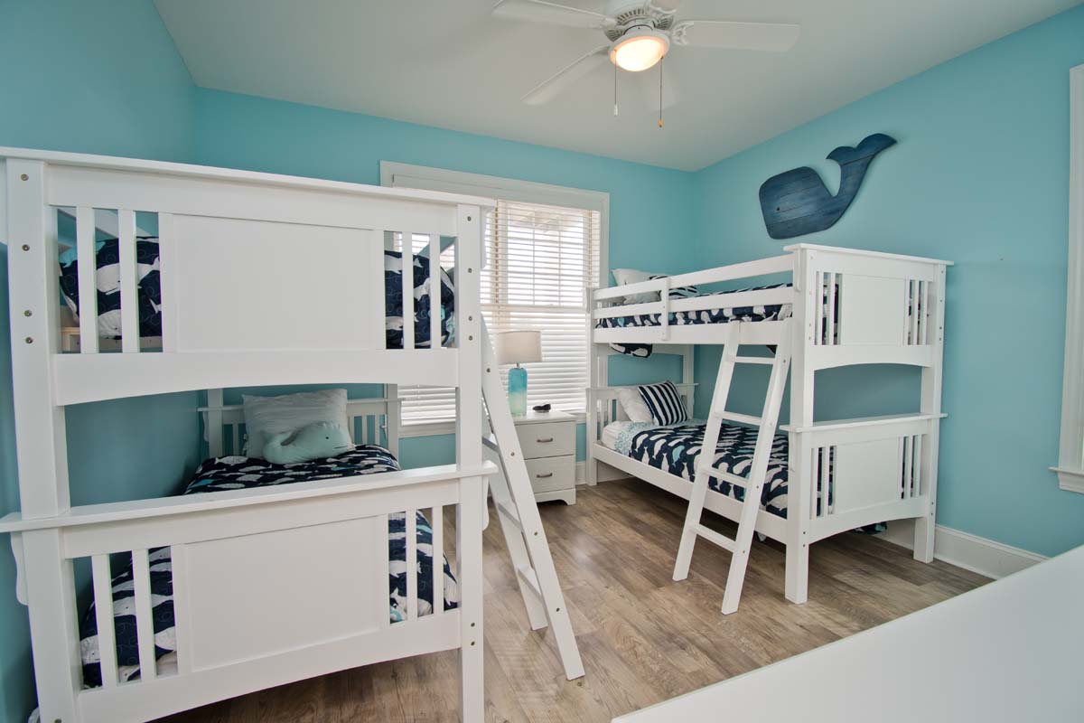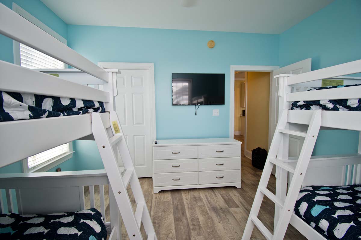 Floor 1 - Ground Level: TV Room and Game Room. Bedroom #1 is Streetside and has 2 Twin/Twin Bunk Sets with Roku/Cable TV with access to Netflix, Amazon, and other streaming apps. Bedroom #2 is Oceanside and has a Twin/Twin Bunk Set and Twin/Double Bunk Set with TV and DVD Player.