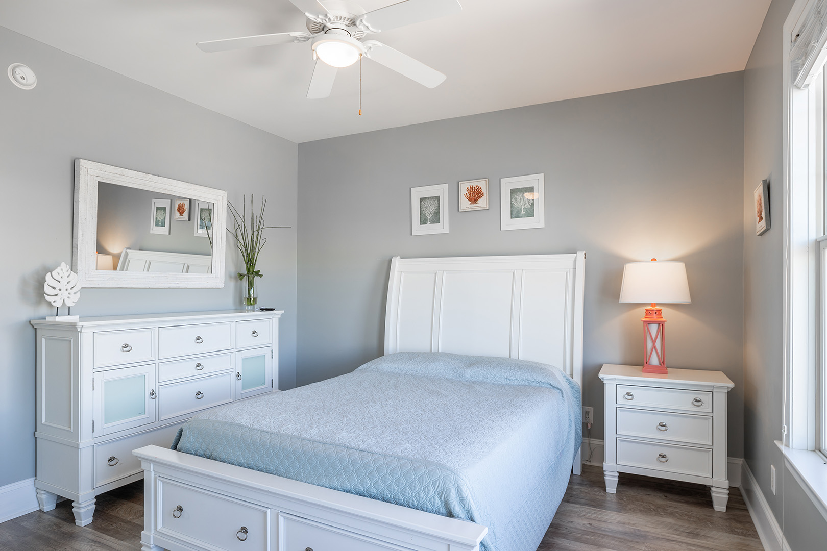 Floor 3: Bedroom #7 is Oceanfront and has a King Bed. Bedroom #8 is Streetside and has a Queen Bed.Â