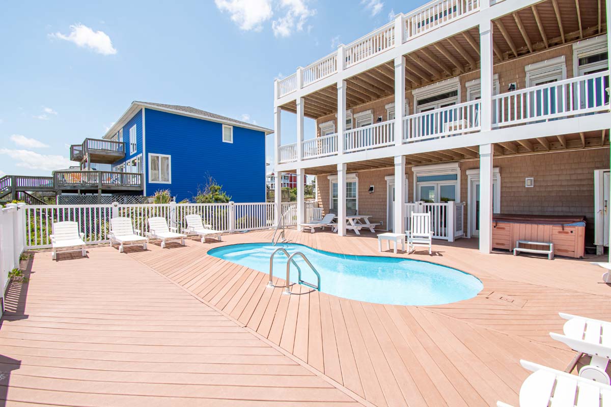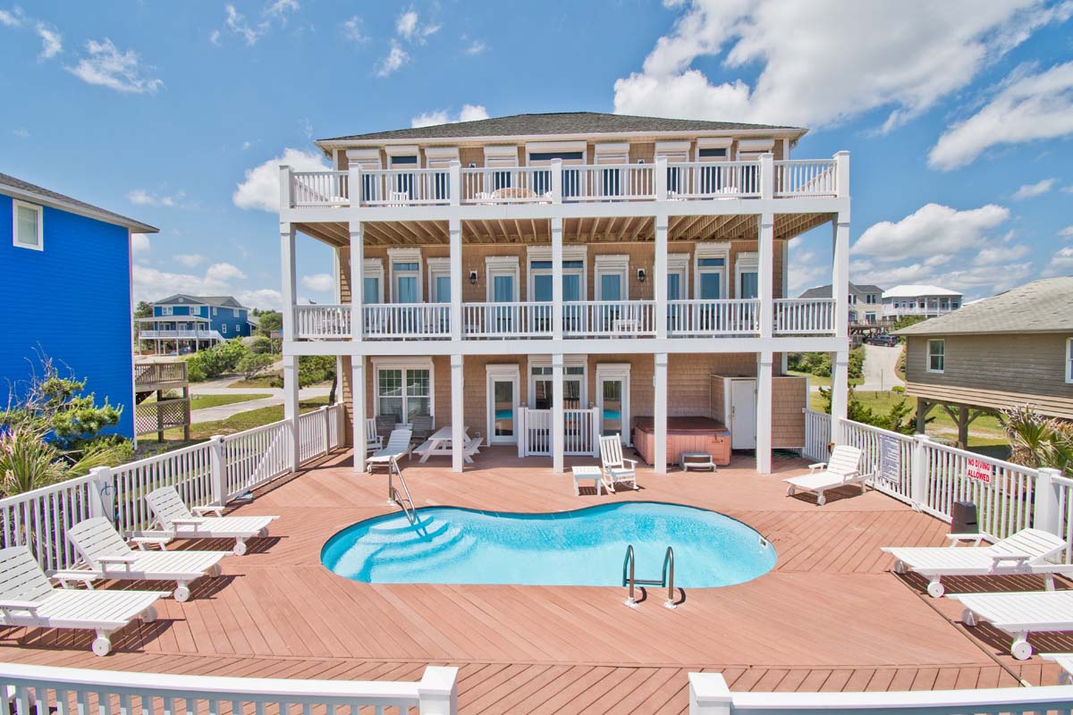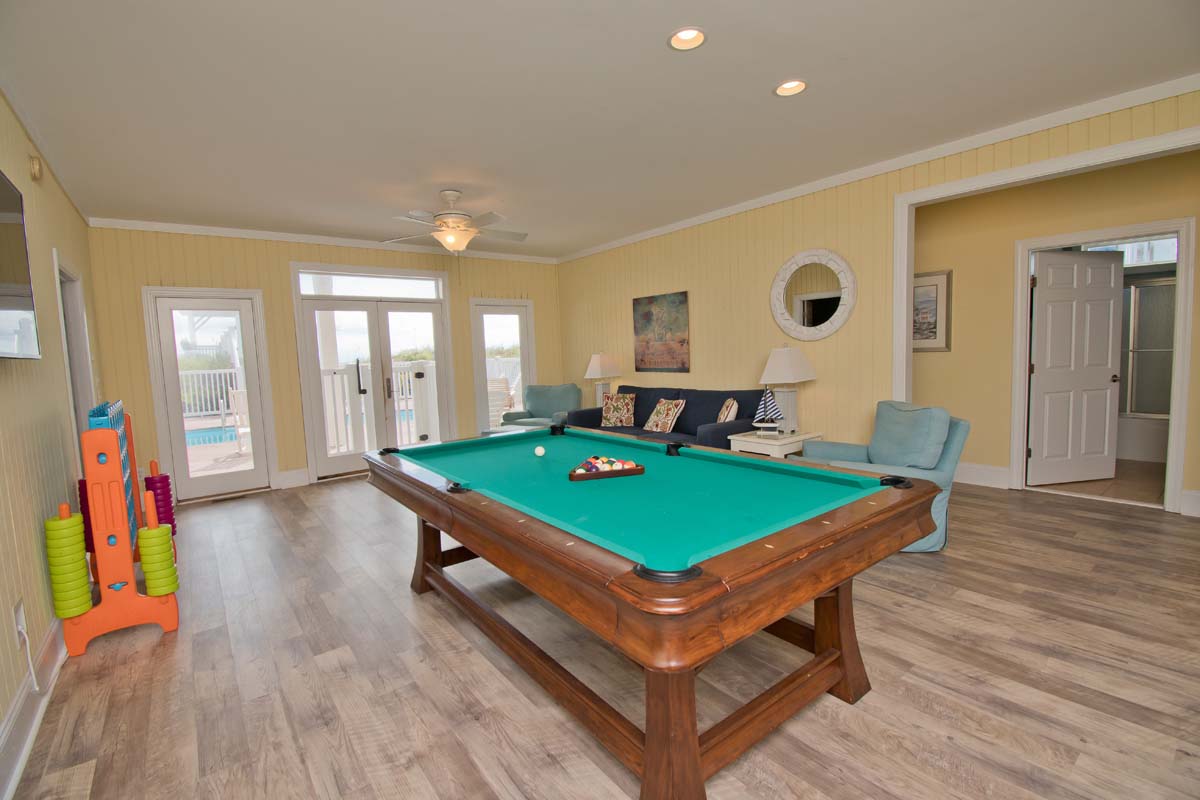 The Luck of the Irish doesn't have to be with you in order to stay at this 8 Bedroom, Oceanfront House! Nope, you just need the Luck of Emerald Isle to stay at Shamrock! The private Hot Tub and 12 X 28 Pool (see item #19 below), which can be heated for $650/week + tax, both offer excellent ways to relax! Shamrock features a Game Room with Pool Table, and a TV Room with a Wide Screen 70" Television, so there are multiple ways to enjoy your vacation even if passing rain showers interrupt your time in the Carolina sun! This house also has an Elevator and High-Speed Wireless Internet for its guests to use!