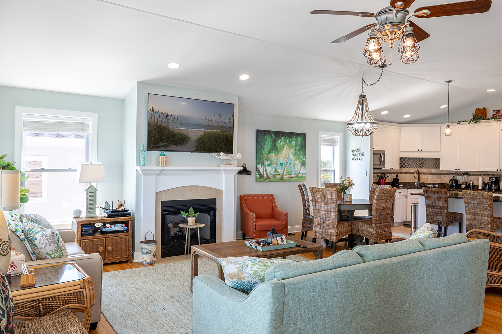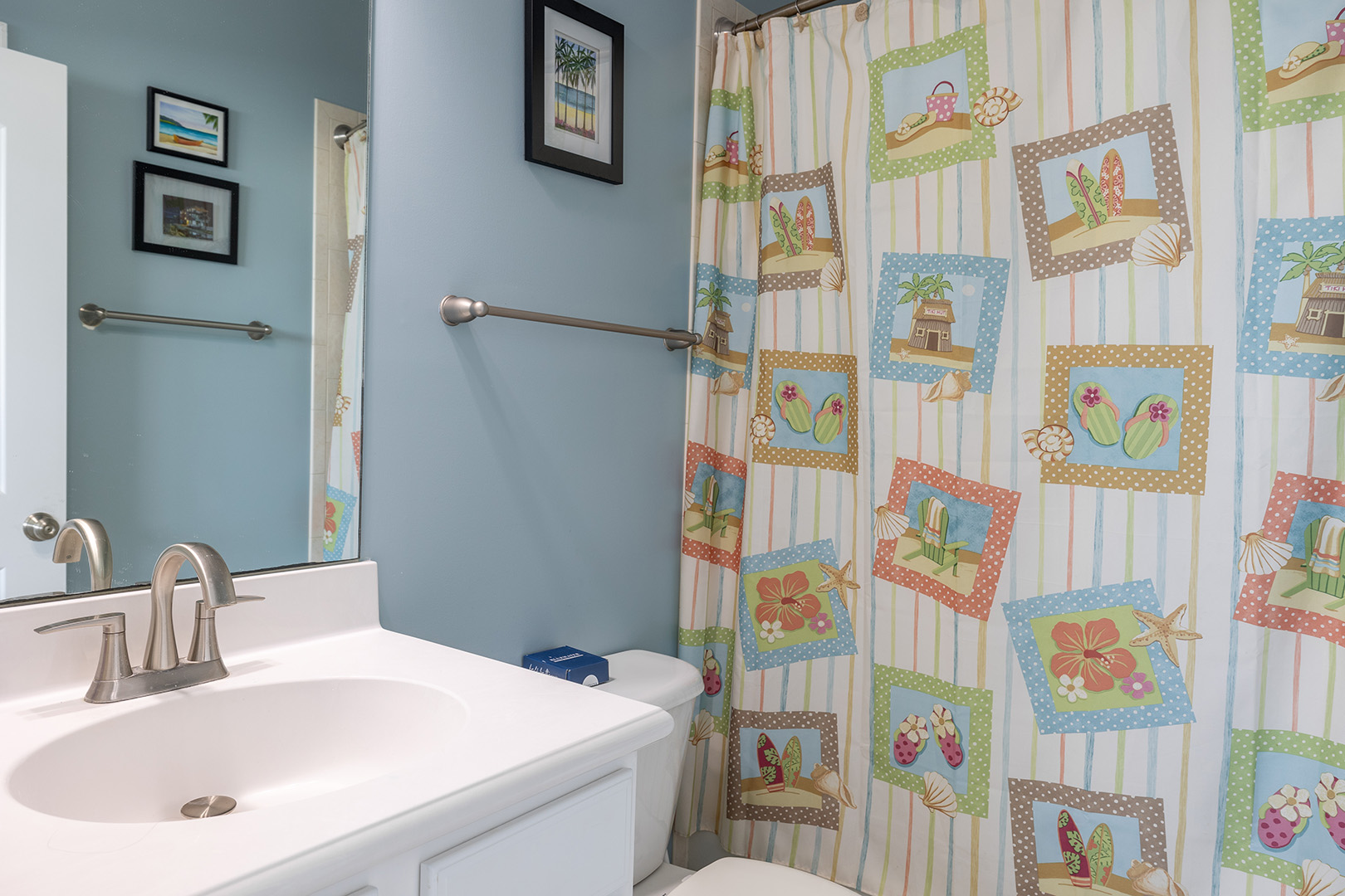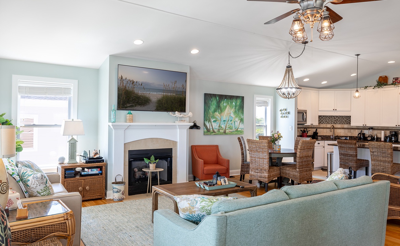 Shore Beats Workin' is equipped with High Speed Wireless Internet so you can stay socially connected while on vacation. Every bedroom has a private bath and a bedside clock with USB charging.