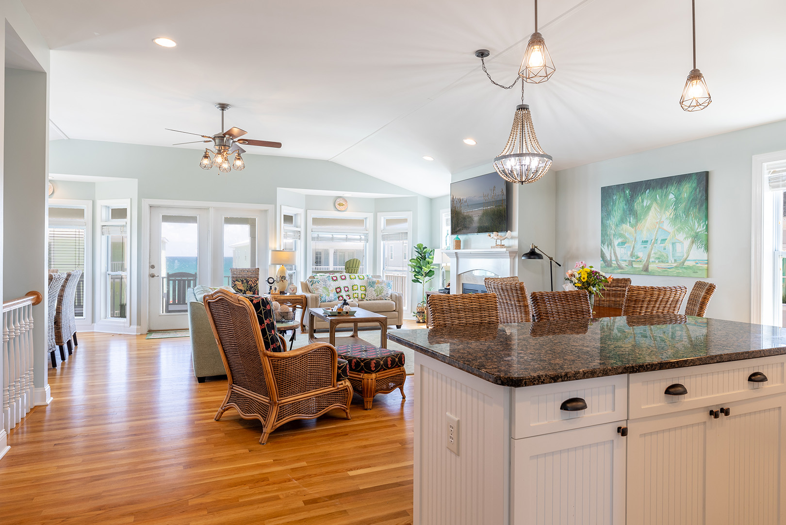 Level Two: Bedroom #5 has a King Bed. Living Area has a 65" LED HD TV. The latest technology with an incredible picture! It's connected to Netflix, Disney+, Apple TV+, Pandora, and Hulu Plus and has a Blu-Ray player. Enjoy fantastic ocean views from the Living Area.