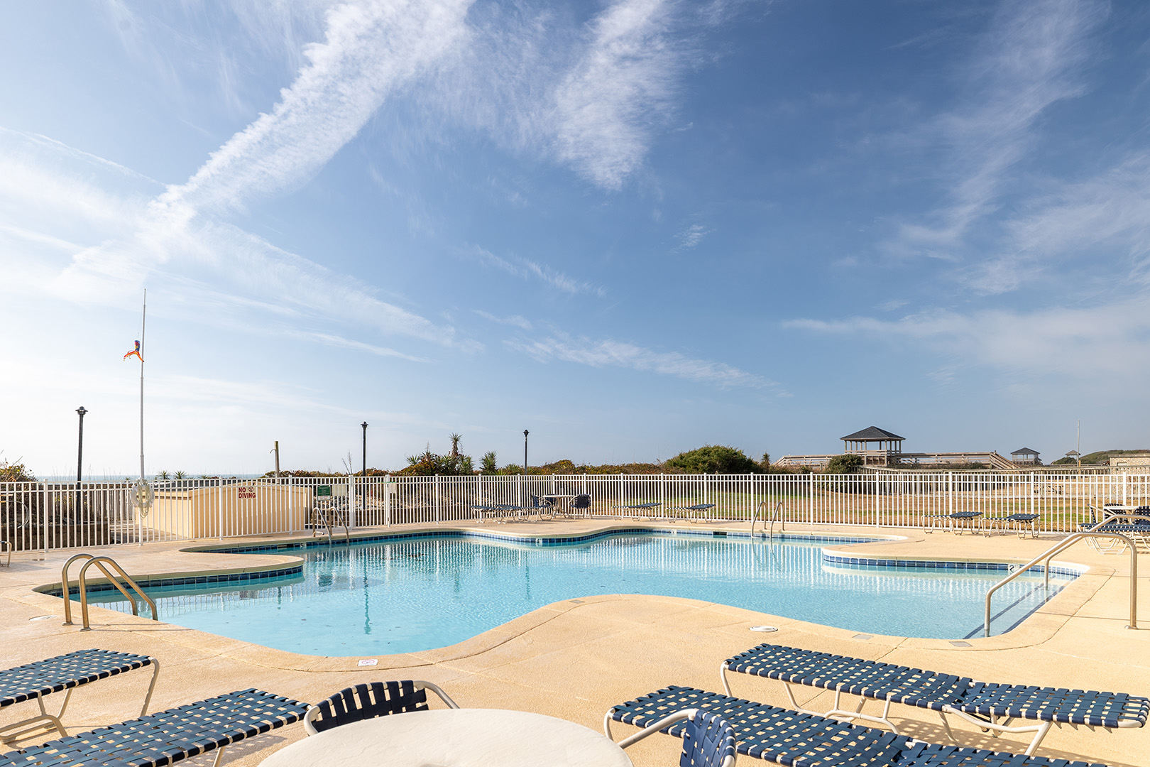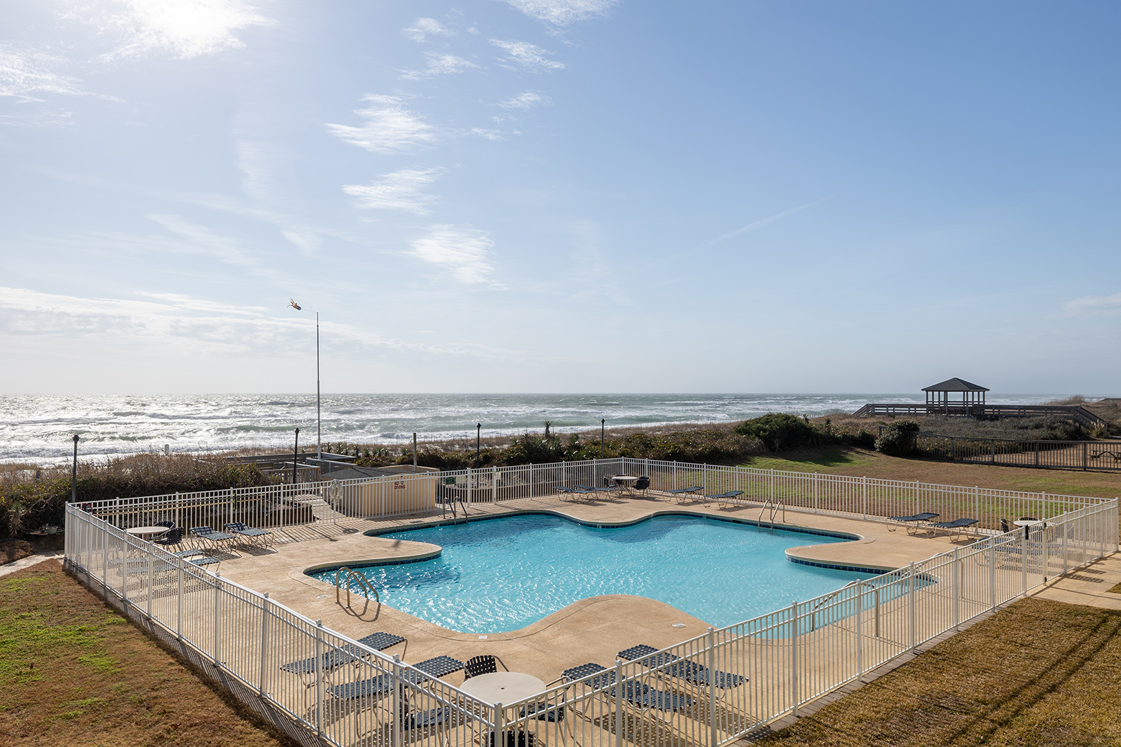 Complex Amenities: Community Outdoor Showers, Seasonal Pool (typically open Memorial Day - Labor Day), and Beach Walkway. Bluewater cannot guarantee complex/community amenities will be in service during the time of your stay.