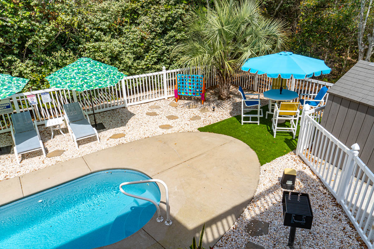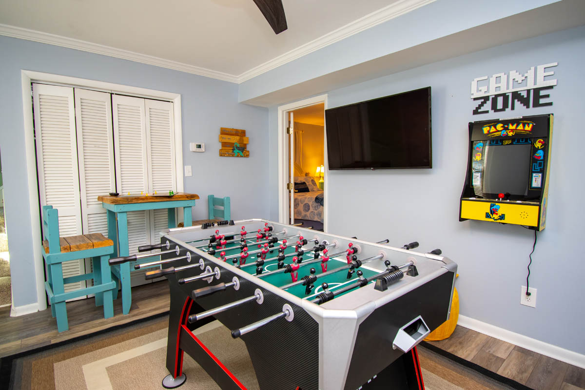 Additional amenities include: Private Pool that can be heated for $650/Week April - November; if the temperature is below 55 degrees, the heat pump will not work. 6 Smart TVs, High-speed Wireless Internet, Roku Streaming, Covered Deck with Deck Furniture, Outdoor Decks, Picnic Tables, Ceiling Fans, Hair Dryers, Iron/Ironing board. Park-Style Grill, Enclosed Hot/Cold Shower, Interior Washer/Dryer, Fully Equipped Kitchen with Coffee Maker, Oven, Refrigerator, Microwave, Dishwasher. Recreation/Game Room with Foosball, Shuffleboard, Corn Hole, and Bicycles.