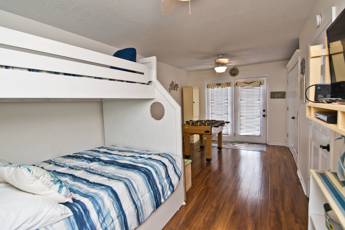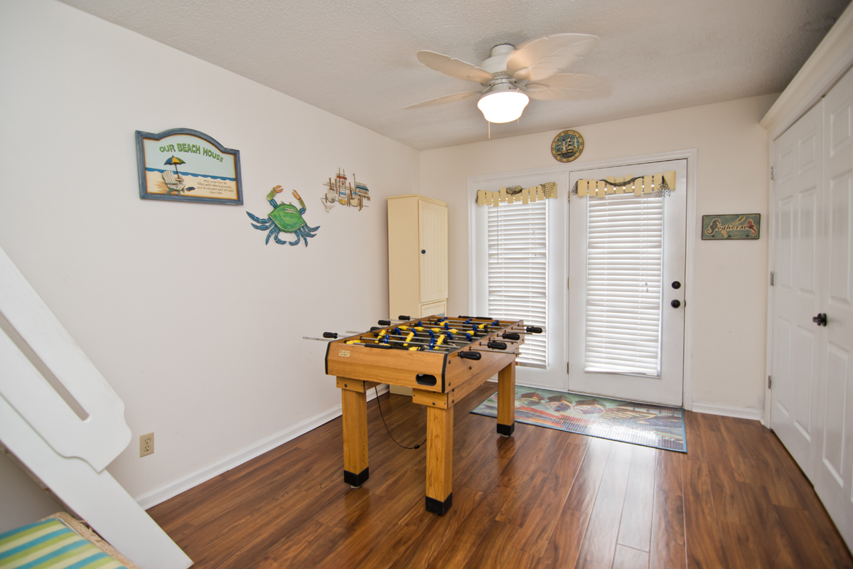 Ground Level: Bedroom #1 with Queen Bed. Bedroom #2 with Game area with Foosball Table, Flat Screen TV, and 1 Twin/Double Bunk Set. Shared Full Bath. Washer & Dryer.