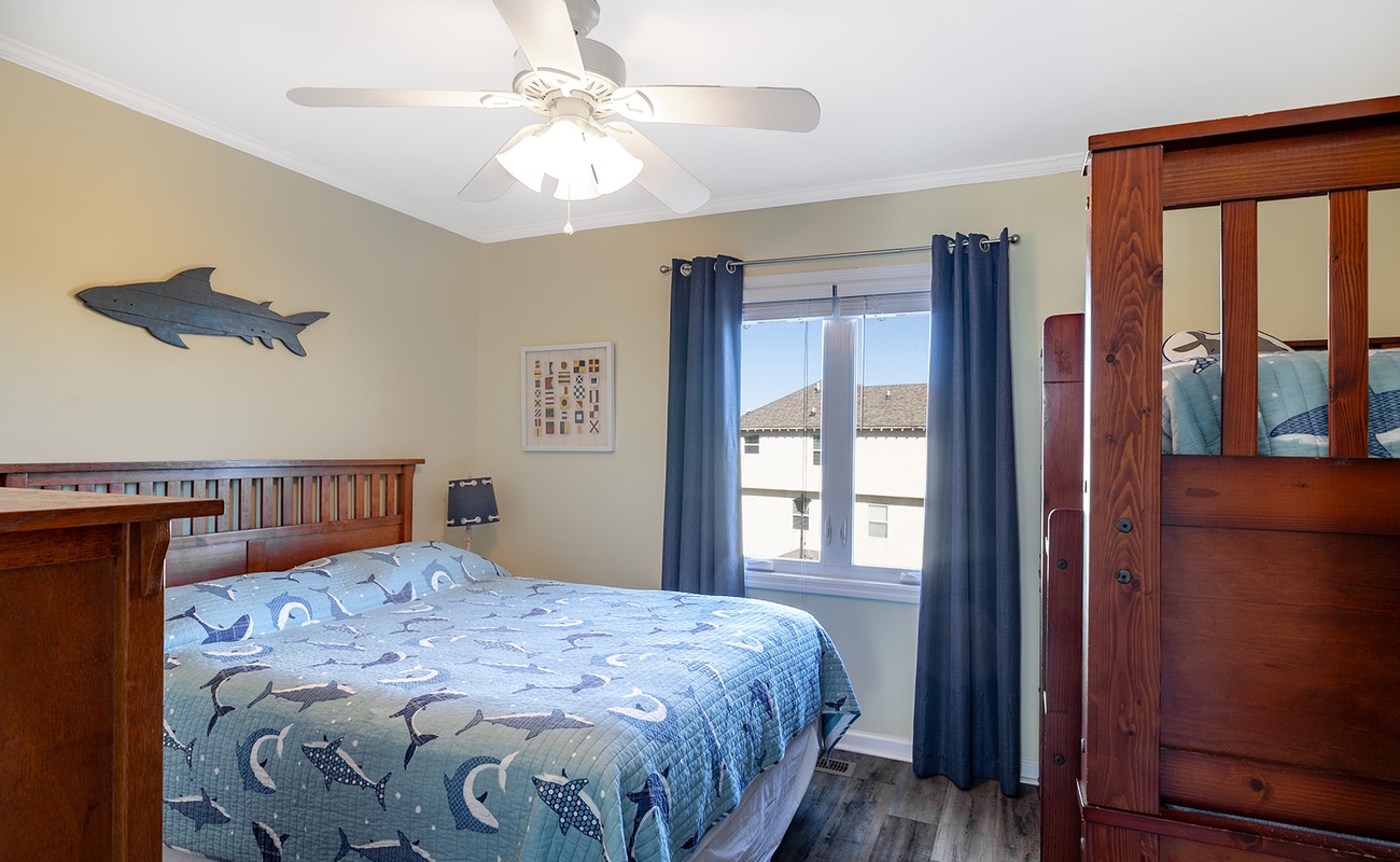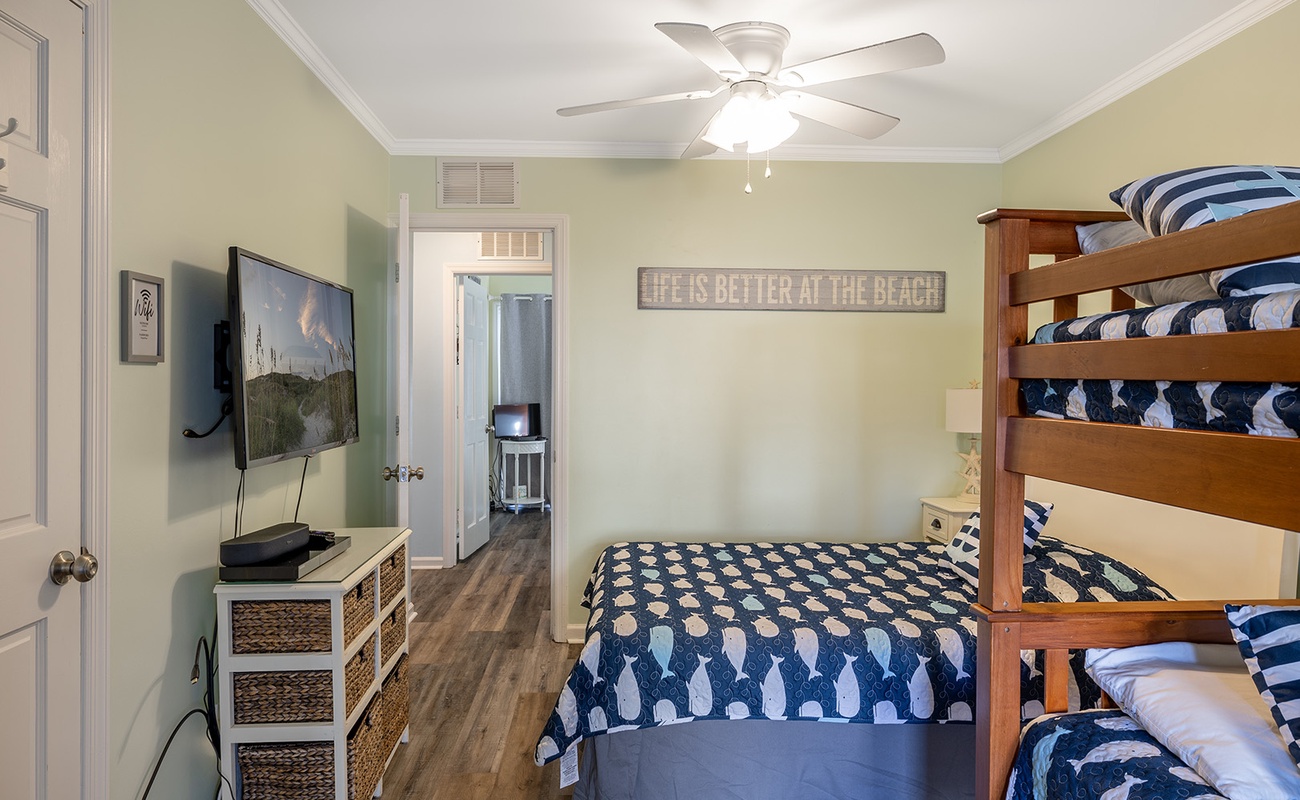 Level 2 - Bedroom #3 Queen Bed, Twin Bunk, TV |