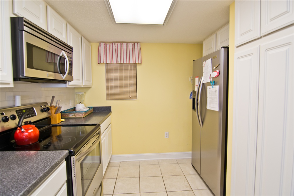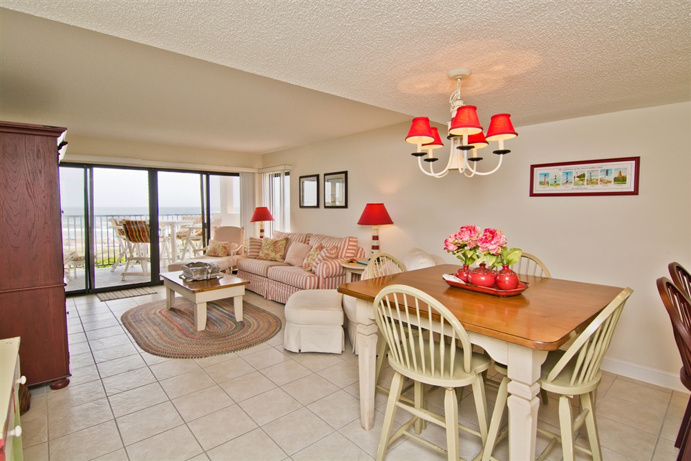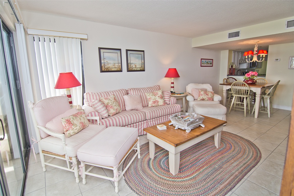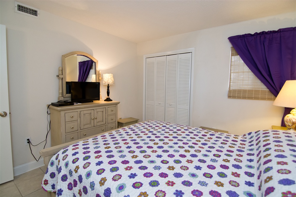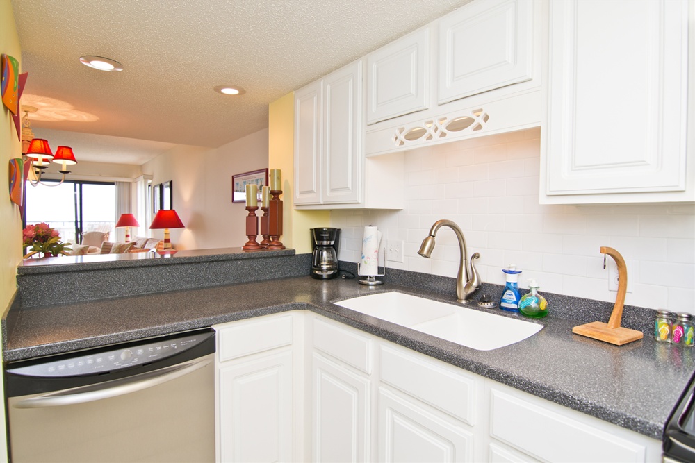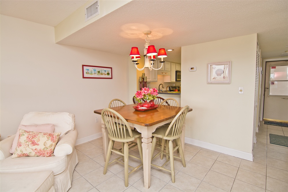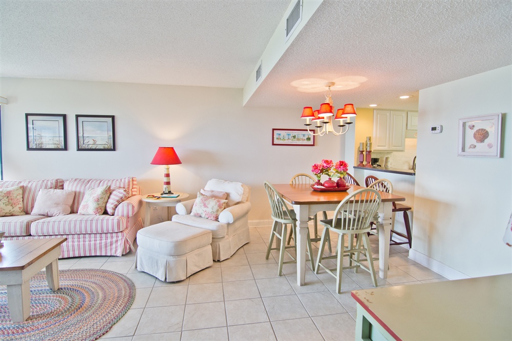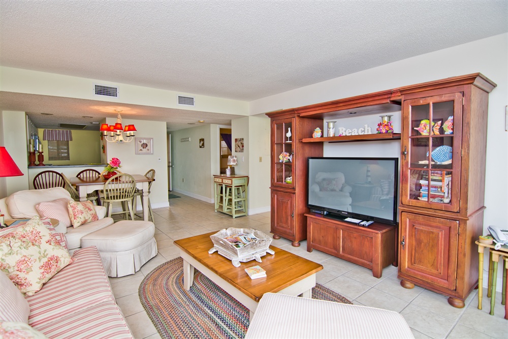 Located on the first floor of the high rise building, beach access is a breeze! Large living area with Queen Sleeper Sofa faces the ocean with covered oceanview deck with ample deck furniture! Dining Area. Kitchen/bar area with microwave, dishwasher and in-unit washer/dryer. Enjoy cooking in this fully equipped kitchen and dining at the 6 seat dining table. Master Bedroom with King Bed, TV and Private Full Bath. Bedroom #2 with a Queen Bed and TV. Shared Full Bath. 2 Color Cable TVs. Stackable In-Unit Washer/Dryer. Central HVAC. High Speed Wireless Internet.