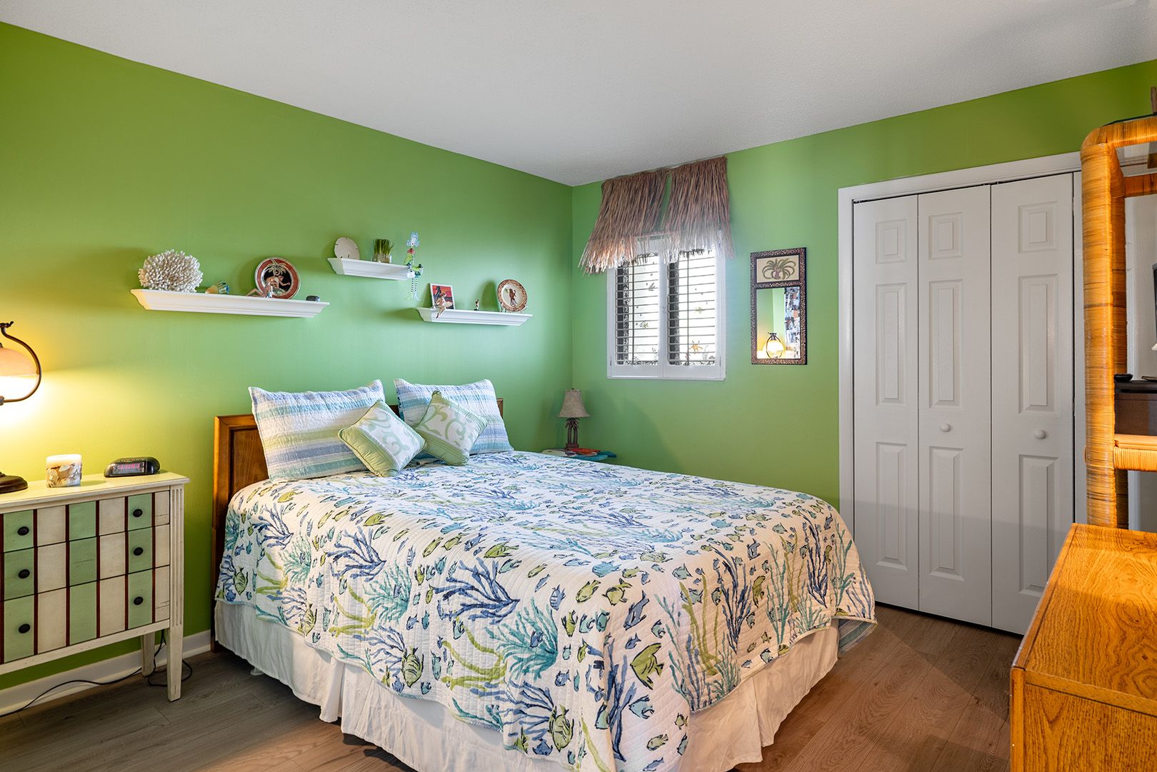 Bedroom #2: Queen Bed, TV, Access to Shared Full Bath.