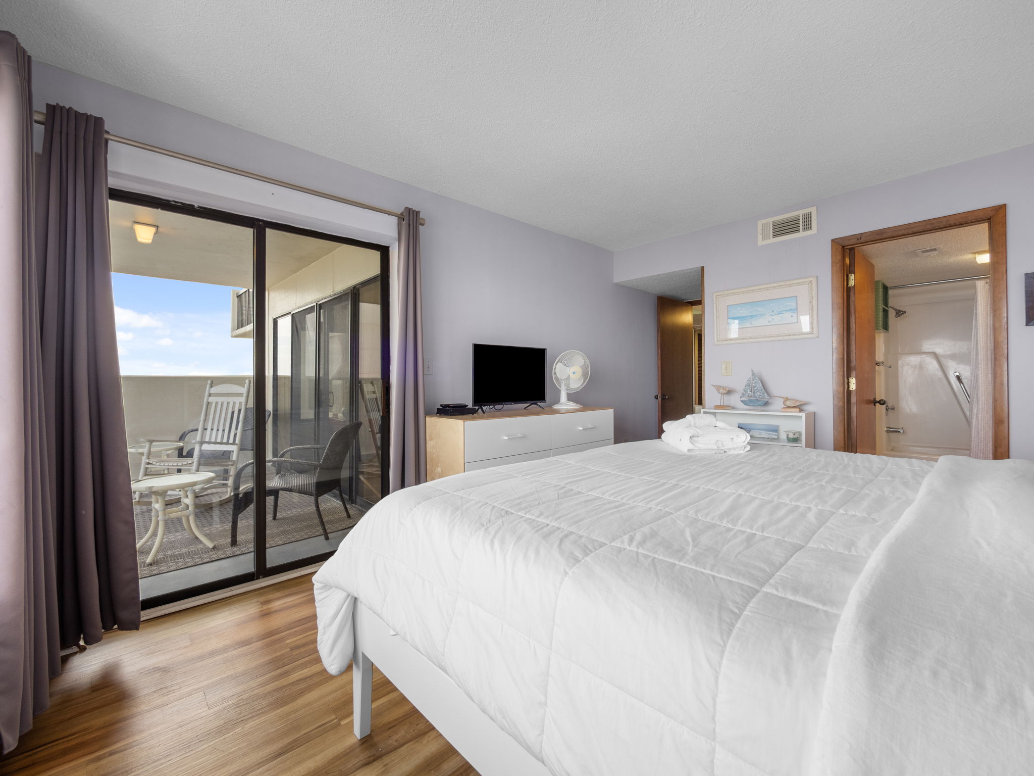 | Floor #4 - Bedroom #1 Attached Bathroom King - TV - Private Bath - Balcony Access |