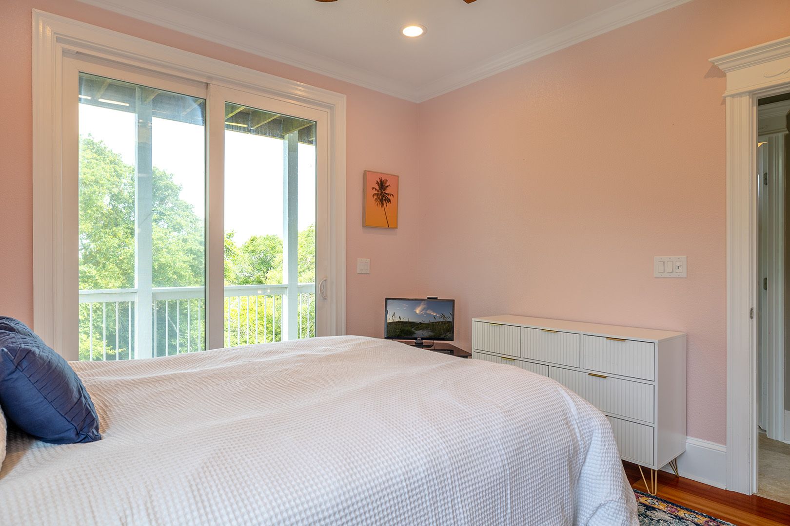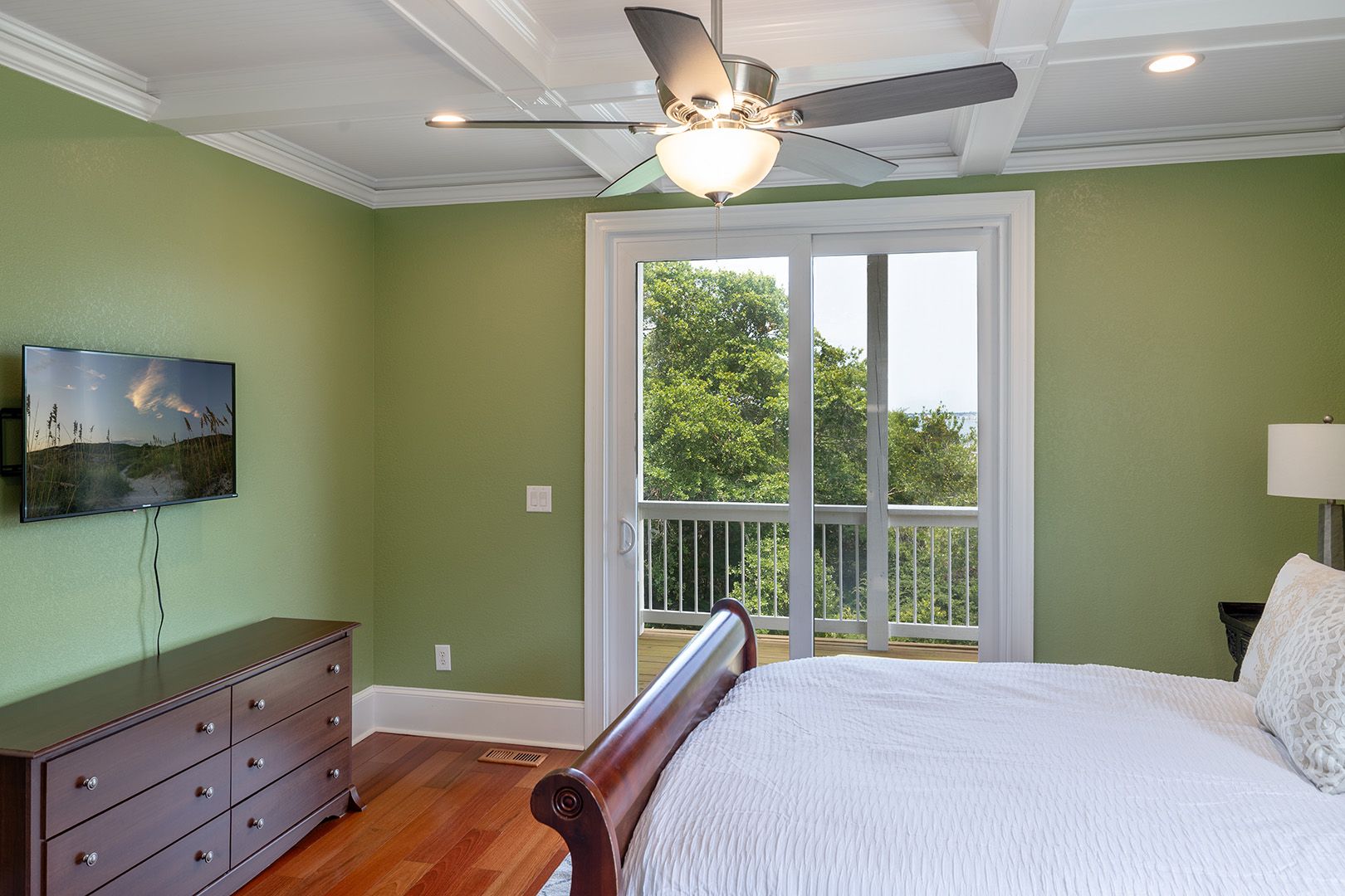 | Level One - Bedroom #1 Attached Bathroom Queen Bed - Roku TV - ceiling fan - access to deck - private full bath |