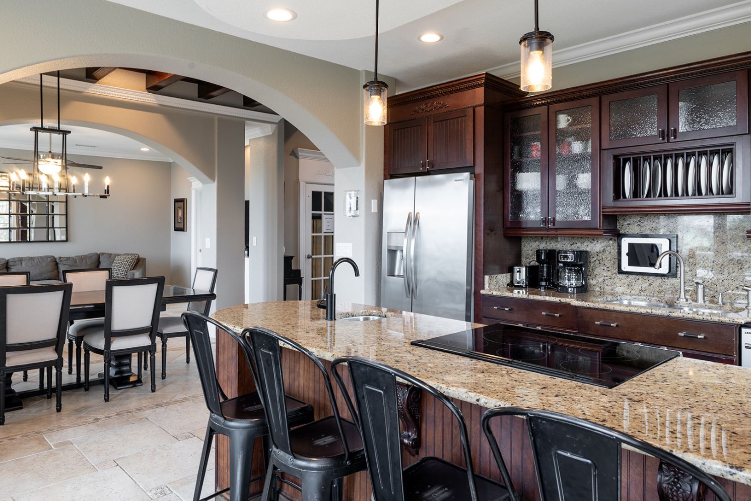 Level Two: Living area with Smart Roku TV, Dining area, Kitchen with Coffee Maker, Stove/Oven, Refrigerator with Attached Ice Maker, Microwave, Dishwasher. Bedroom #4 with a Twin over Full Bunk Bed, Smart Roku TV, and access to the shared full bath this this level.