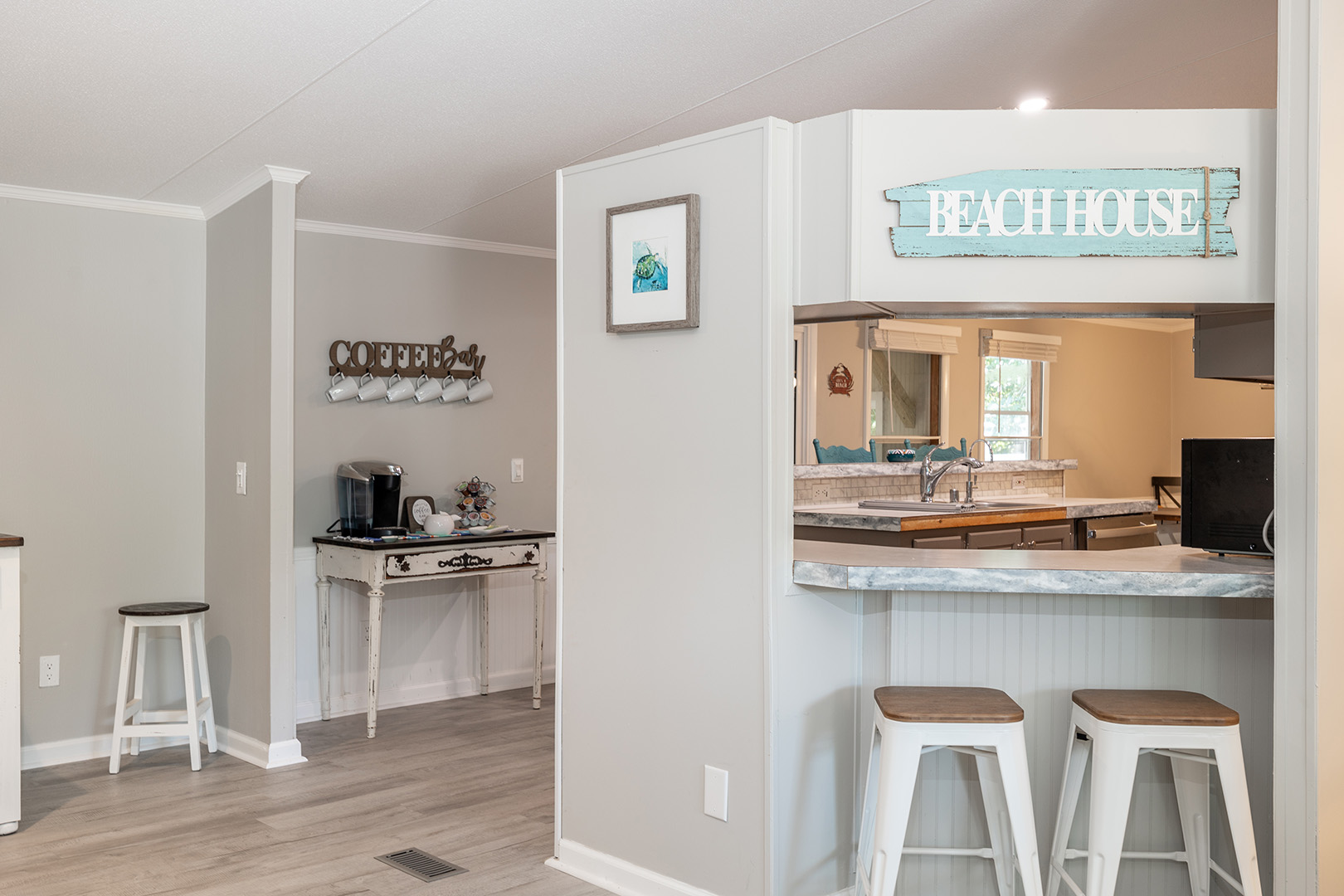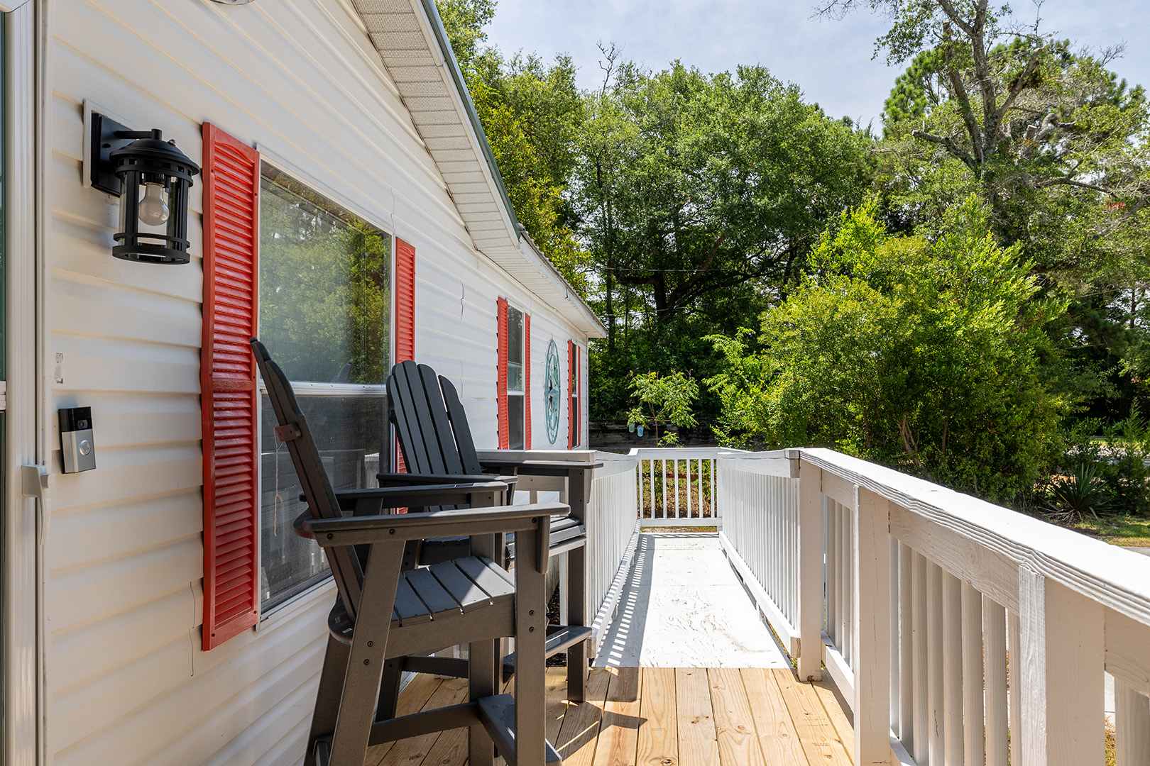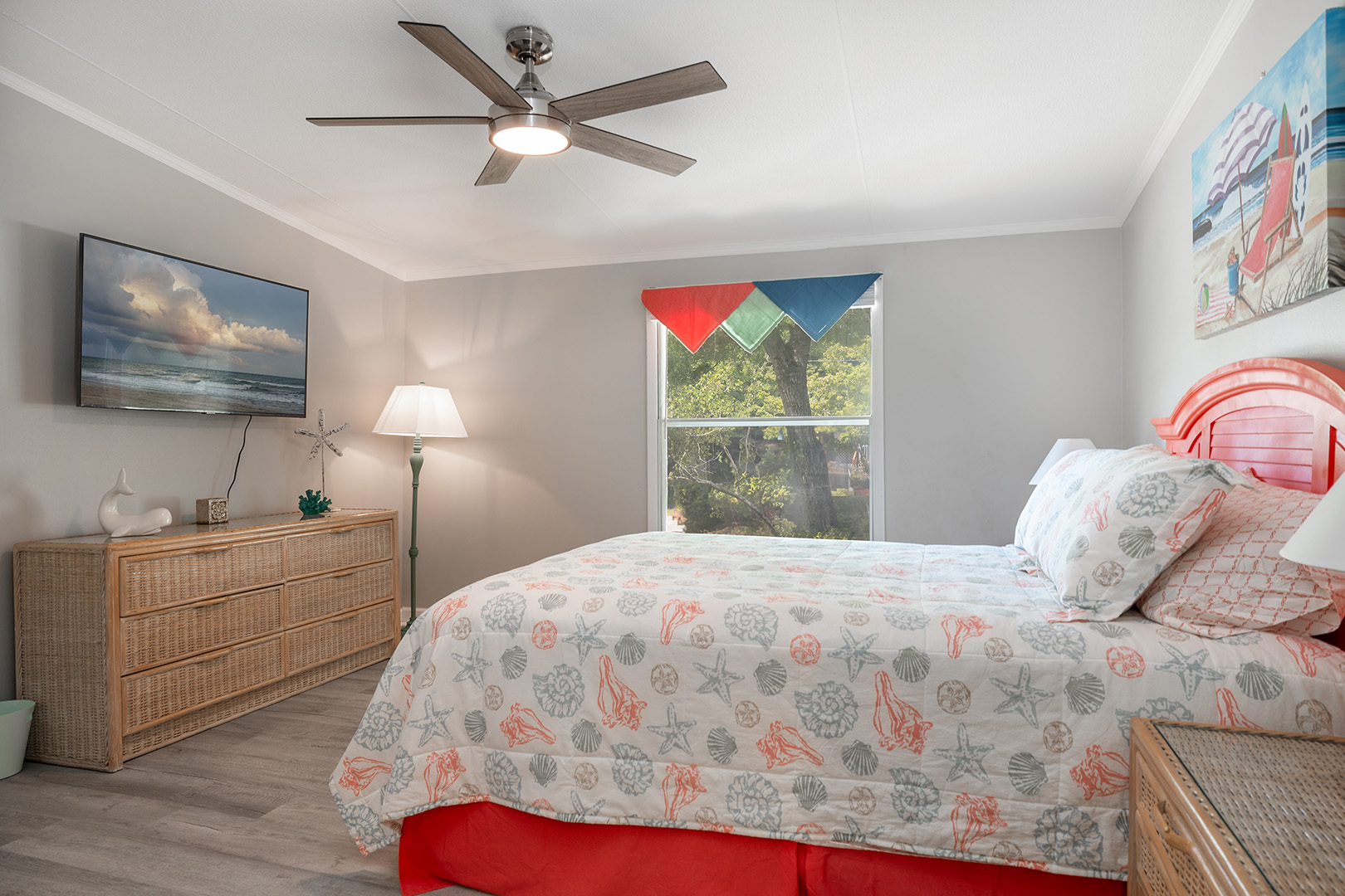 Central Heat and Air and ceiling fans throughout keep you cool in the summer heat! The main entry deck ramp makes for easy access into the open floorplan layout including the living area with Smart TV and Double Sleeper Sofa; Wireless High Speed Internet; and well equipped Kitchen with Oven, Refrigerator with Attached Ice Maker, Microwave, Dishwasher, Coffee Bar with Keurig Coffee Maker, Wine Refrigerator, Ice Cream Maker, Toaster Oven, Slow Cooker, Blender, and Air Fryer!
