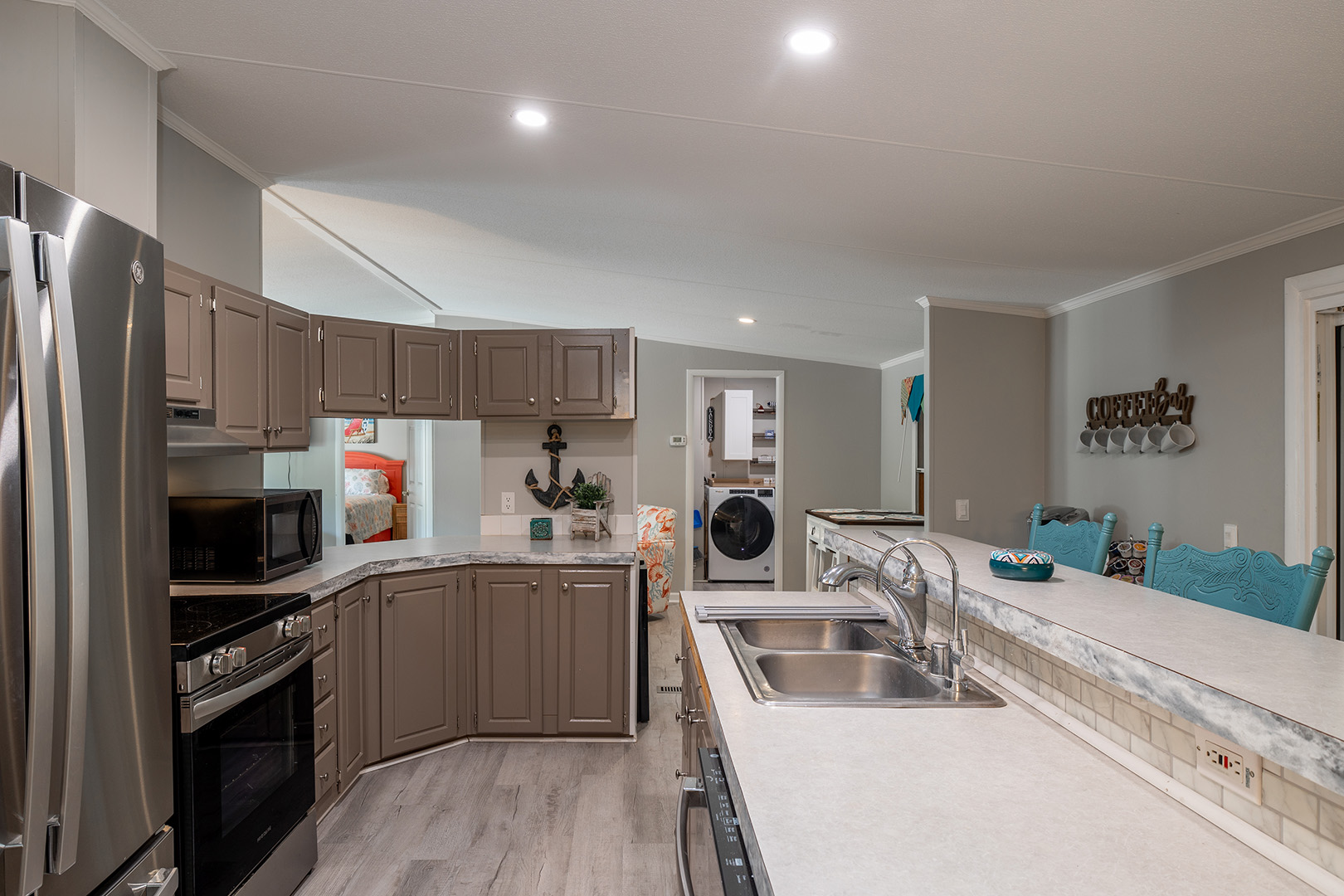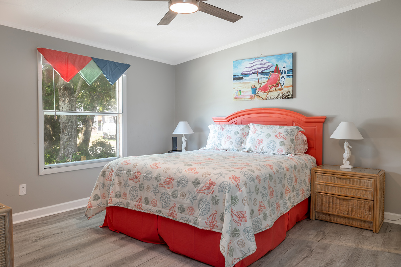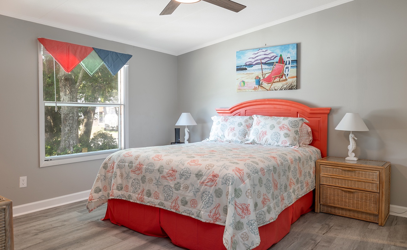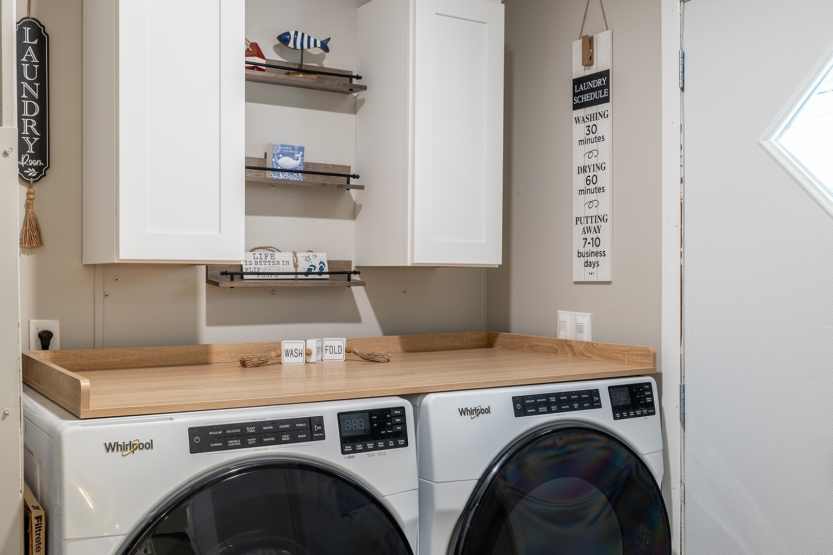 Central Heat and Air and ceiling fans throughout keep you cool in the summer heat! The main entry deck ramp makes for easy access into the open floorplan layout including the living area with Smart TV and Double Sleeper Sofa; Wireless High Speed Internet; and well equipped Kitchen with Oven, Refrigerator with Attached Ice Maker, Microwave, Dishwasher, Coffee Bar with Keurig Coffee Maker, Wine Refrigerator, Ice Cream Maker, Toaster Oven, Slow Cooker, Blender, and Air Fryer!