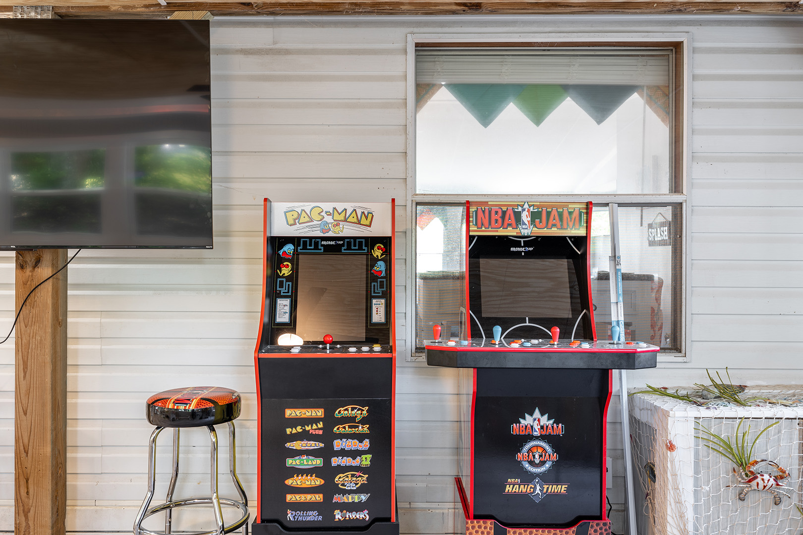 Interior Laundry Room with Washer/Dryer for your convenience. Enjoy family time in the Rec/Game Room wih Smart TV, have your favorite beverages at the Tiki Bar, enjoy the seaside breeze on the Screened Porch or Open Deck areas, and sit by the fireside at the Fire Pit in the Enclosed Yard. Gas Grill for your use is perfect for your surf and turf cuisine. Outside Shower with Hot and Cold Water and Off Street Paved Driveway Parking simply add to this home's appeal.