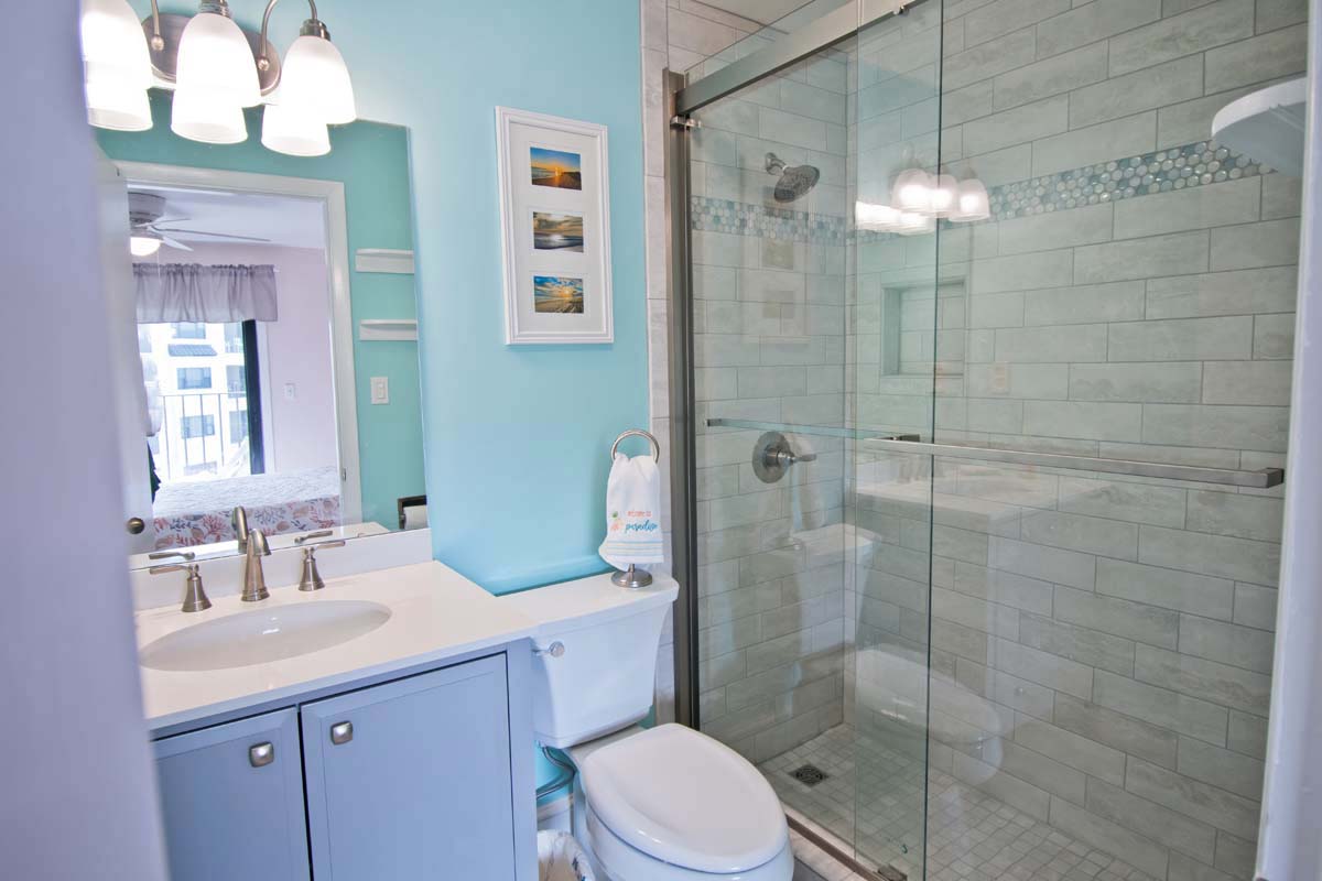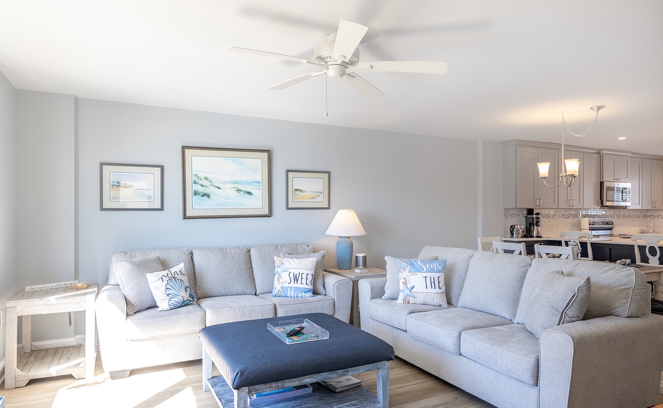 Summer Winds A-415 is a 2 bedroom, 2 bathroom fourth-floor oceanfront condo overlooking the Atlantic Ocean from beautiful Salter Path! Enjoy the open airy concept while watching the dolphins swim by. The living room with all new furniture has a convenient queen sleeper sofa, a private covered balcony with ocean views, and a smart TV. Master bedroom #1 has a queen bed, a smart TV with cable, and a newly renovated tiled bath. Bedroom #2 has a queen bed, a twin bed, a smart TV with cable, and the convenience of access to the full bathroom in the hall. Fully Equipped Kitchen, Coffee Maker, NEW Stove/Oven, Keurig Coffee Maker, Slow Cooker, NEW Refrigerator, Blender, NEW Microwave, NEW Dishwasher, George Foreman Grill.