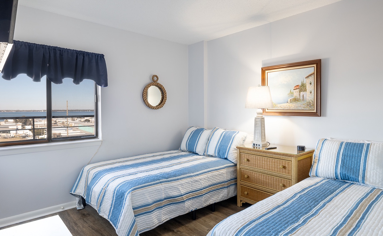Bedroom #3: 2 Double beds, shared bath, Smart TV, sound views.