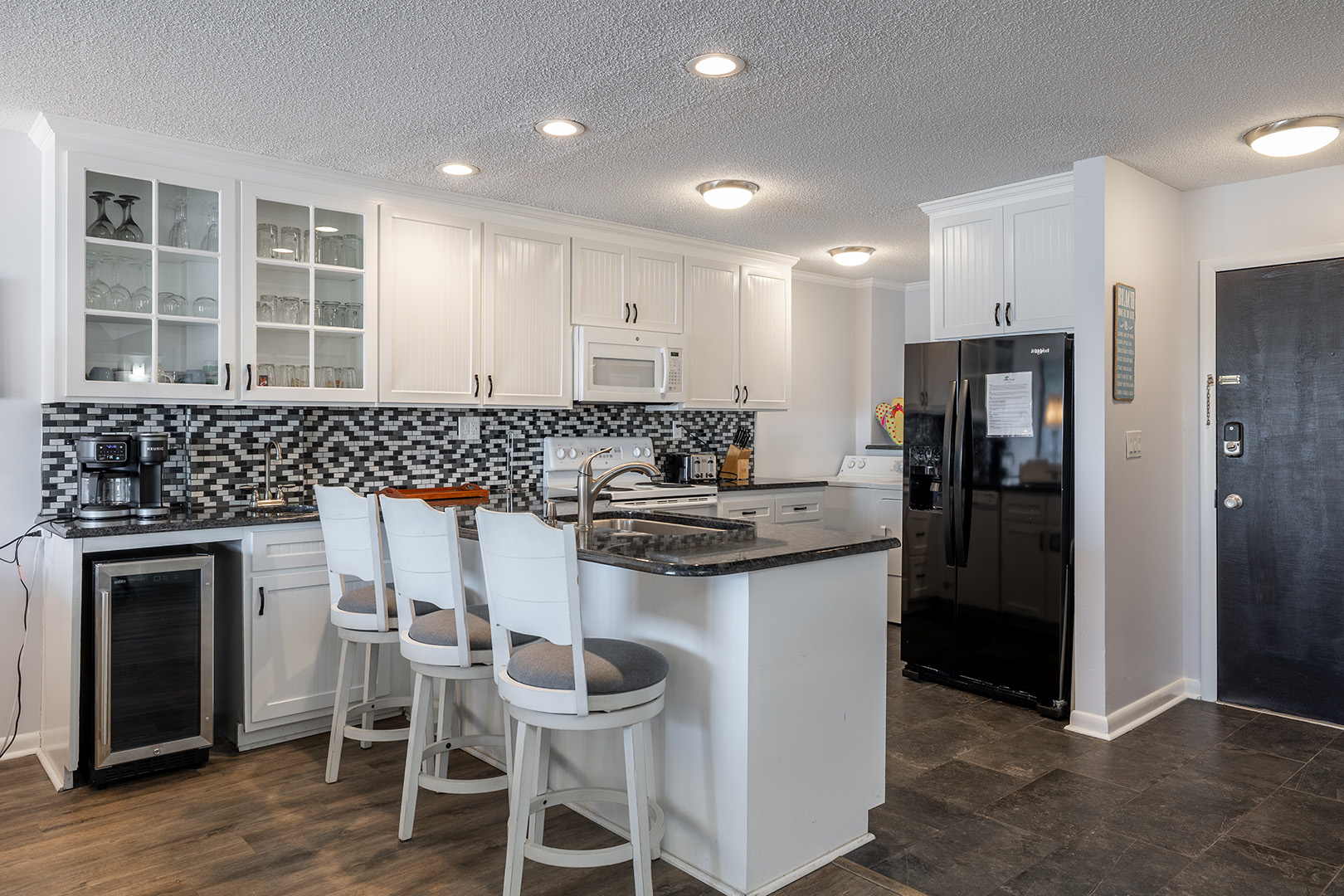 Amenities Include: 4 Smart TVs with cable and Disney+ included as well as access to other streaming services. High speed wireless internet. The kitchen is fully equipped with all the essentials plus some added bonuses including refrigerator, stove/oven, microwave, dishwasher, Keurig single use and carafe coffee maker, toaster, wine refrigerator and wet bar. A washer and dryer are off the kitchen. The balcony is fully covered with relaxing deck furniture to enjoy all the ocean views. The beach closet is fully stocked with chairs, boogie boards, umbrellas, and sand toys. There are games and puzzles in the closet as well as art supplies in the coffee table for inside family fun.