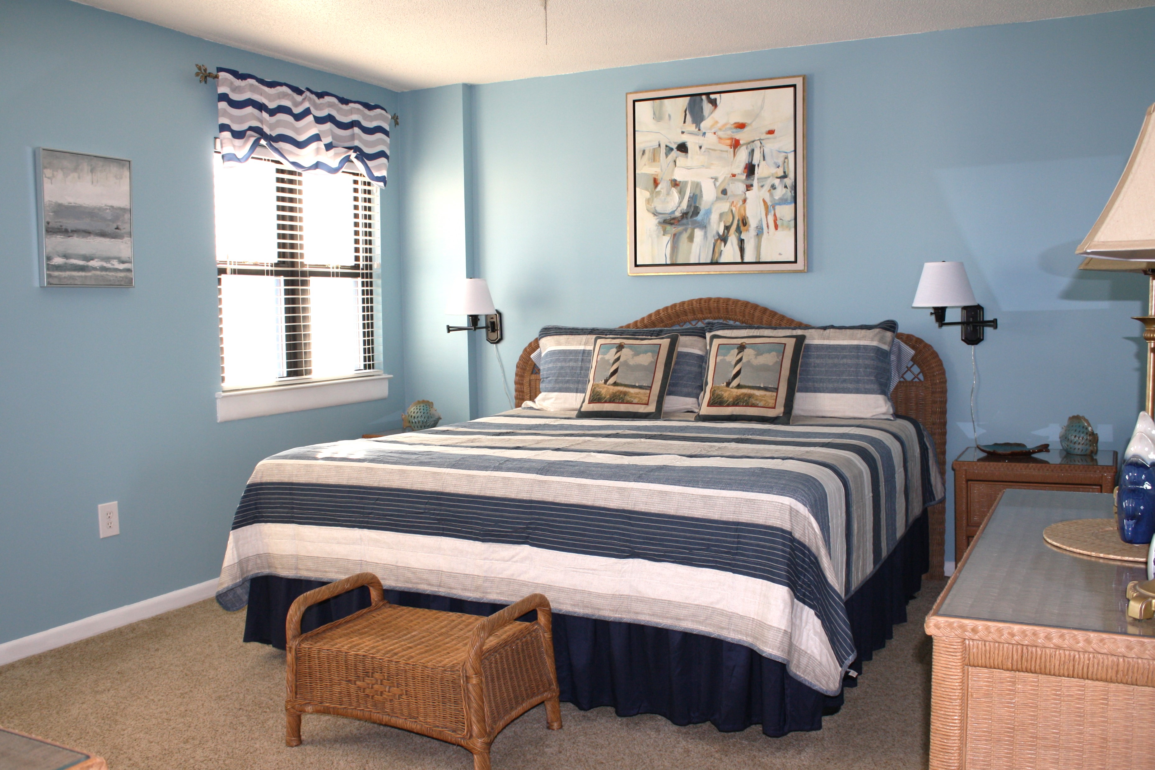 Summer Winds A-513 is a beautiful fifth-floor, Oceanfront Condo, with 3 bedrooms and 2 baths. Bedroom #1 is the Master with a King bed, TV, and direct access to the Deck. Bedroom #2 has a Queen bed, Flat Screen TV, and DVD Player. Bedroom #3 has 2 Twin beds, DVD Player along with the Flat Screen TV. Fully equipped and updated kitchen features an open layout and granite countertops.