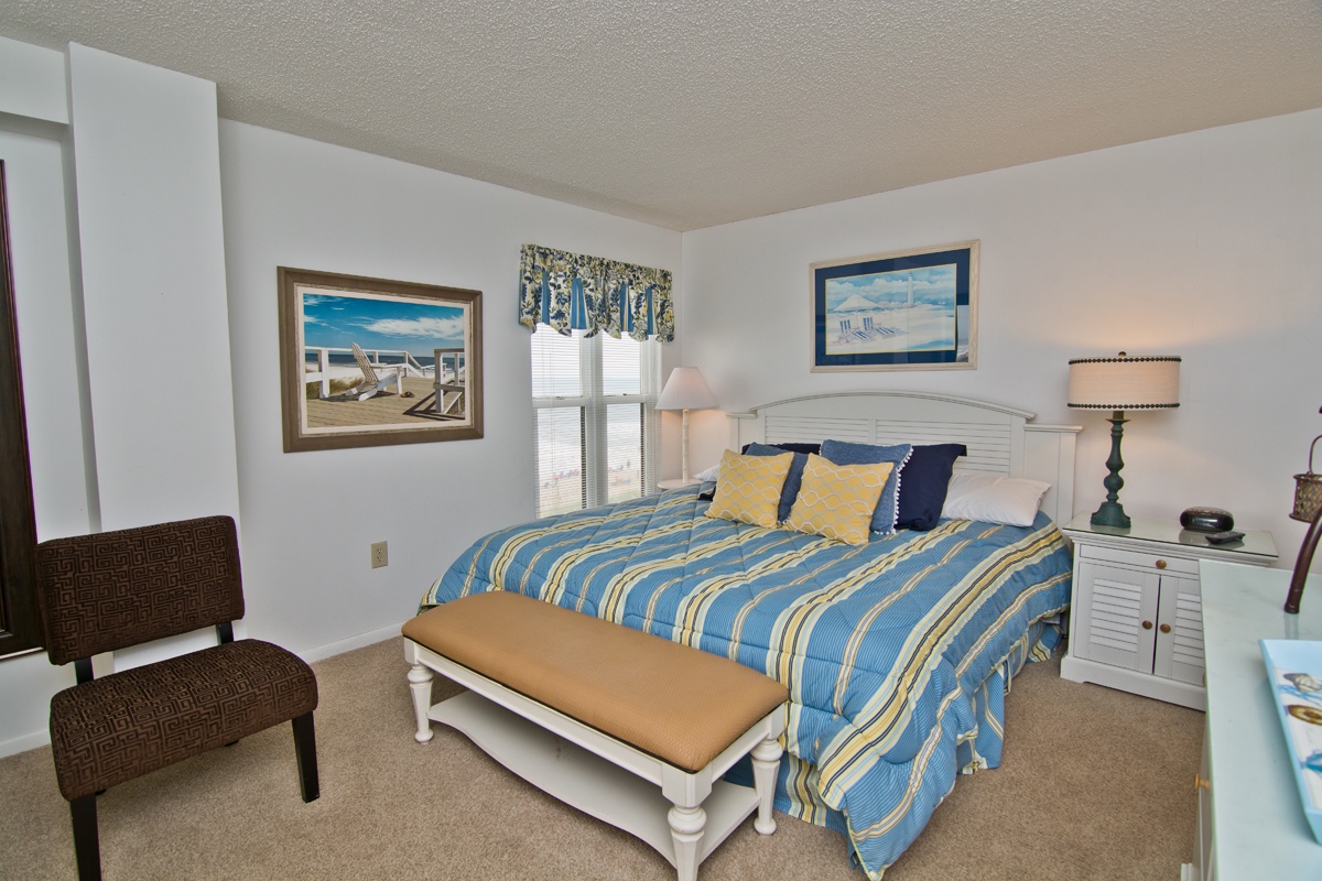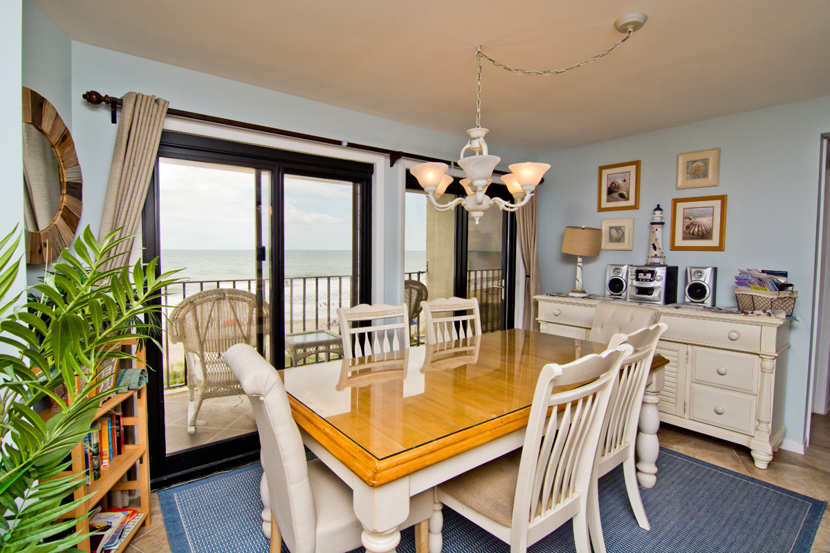 Summer Winds B-332 is a Direct Oceanfront Condo with 4 Bedrooms, 3 Baths located on the 3rd Floor. Large open Living Area with Flat Screen TV and Oceanview views! Large open Dining Room facing Ocean. The kitchen has a dishwasher, ice maker & microwave. Master Bedroom has King Bed & Bath; Bedroom #2 has a Queen Bed; Bedroom #3 has a Queen Bed; Bedroom #4 has a Queen Bed. 2 Color Cable TVs, 2 Color Cable Flat Screen TVs, 2 DVD Players, Stereo with CD Player. Central Heat & Air. Washer/Dryer. Covered Deck off Living/Dining/Master Bedroom with Furniture. Beach Chairs.
