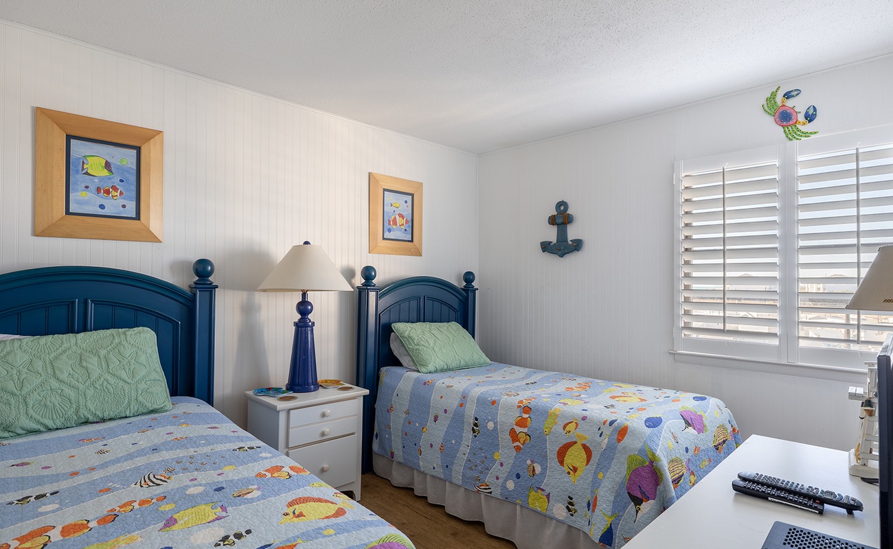 Floor #4 - Bedroom #3 2 Twins - TV - Shared Bath |