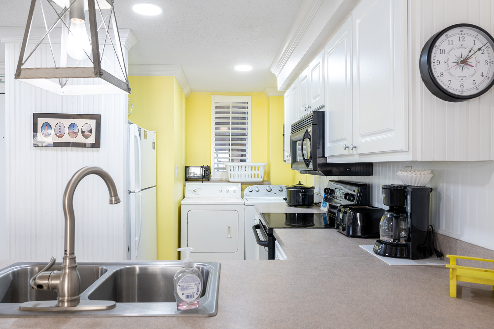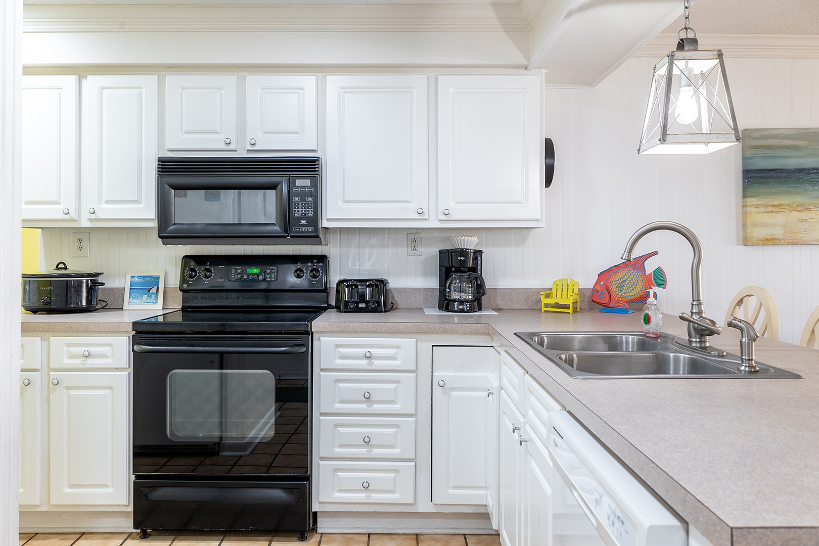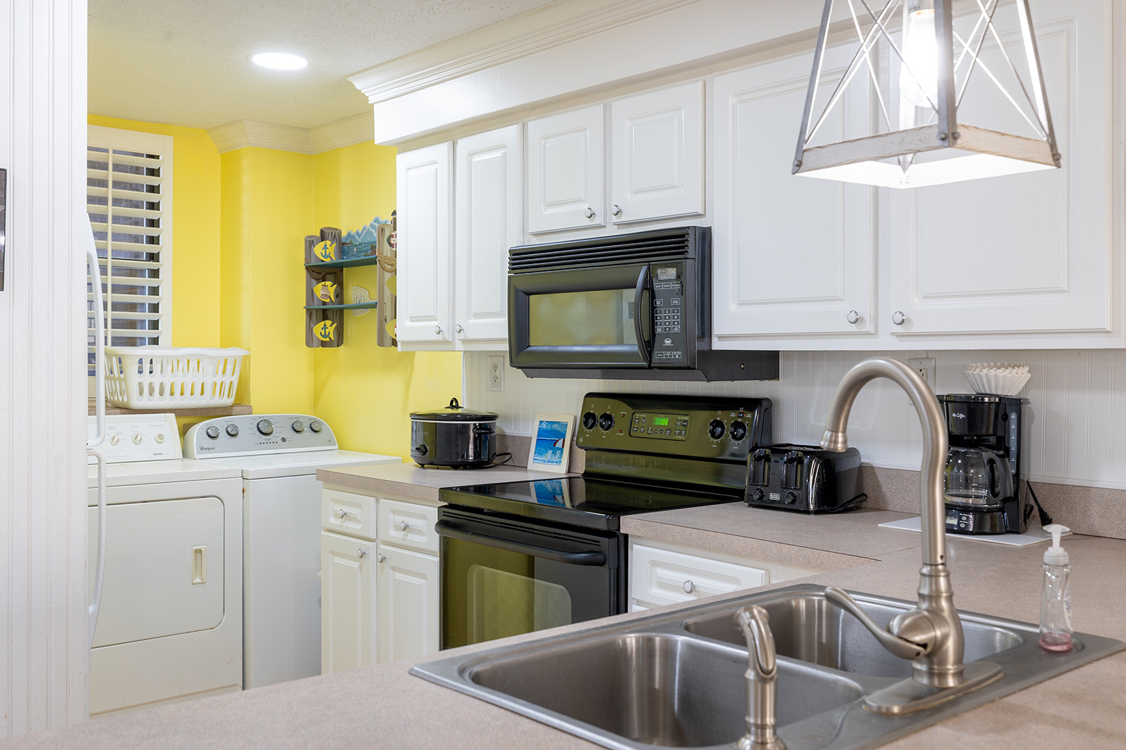 Featuring a Living Area with a Flat Panel TV with Cable, DVD Player, and Queen Sleeper Sofa; Well Equipped Kitchen with stove/oven, coffee maker, refrigerator with attached ice maker, dishwasher, microwave, toaster, slow cooker, and blender; in unit washer/dryer; hair dryers, iron/ironing board; outdoor deck with furniture; and 3 bedrooms for restful relaxation.
